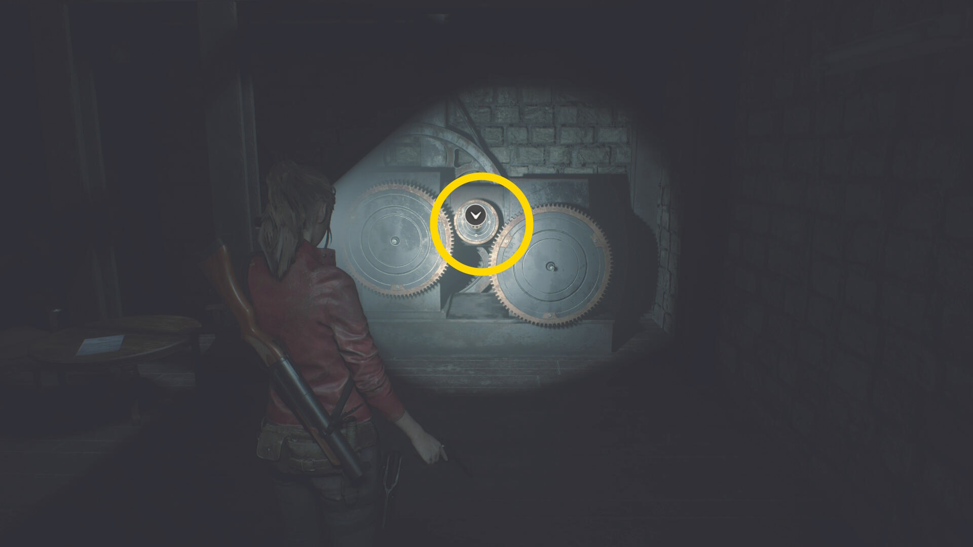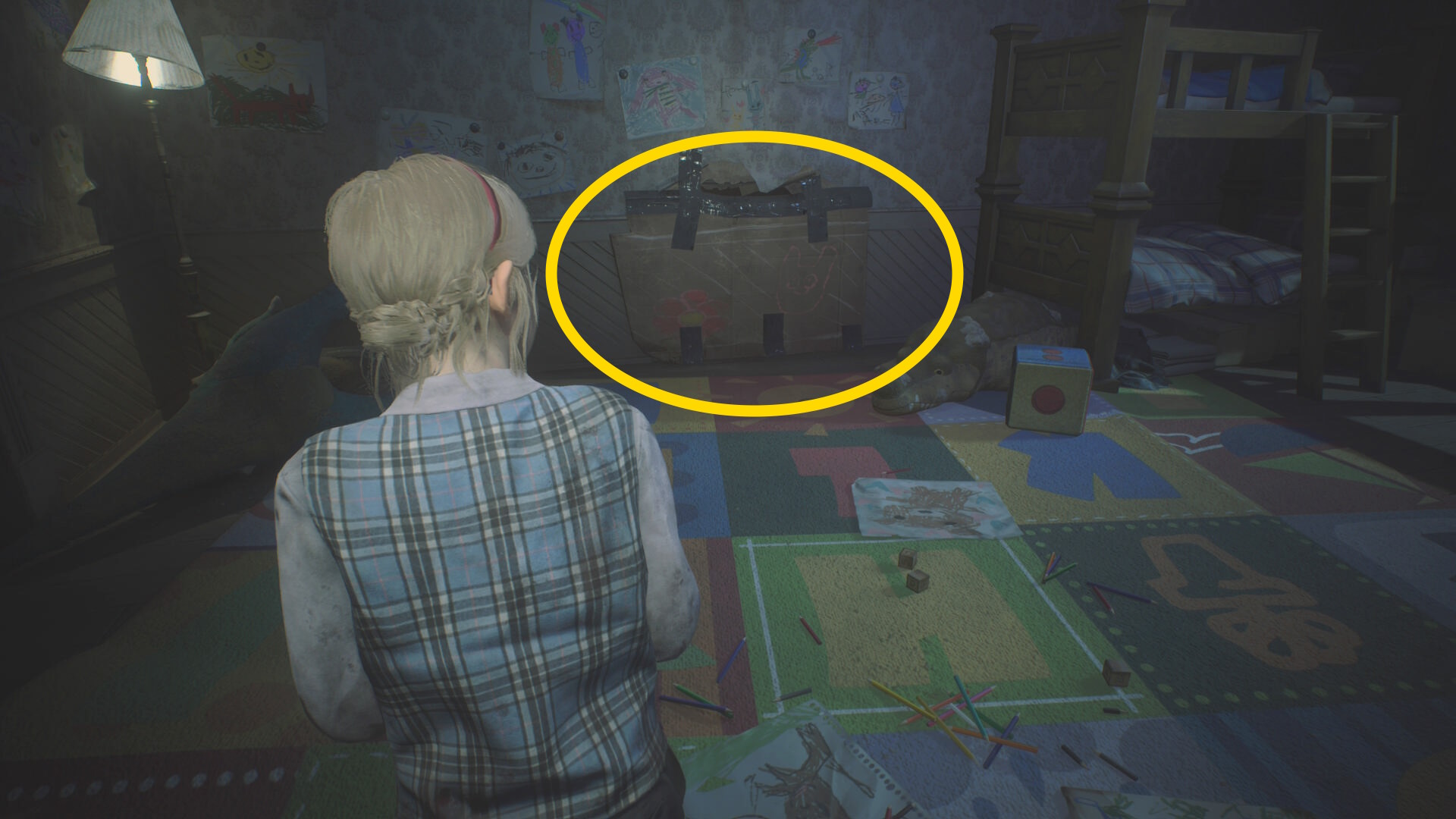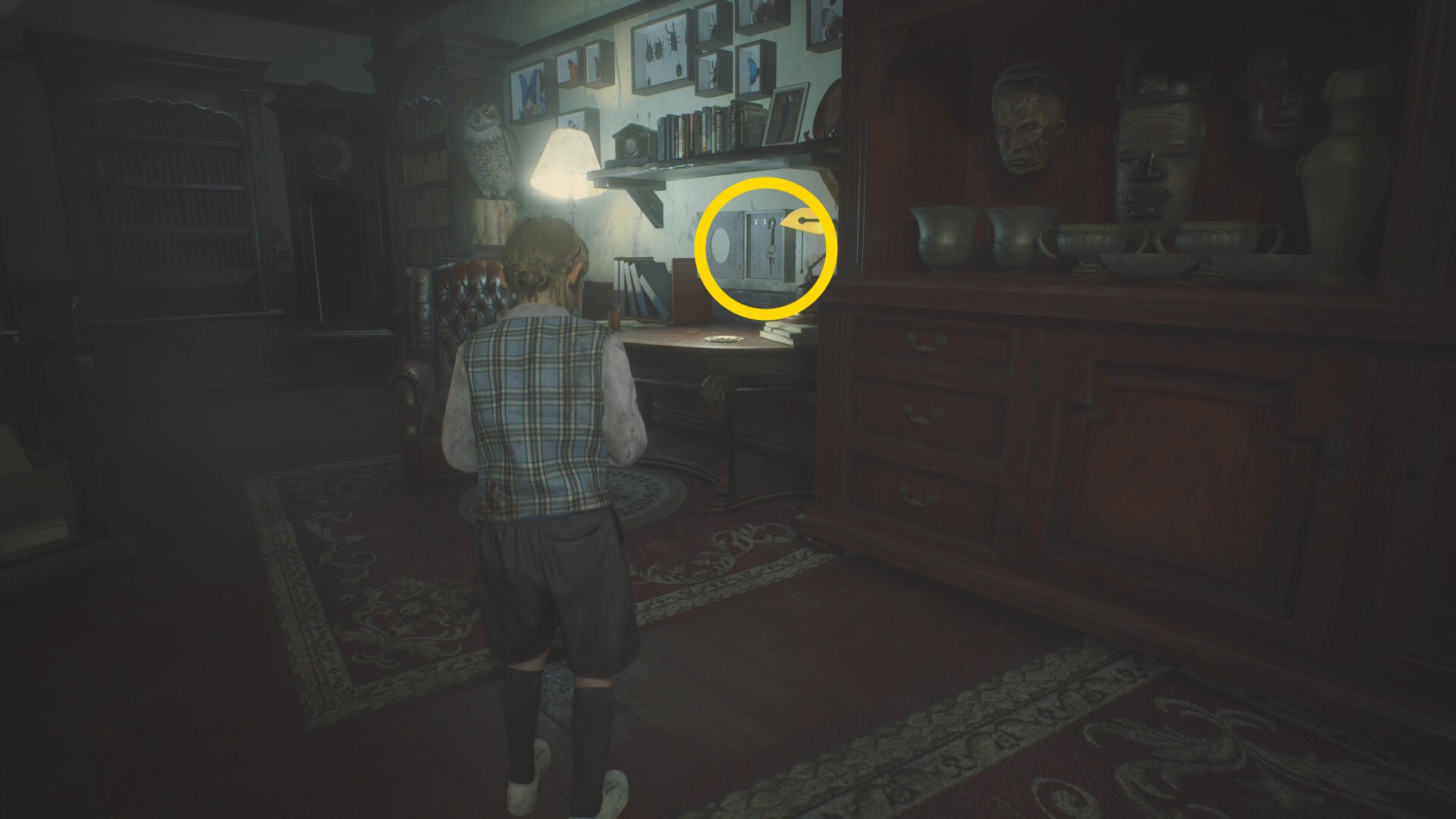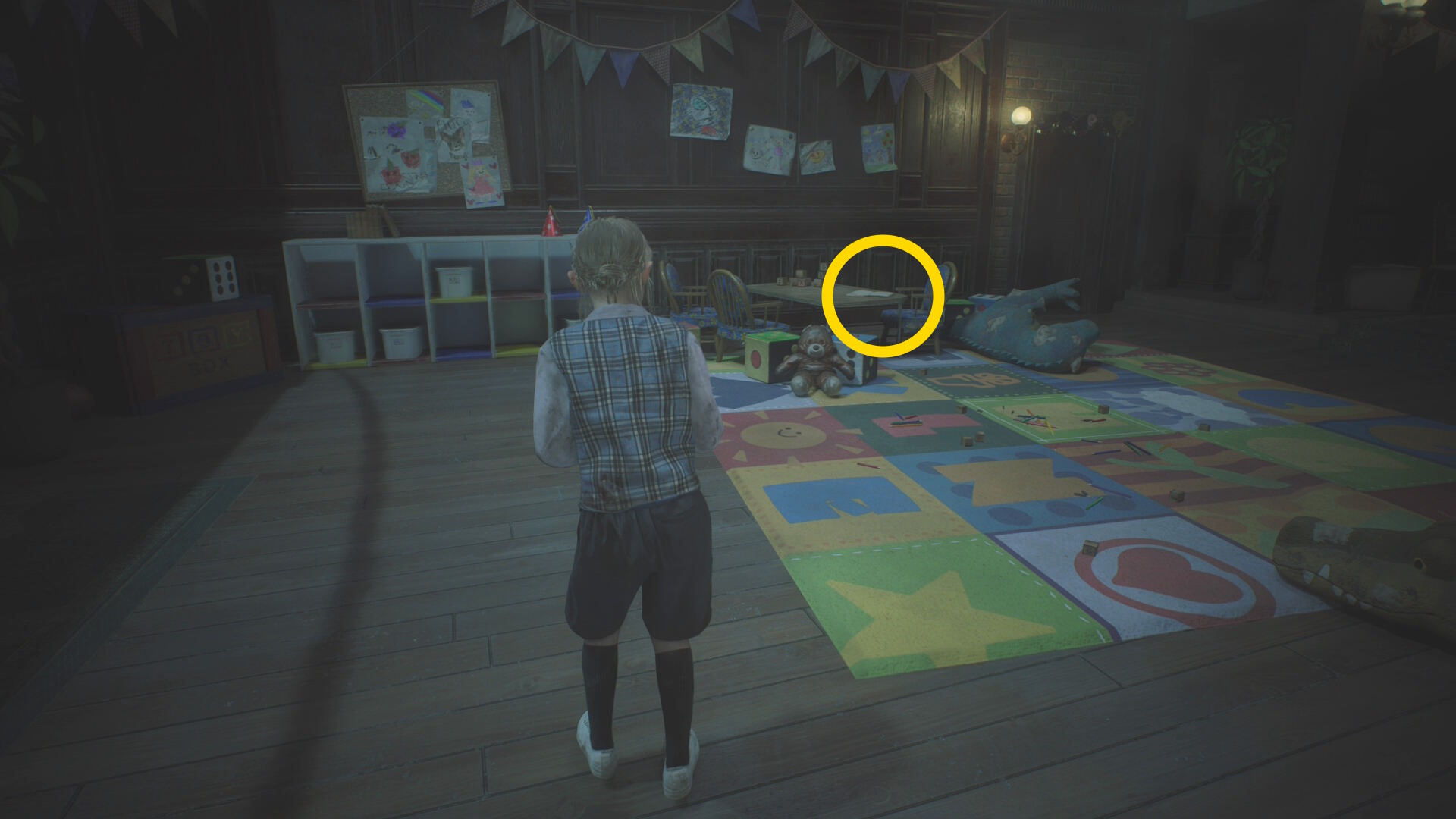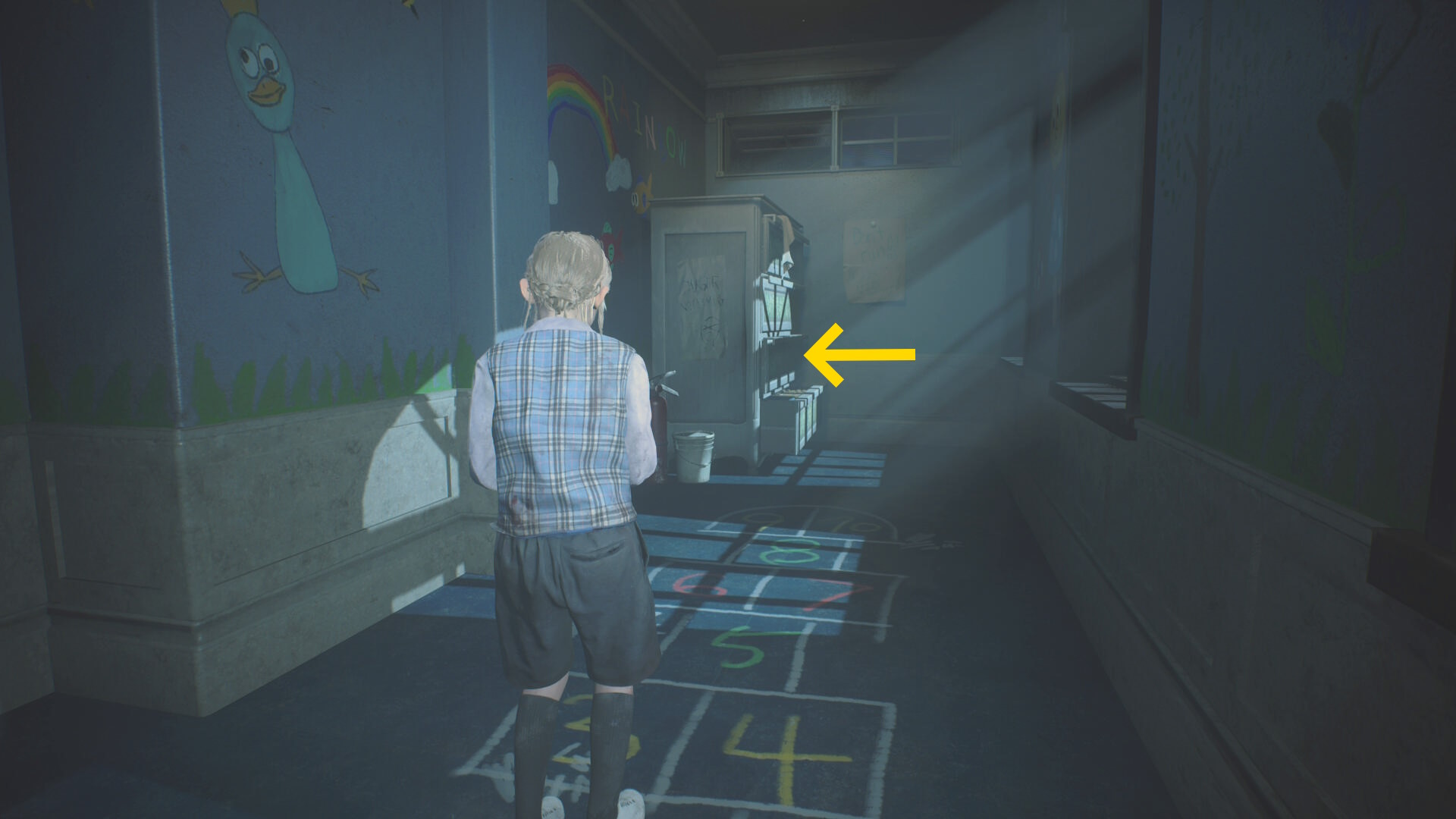 - カットシーン後、机の下から出て洗面所のドアを鍵にそっと近づいて 孤児院の鍵 を回収
