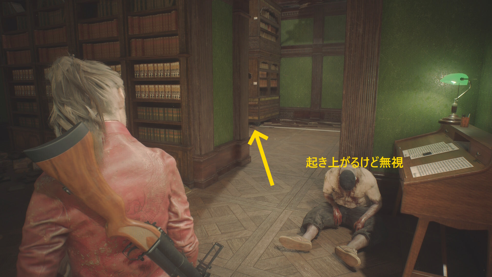 - 中に入り、左の死んだふりゾンビをキル