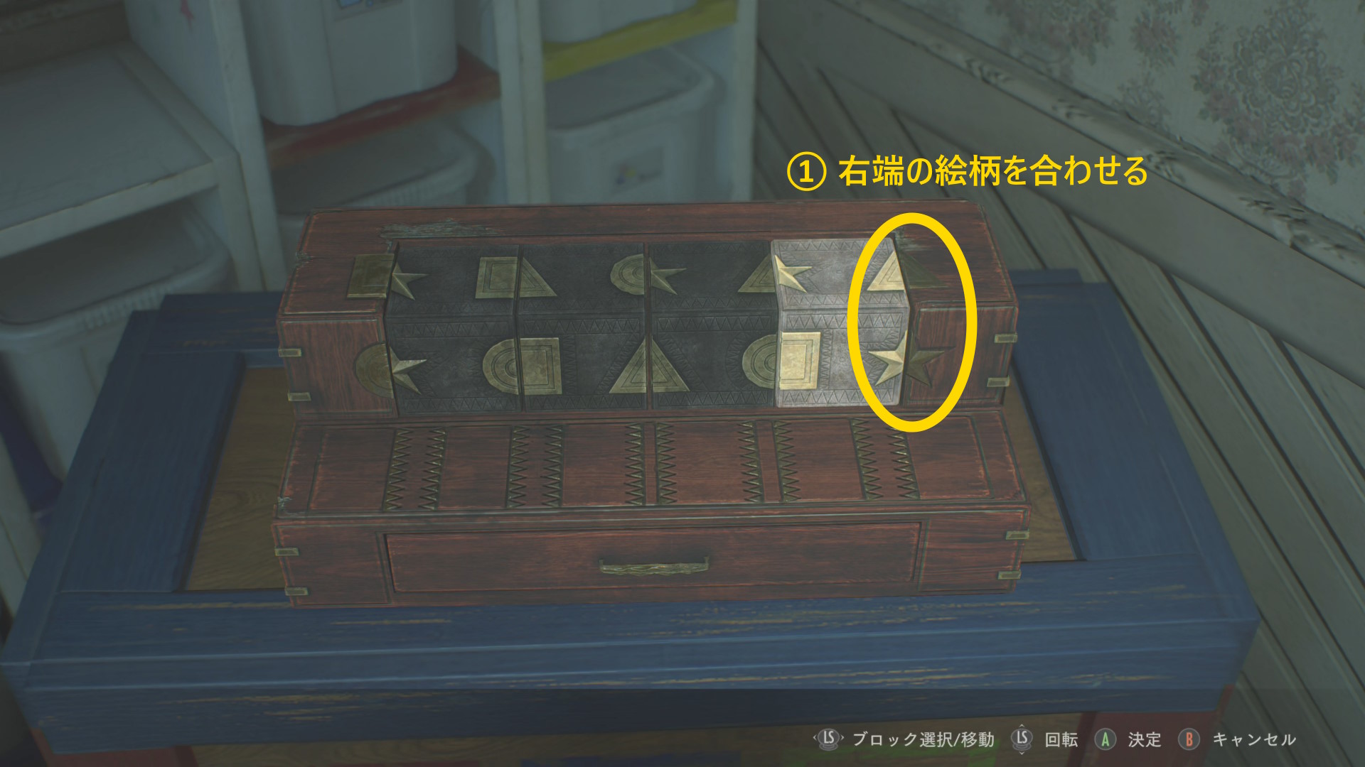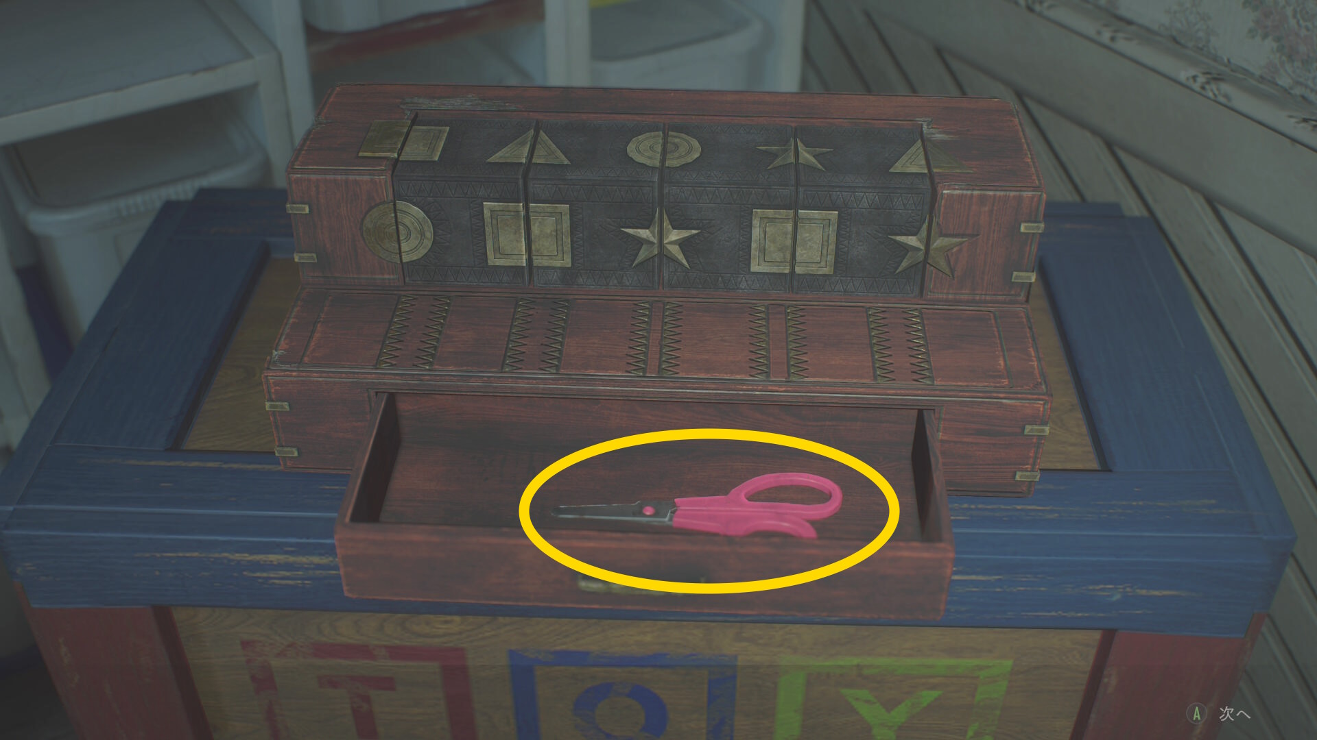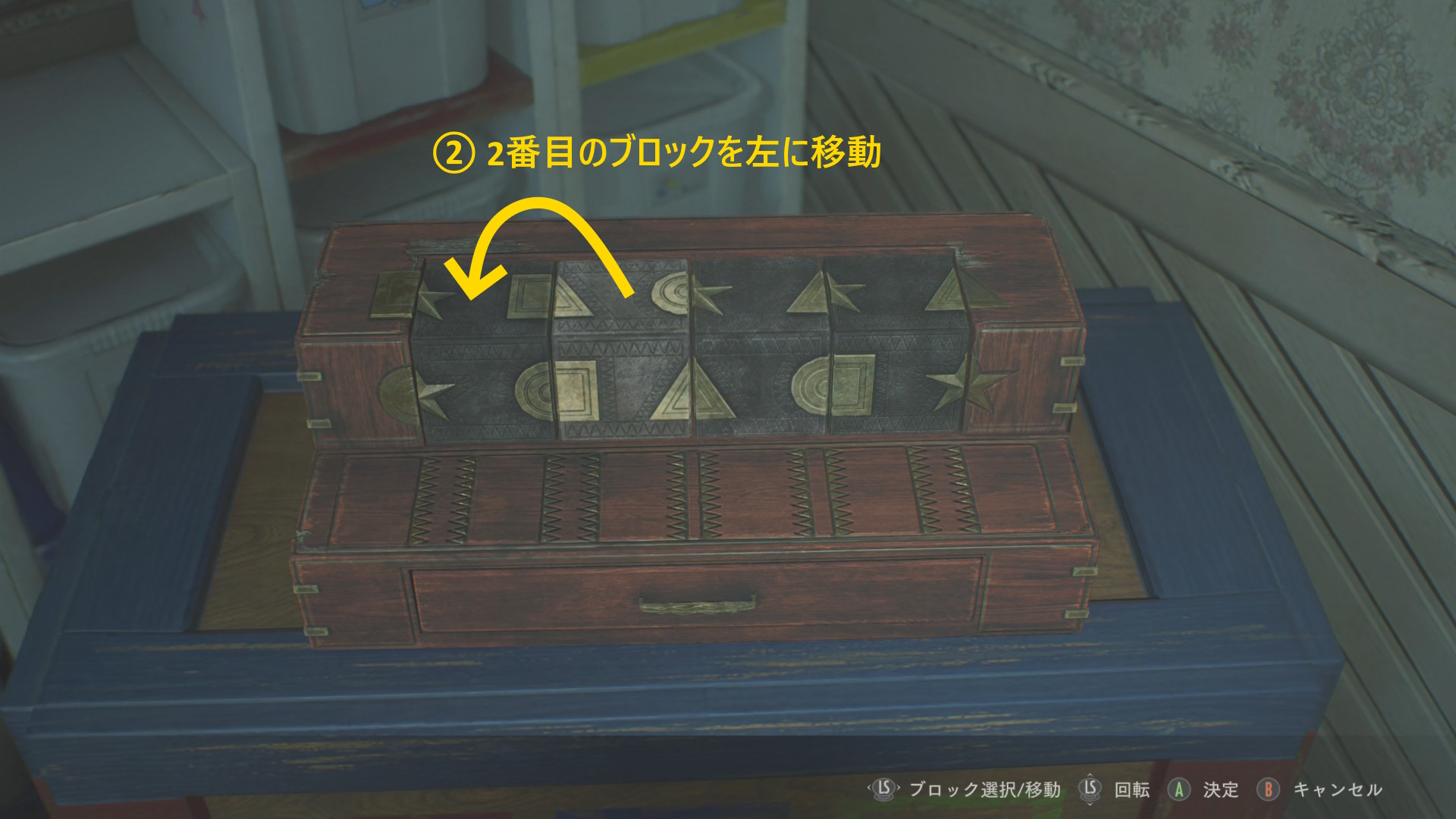 - 左を向き、奥にあるタンスの引き出しへ