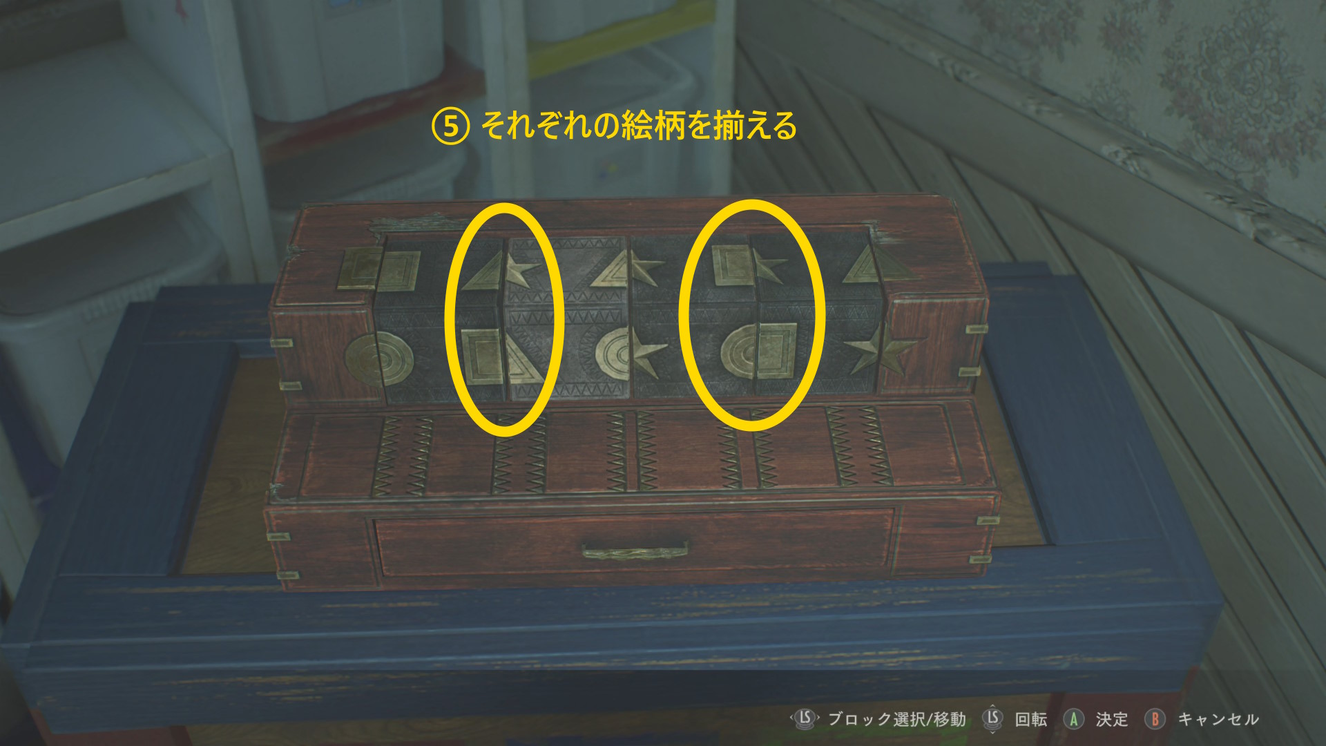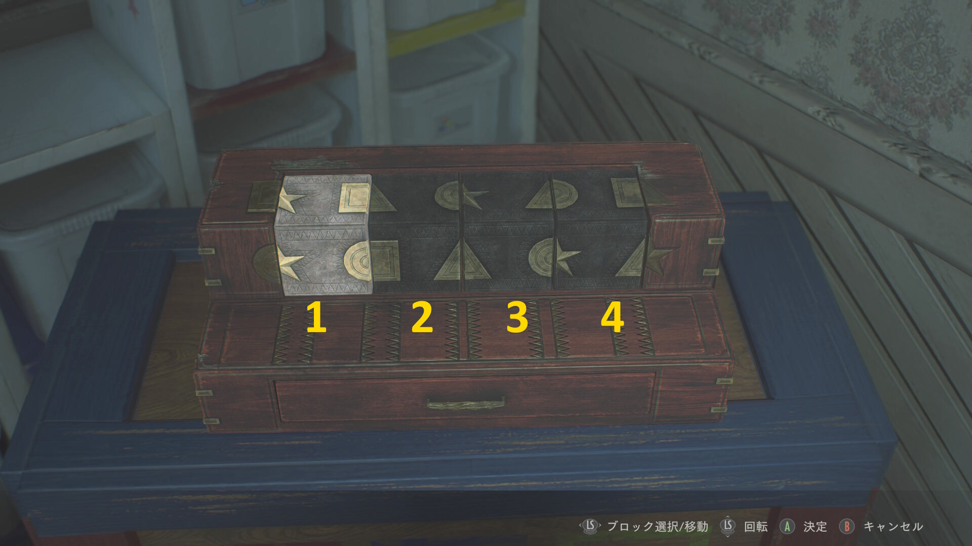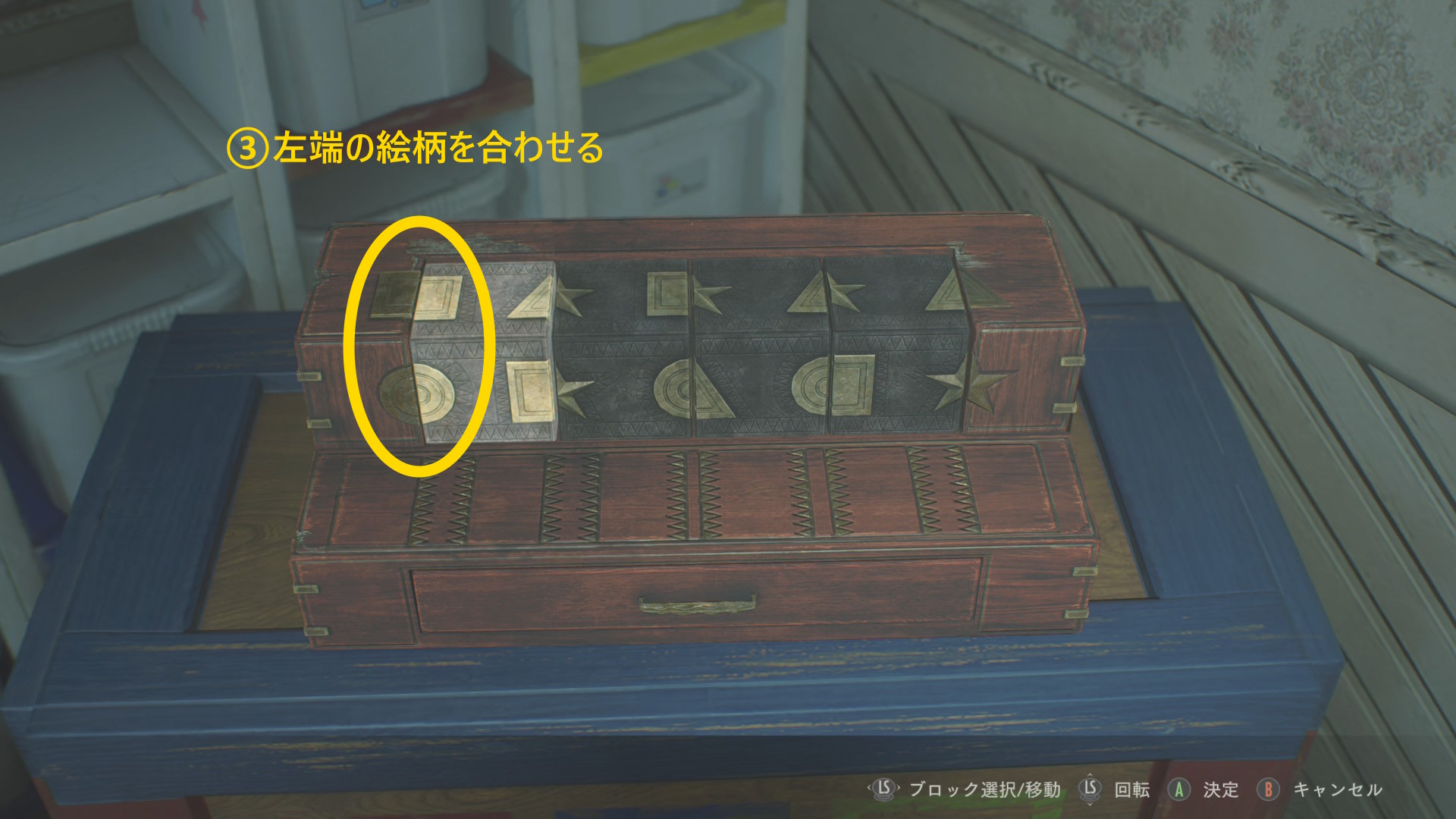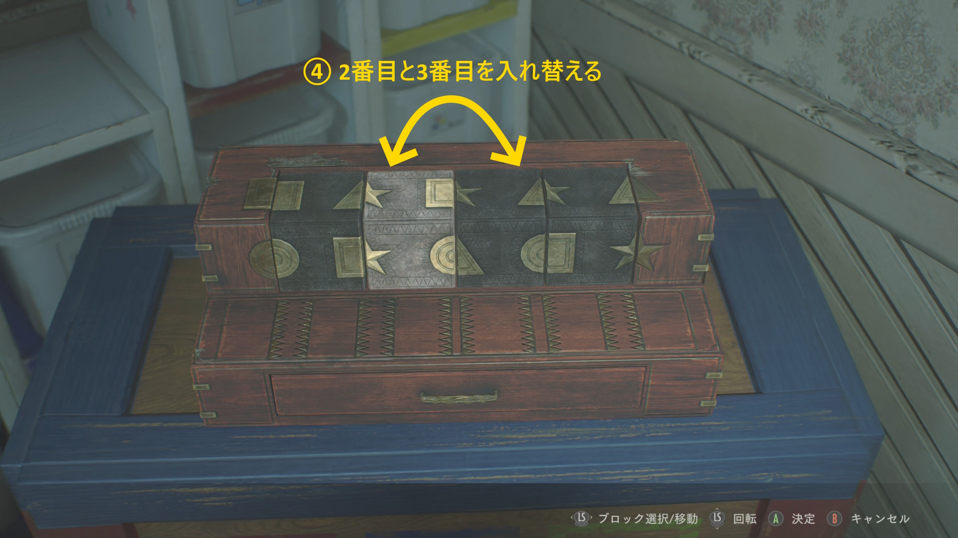 - 左を向き、奥にあるタンスの引き出しへ