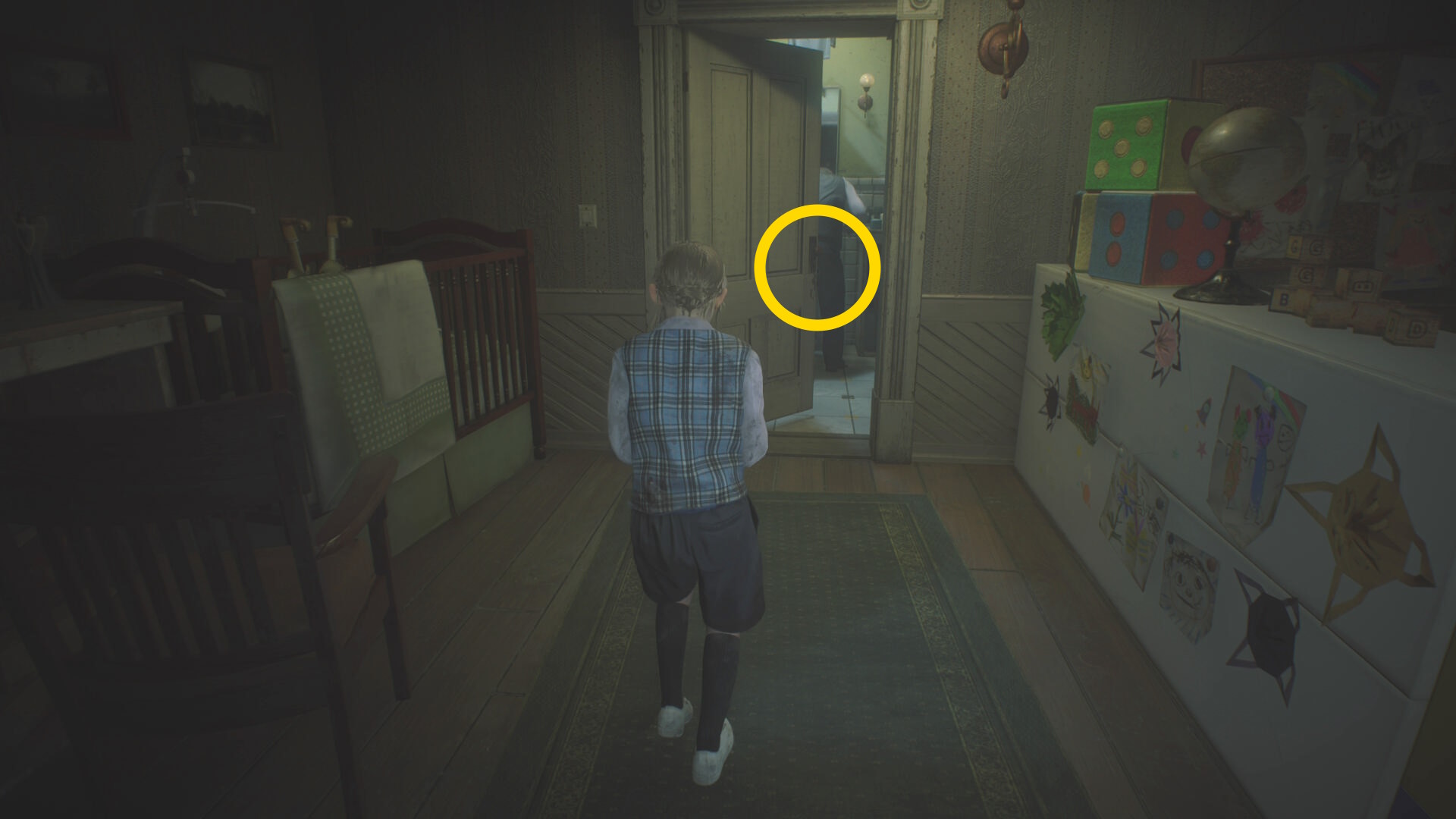 - カットシーン後、来た道を戻って2階の「乳児室」へ