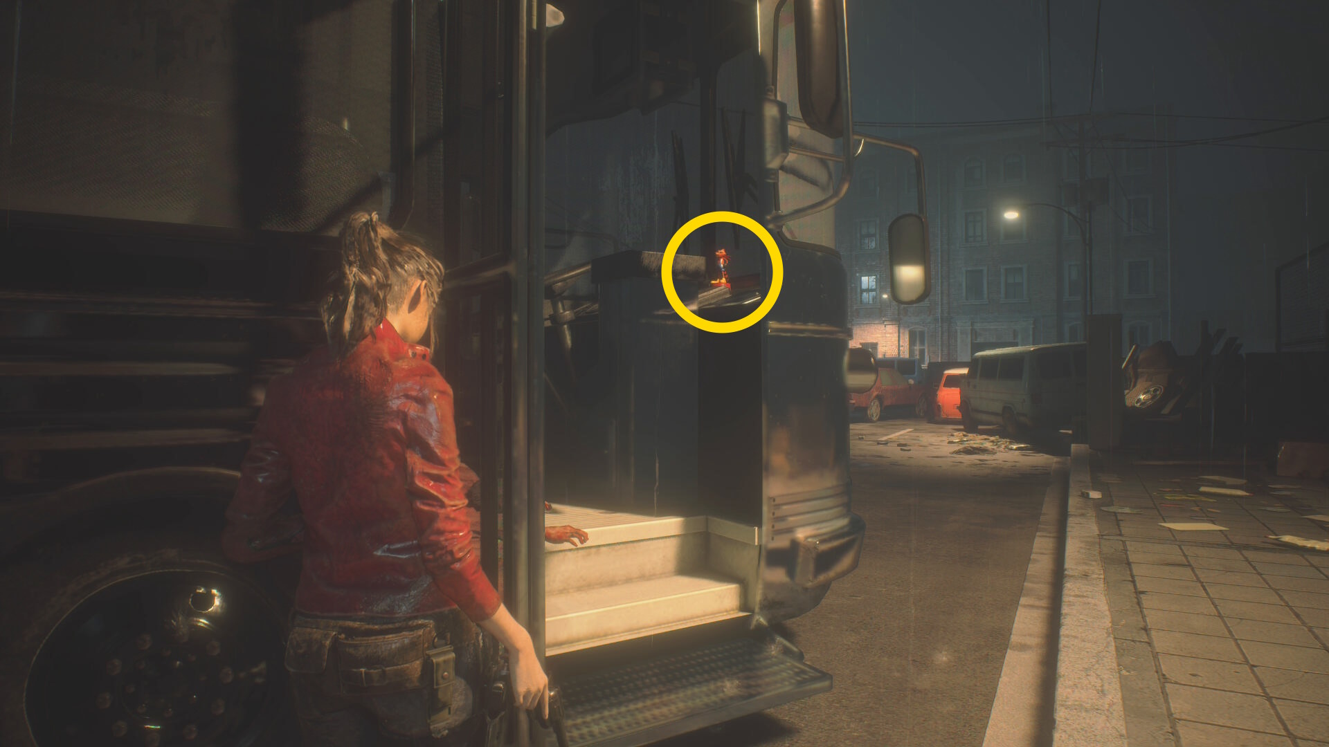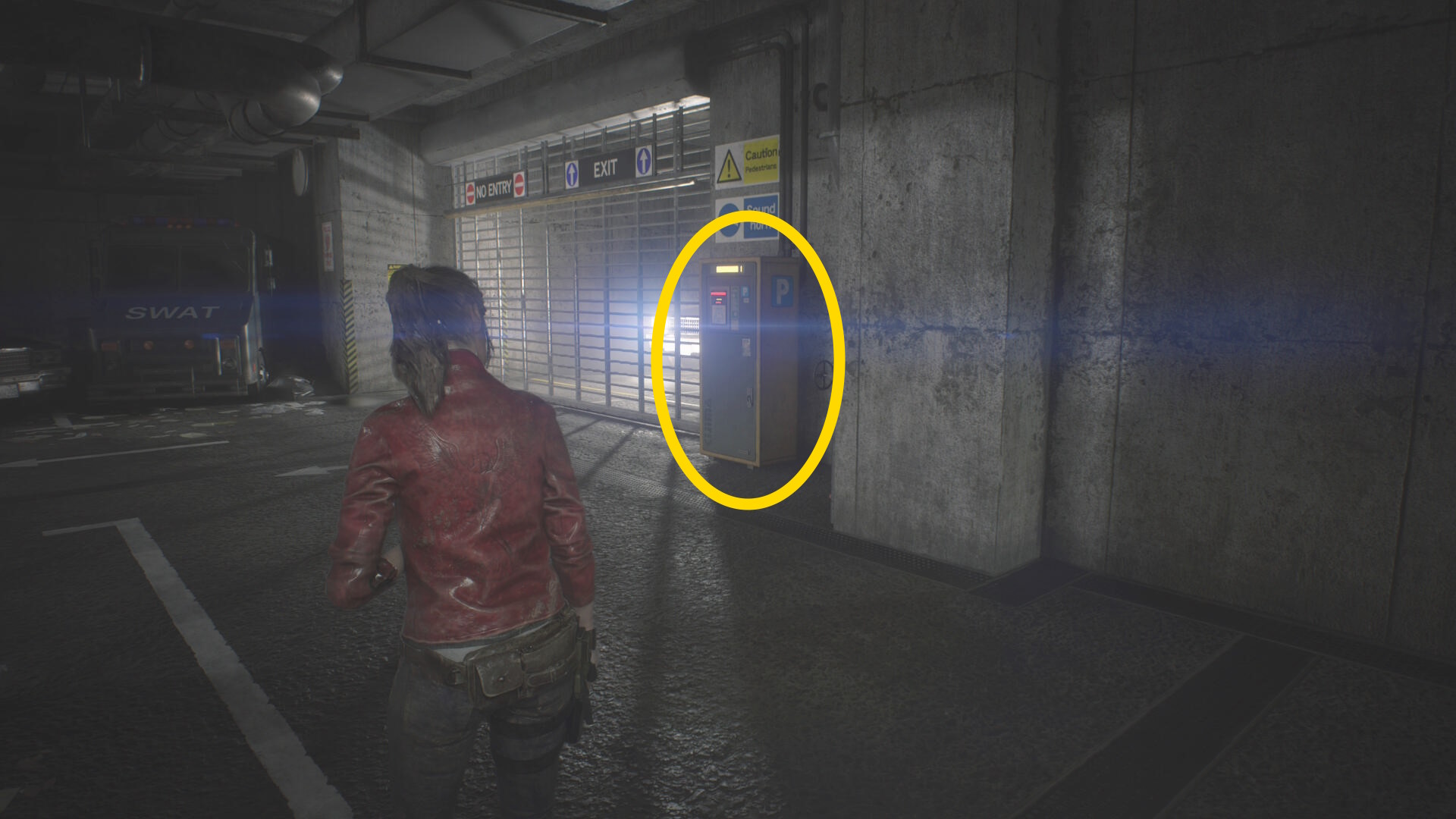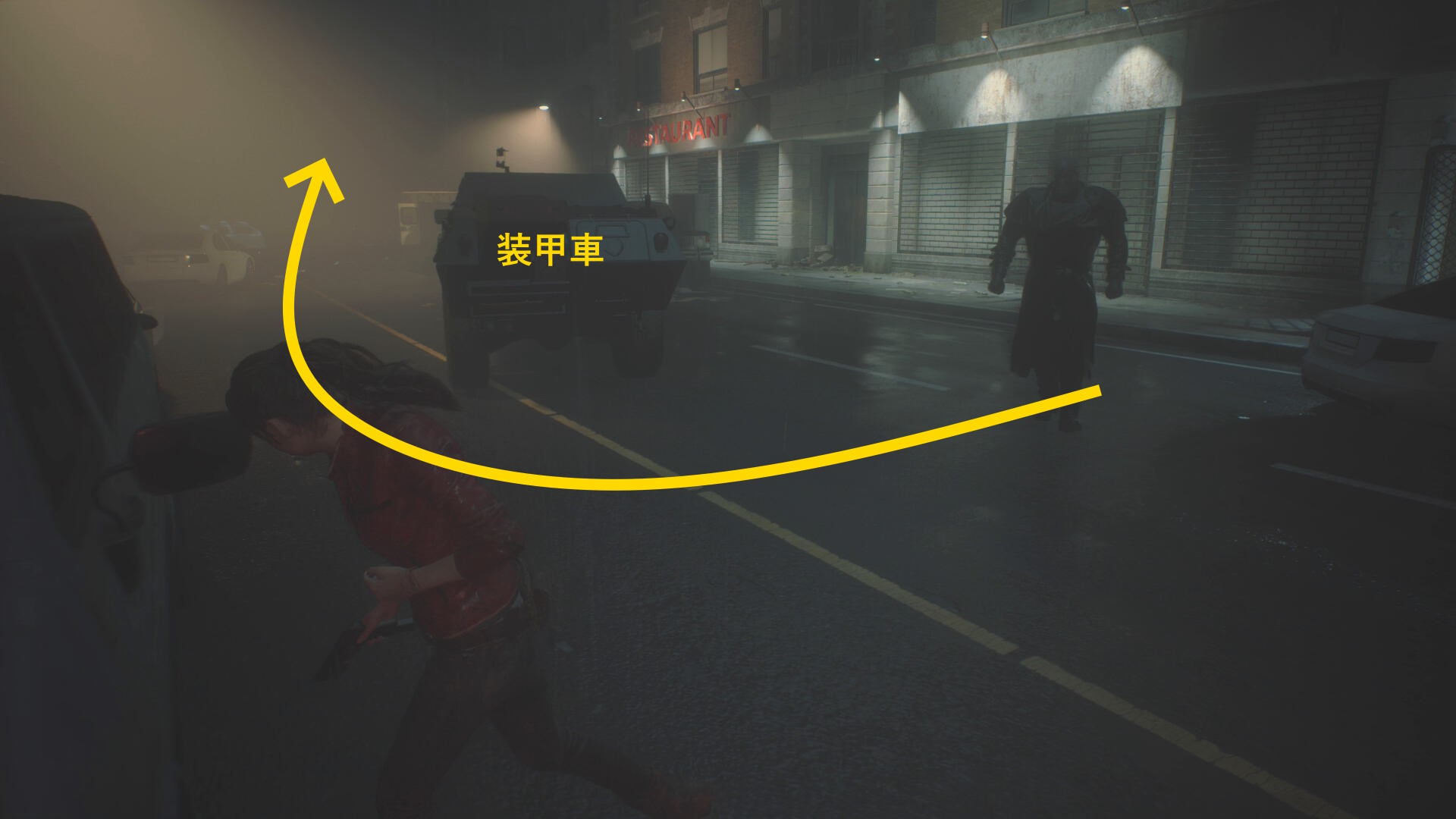 - フェンス状ドアに近づいたあと、後ろにある装甲車を時計回りに回ればタイラントに捕まることはない