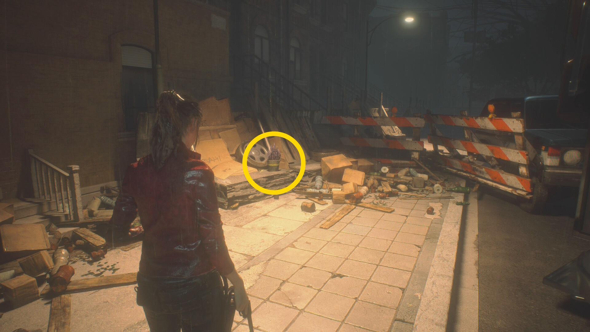 - なお、射撃場の奥(ゾンビが2体いる)には 焼夷弾 があるが、歩きで進んでもゾンビに見つかり、労力の割には見返りが少ないのでスルー推奨