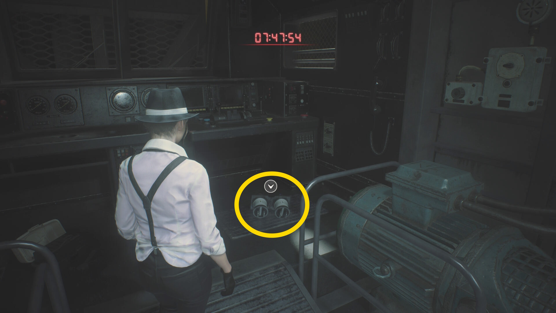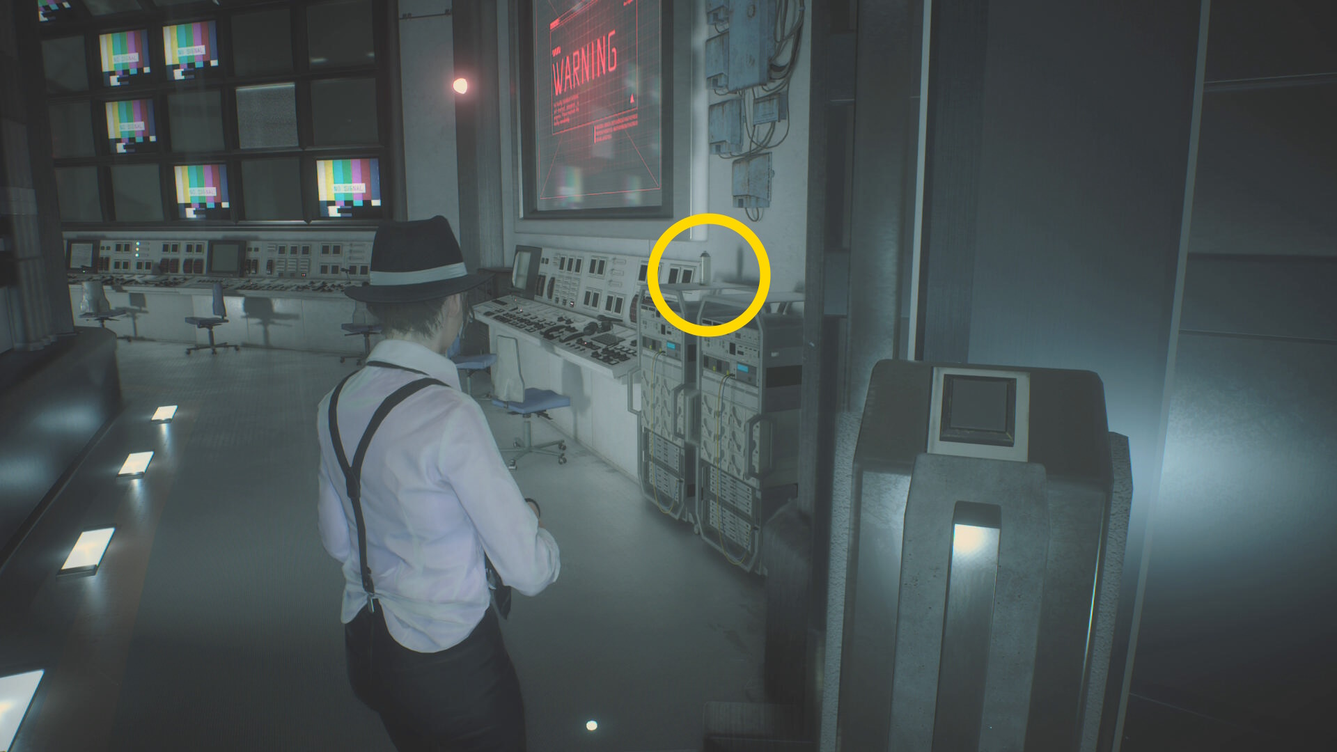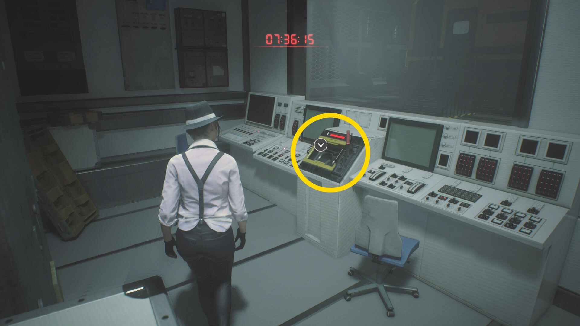 - カットシーン後、列車から出て左前方のコントロールルームへ