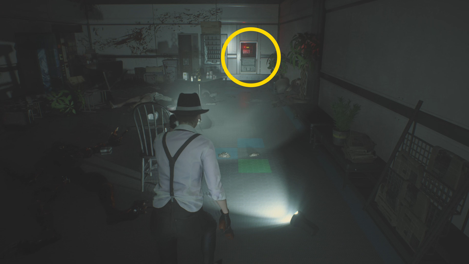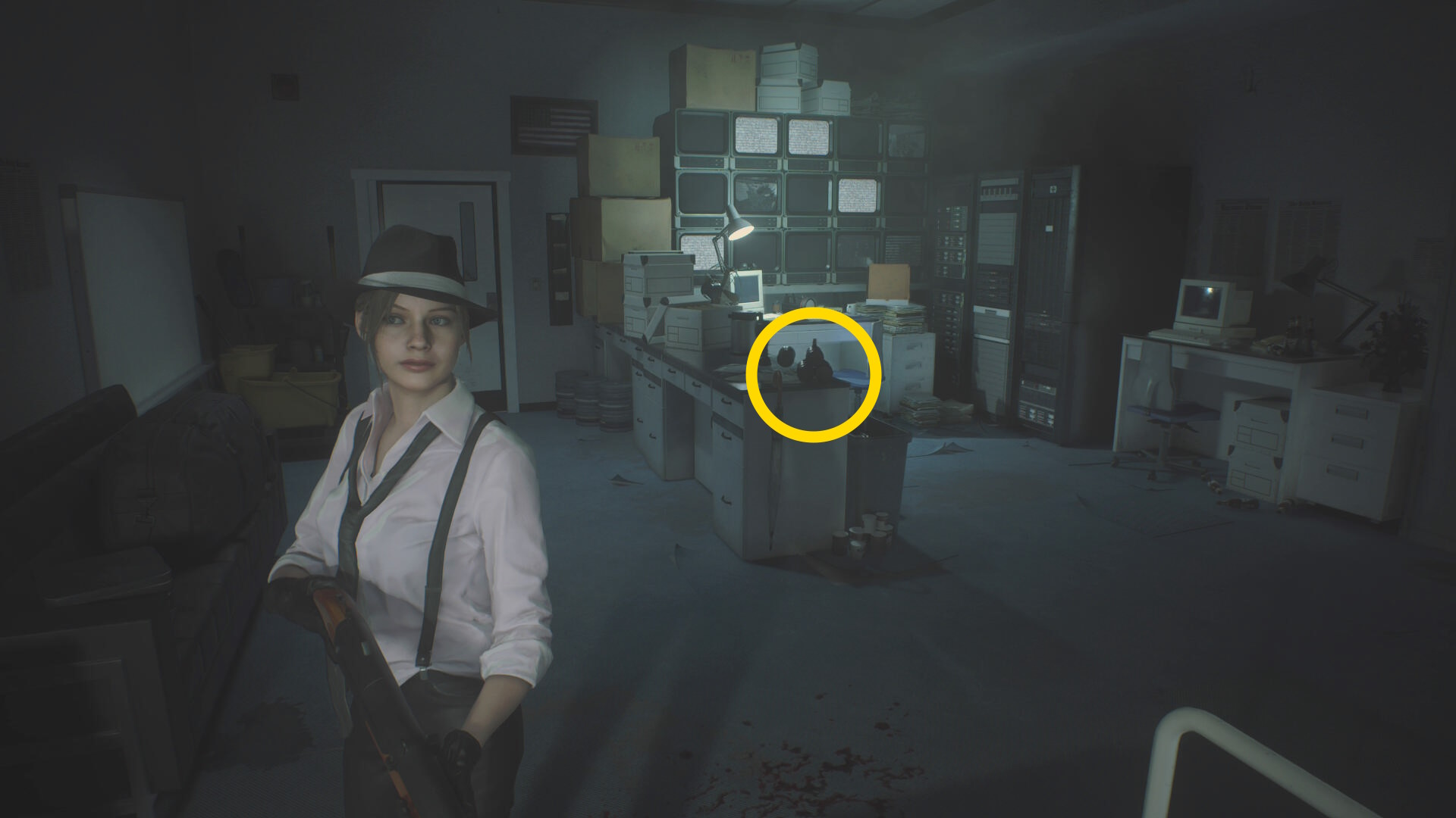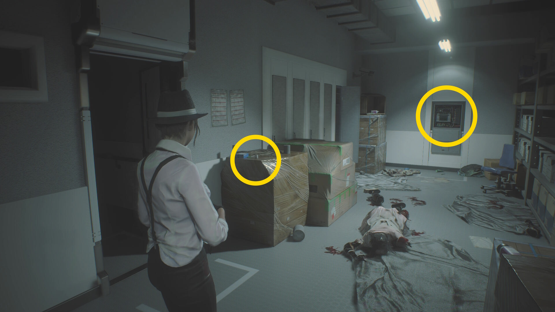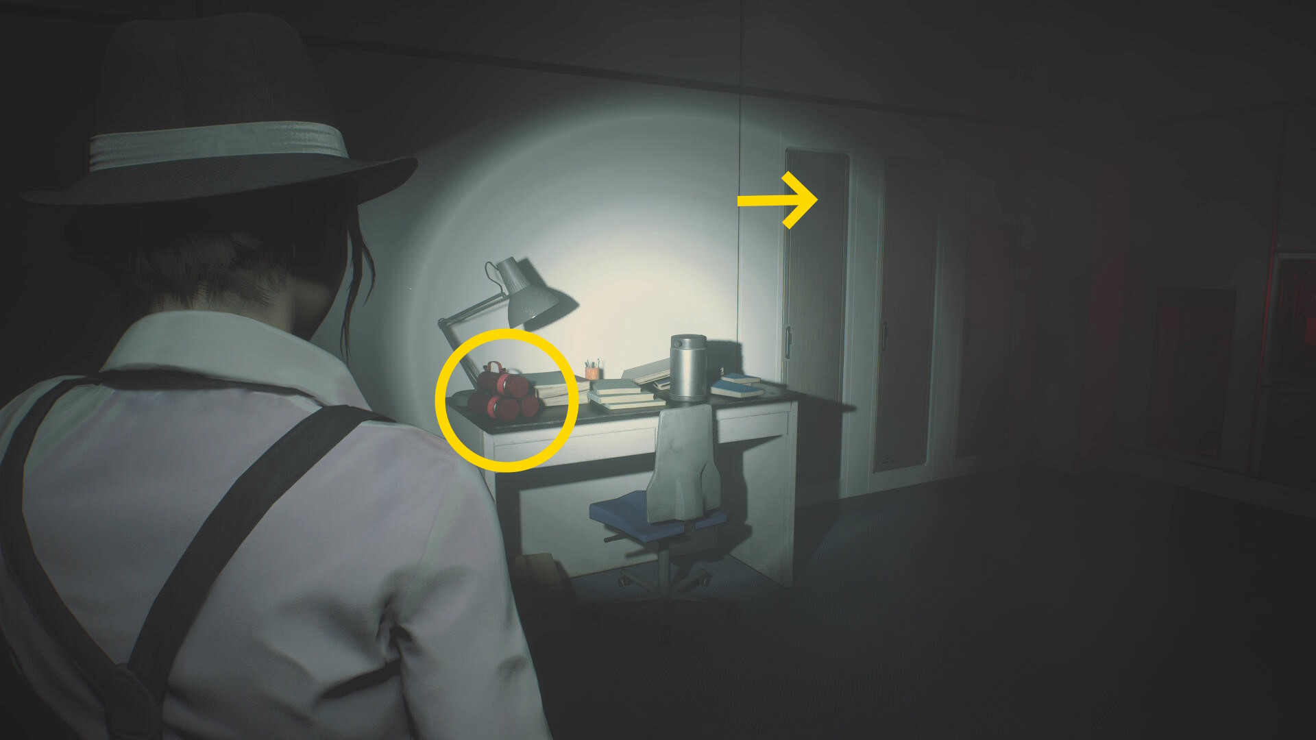 - 左の机上の 焼夷弾、ロッカーの 高電圧コンデンサ(スパークショット)を回収