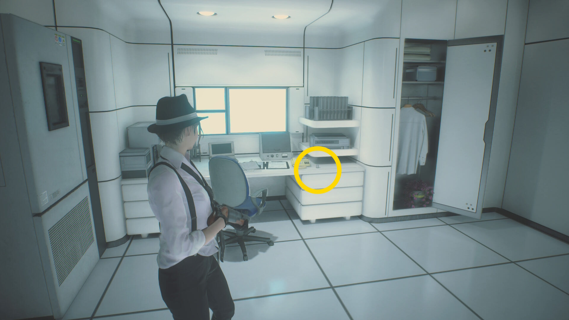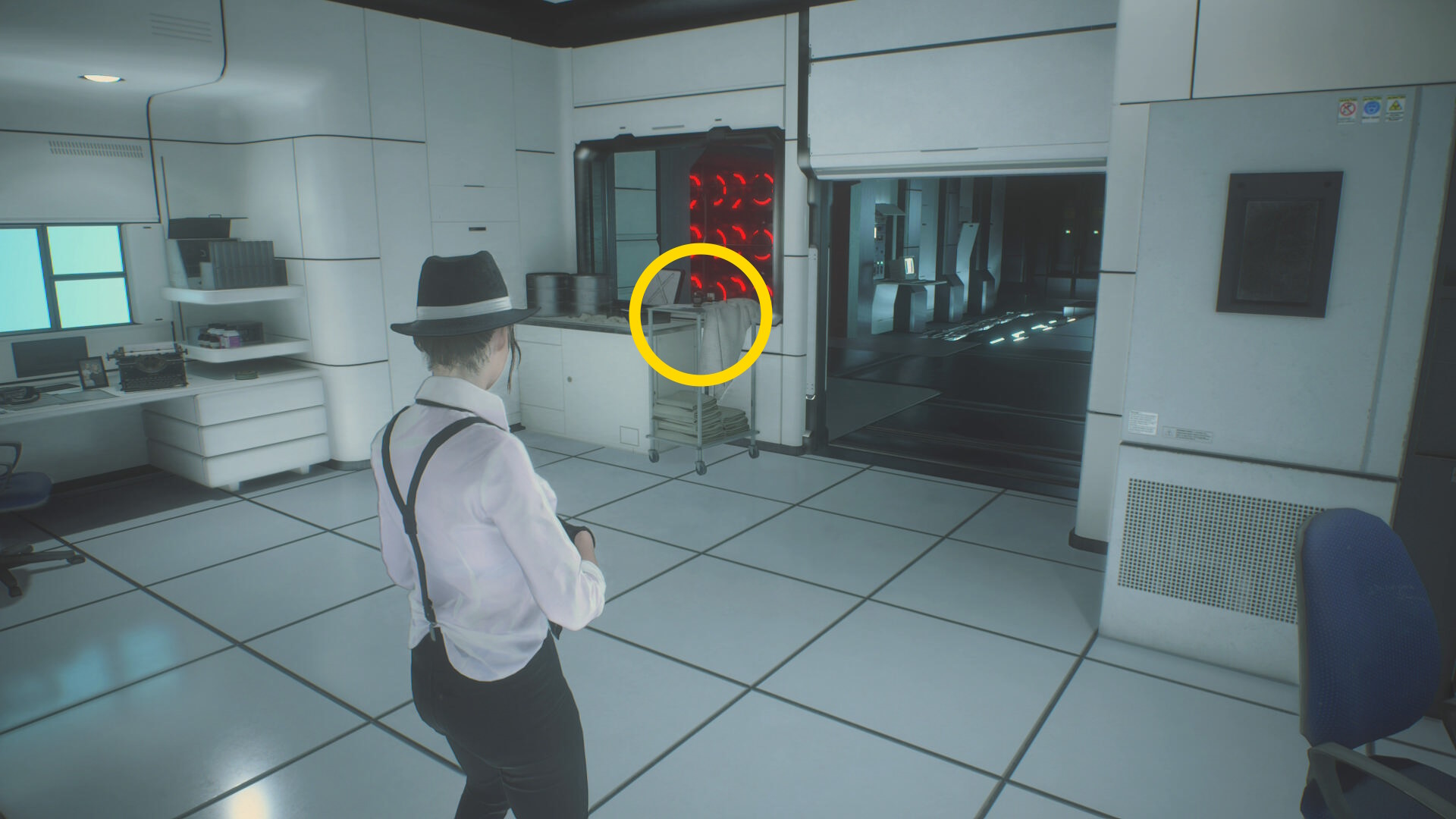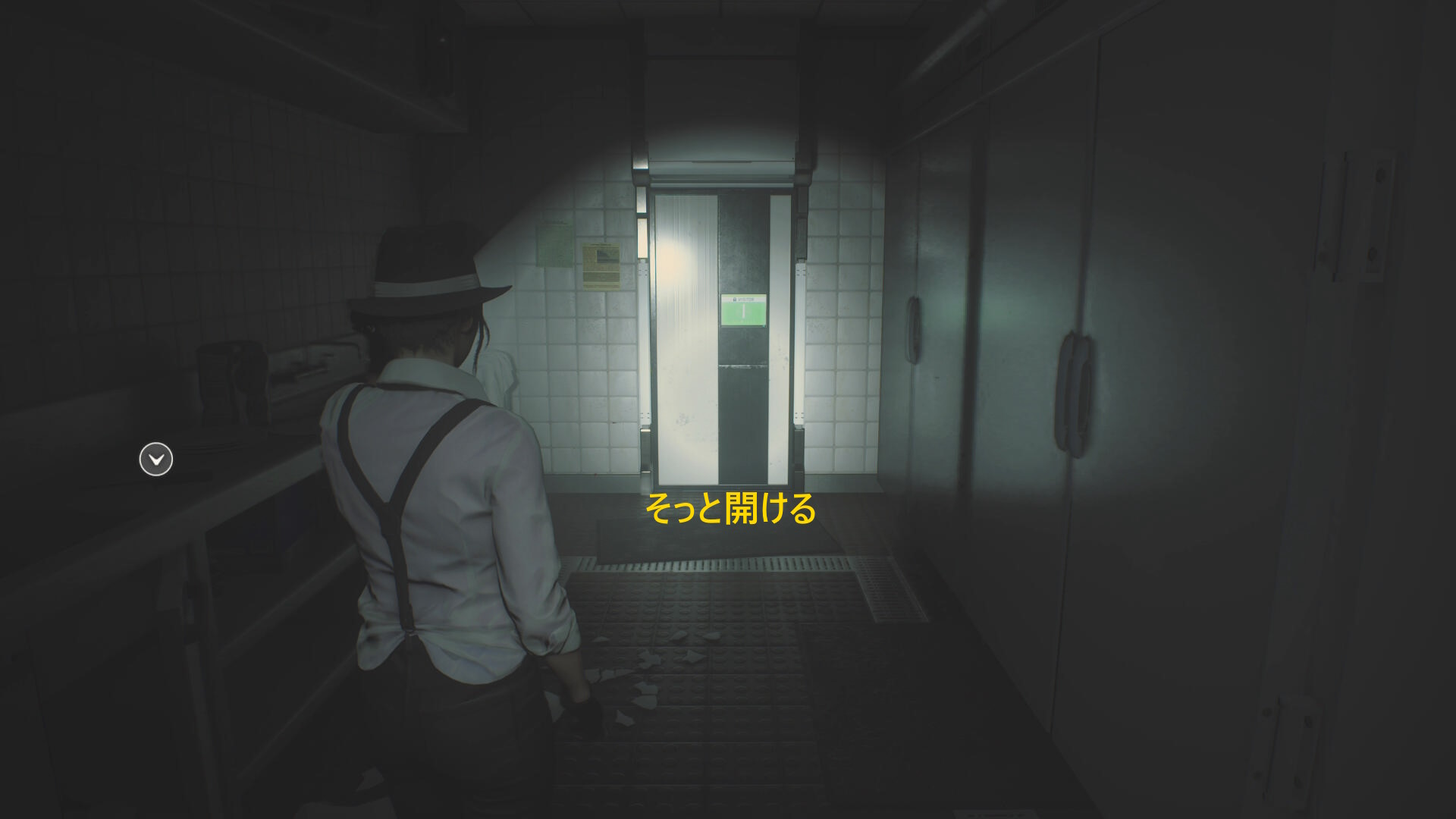 - ドアのサムターンを回して開け、レバーを引いてシェリーの元へ