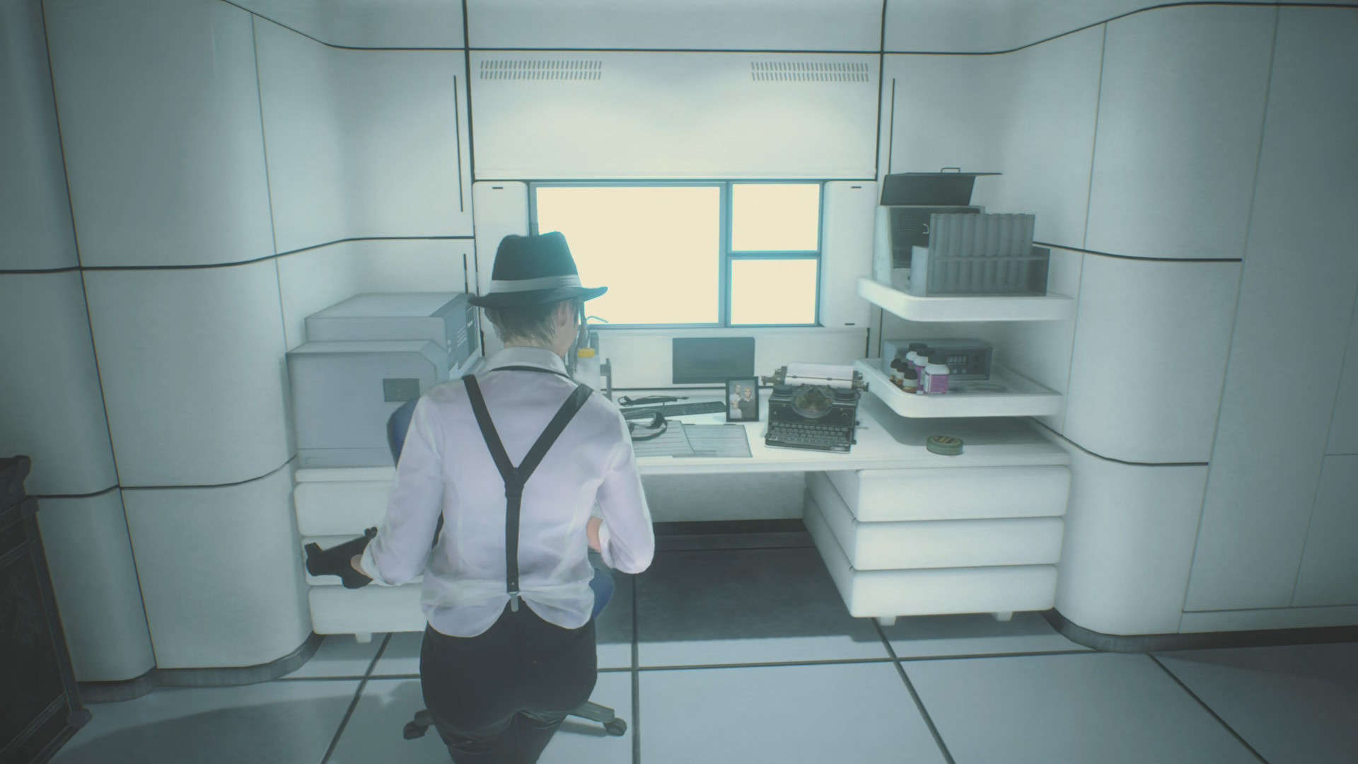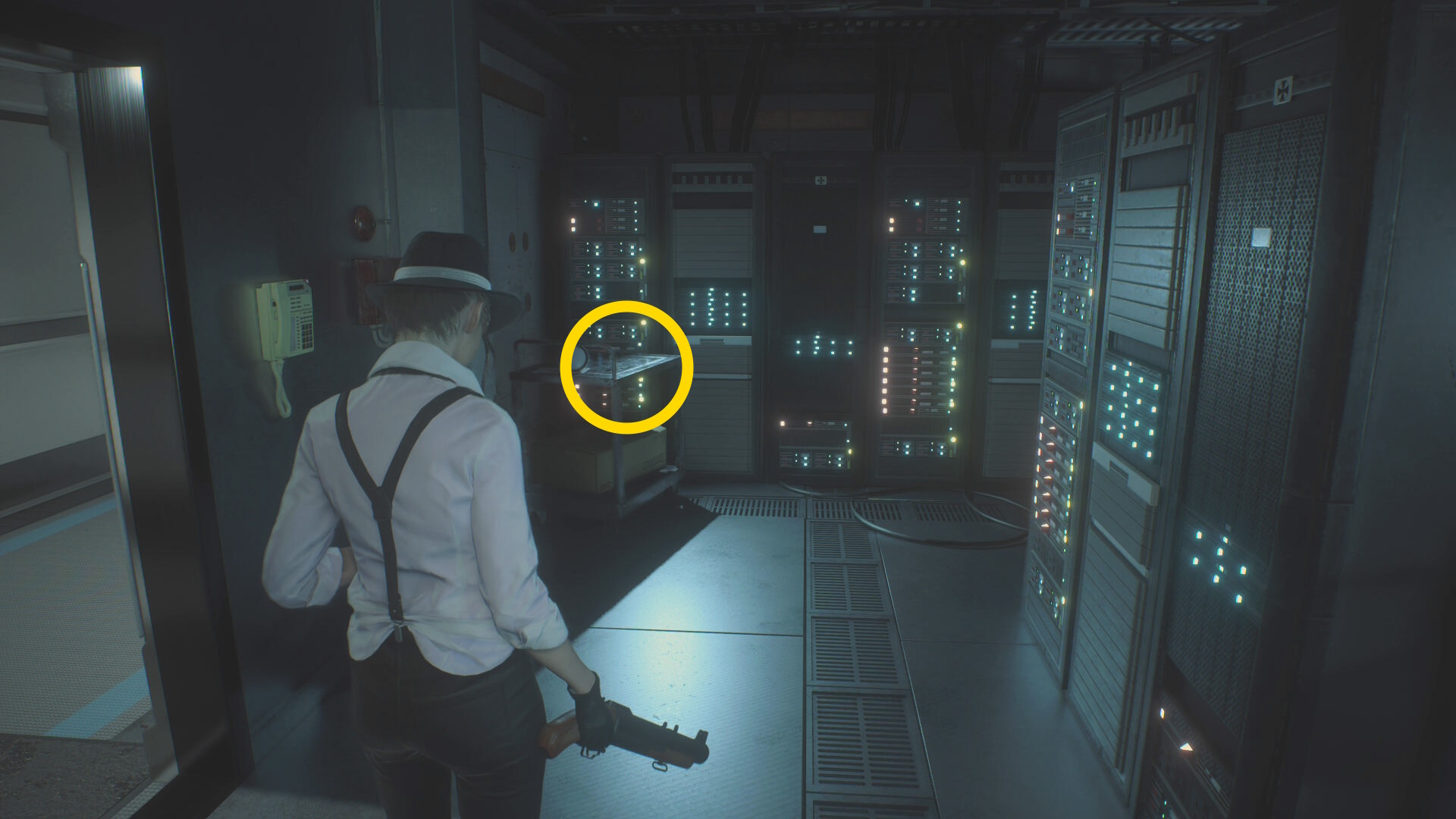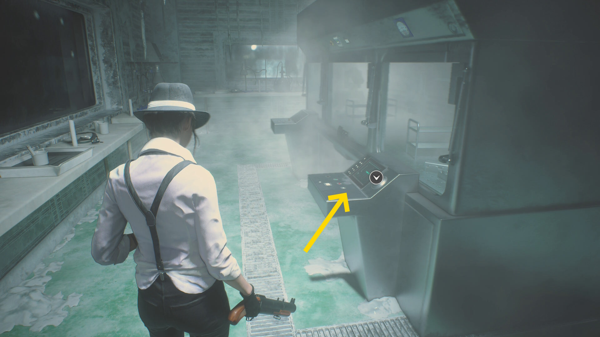 - ドアのサムターンを回して開け、レバーを引いてシェリーの元へ