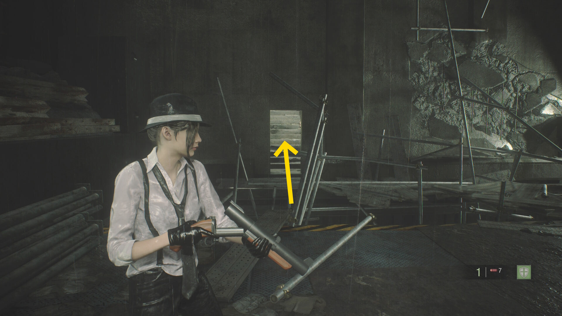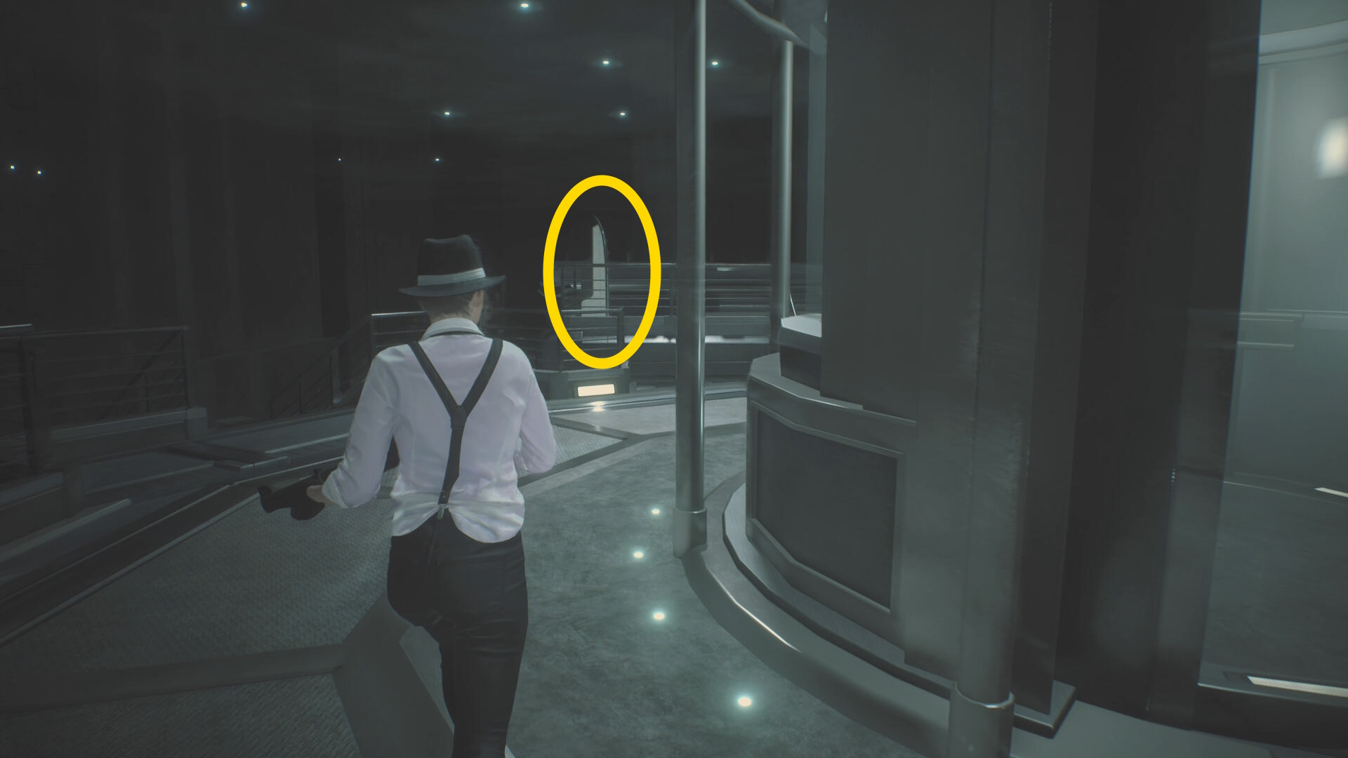 - 階段を下り、リッカー2体が出現したところへ(ドアを開ける前から歩きで移動すること)