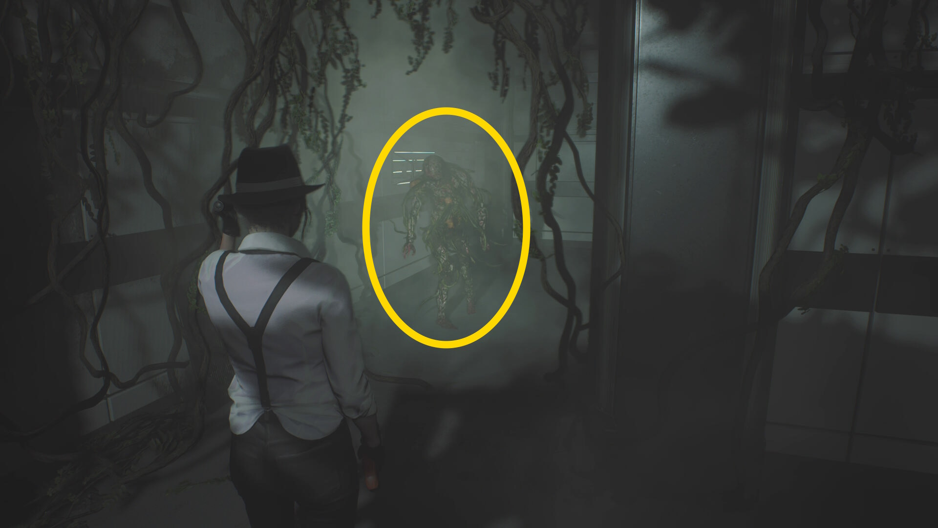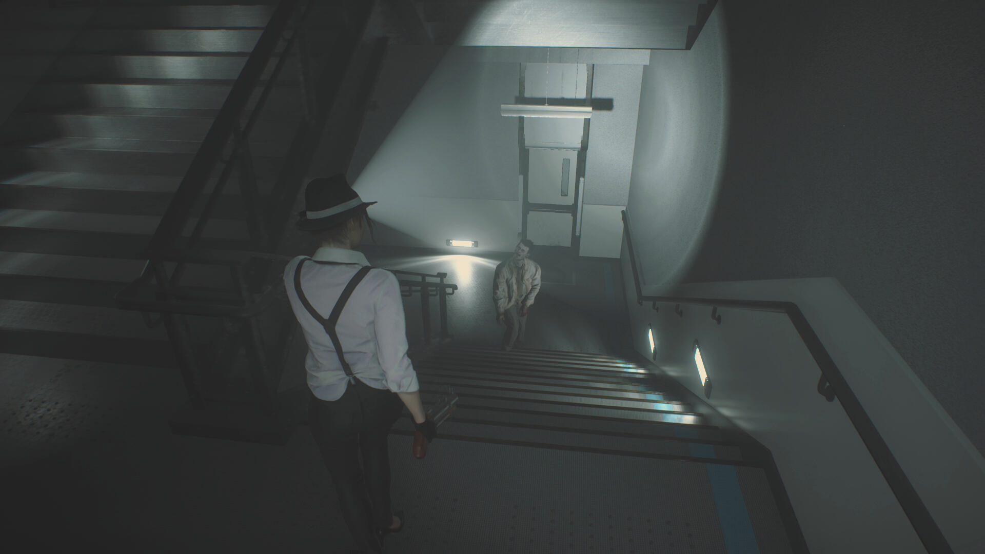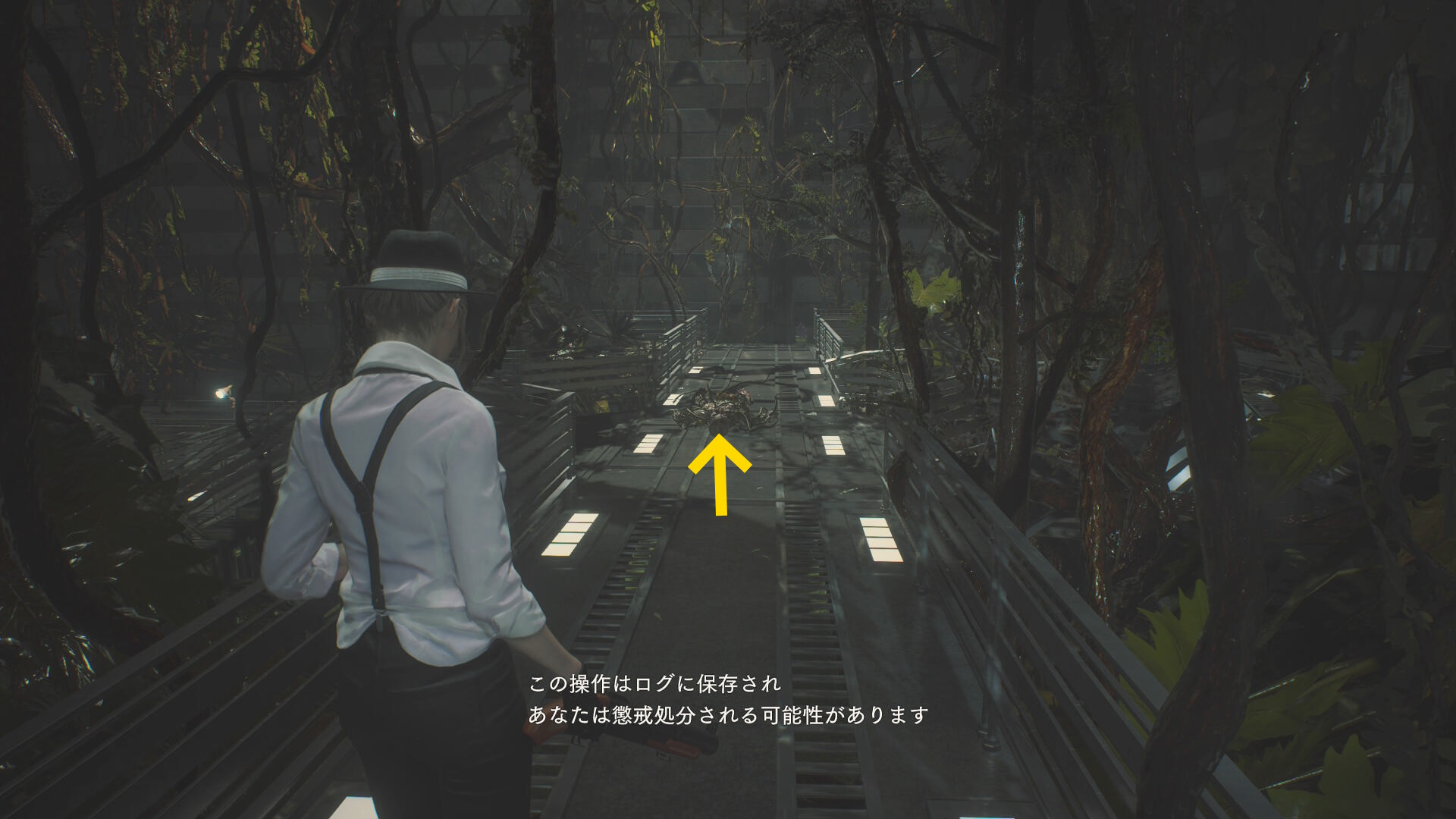 - 2つ目の階段を登る途中、右上を見上げるとゾンビが見える
