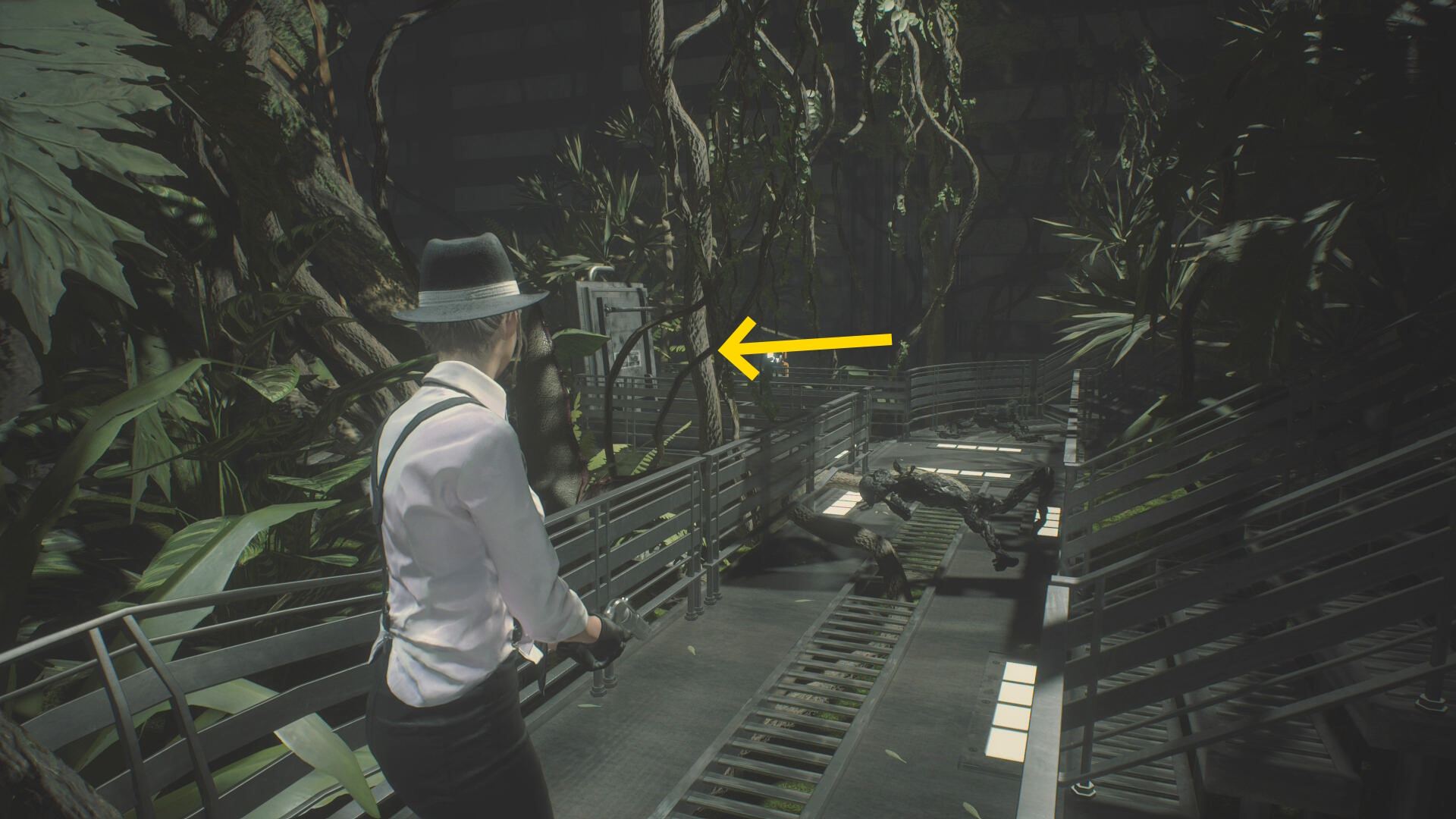 - 中央の通路に死んだふりイビーが倒れているので焼夷弾を1発(キルする必要なし)
