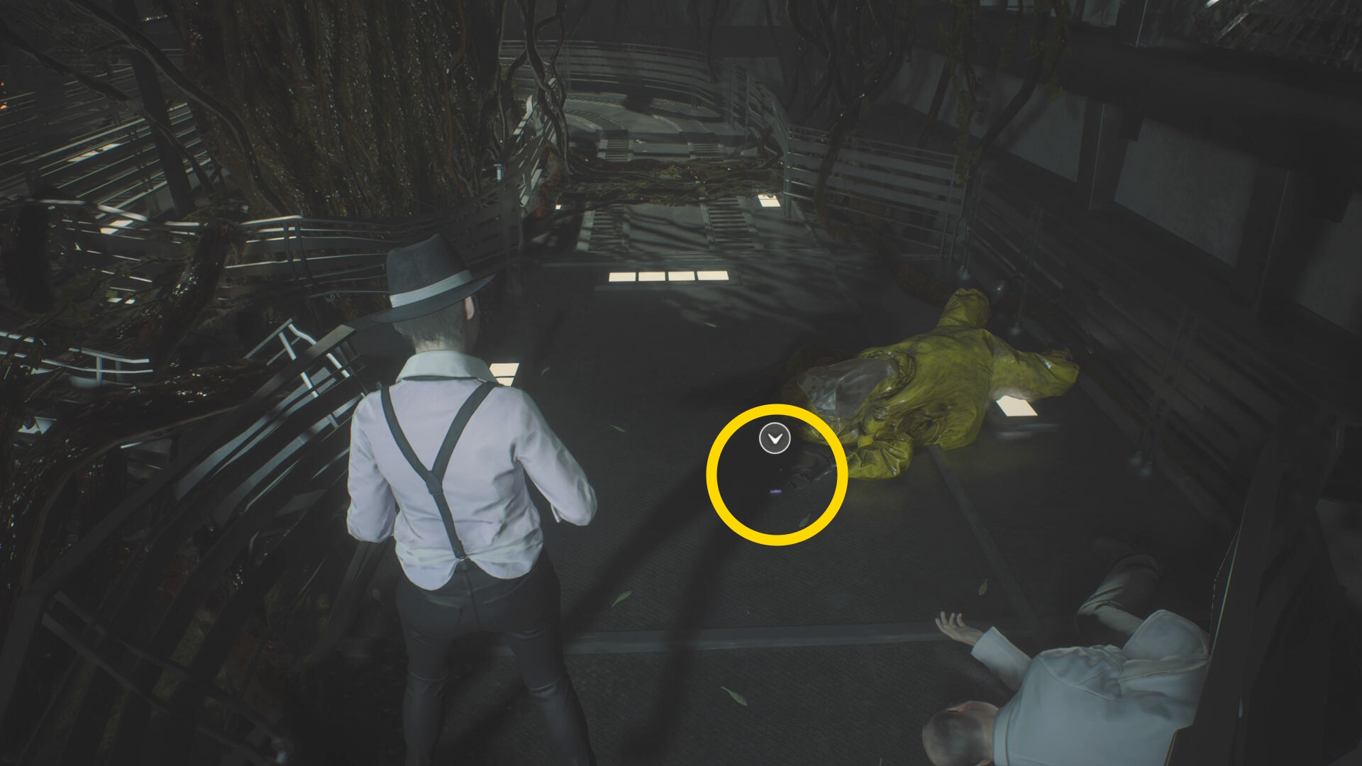 - 反時計回りに移動して防護服の死体のそばの 破片手榴弾 を回収