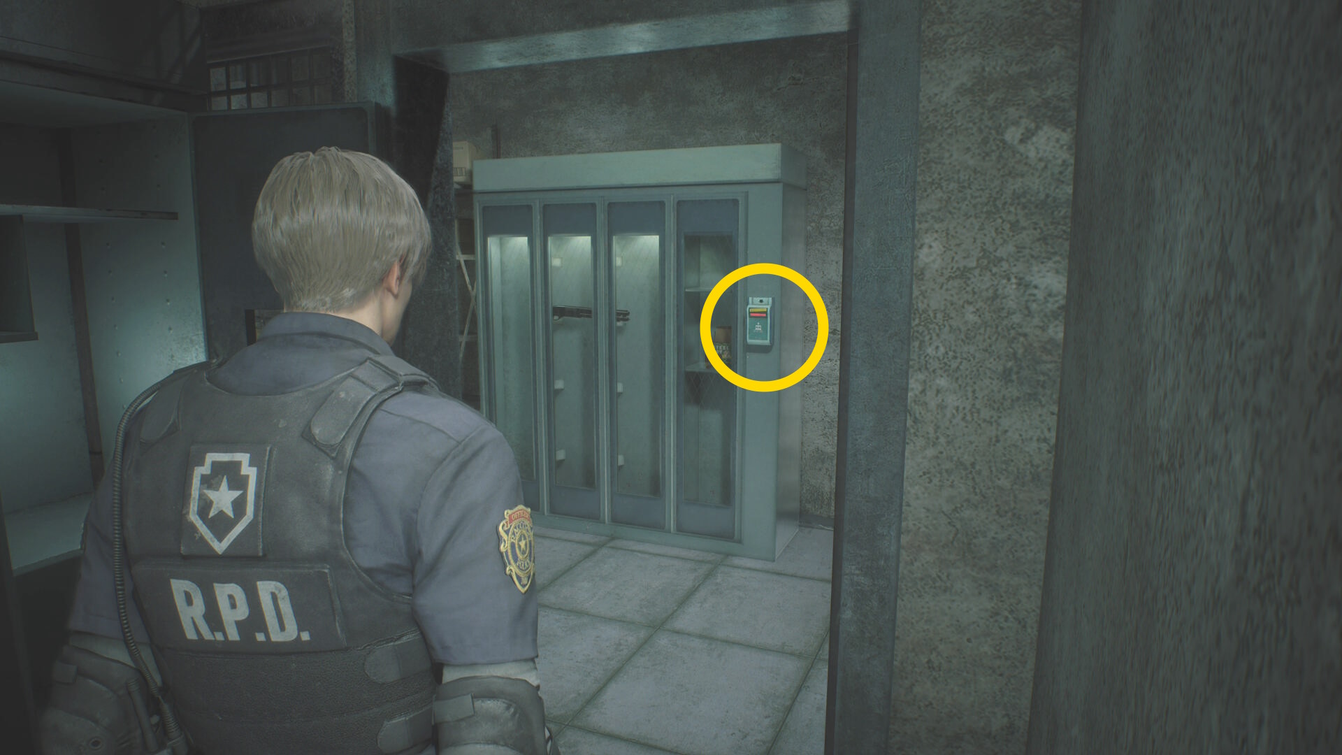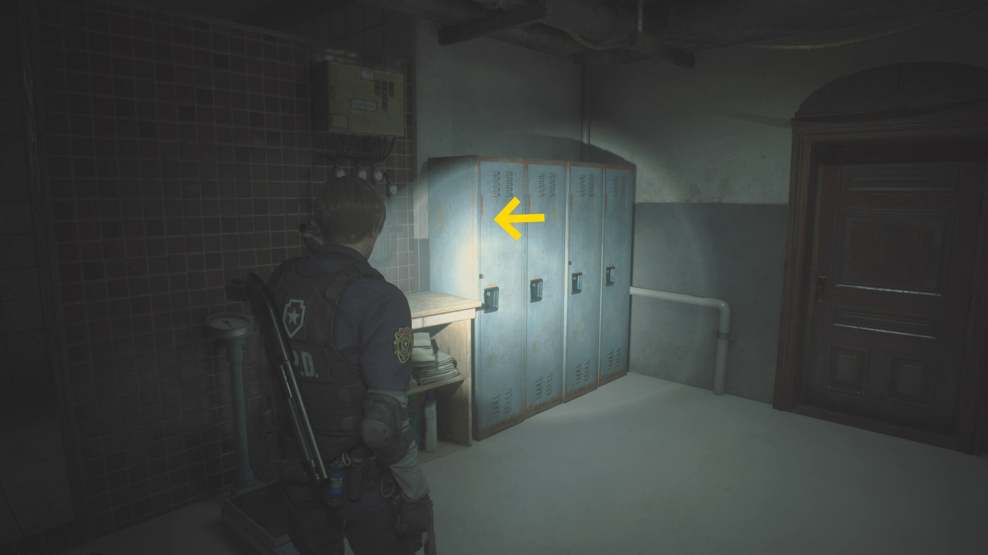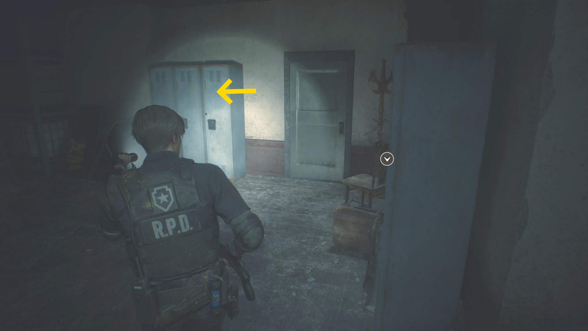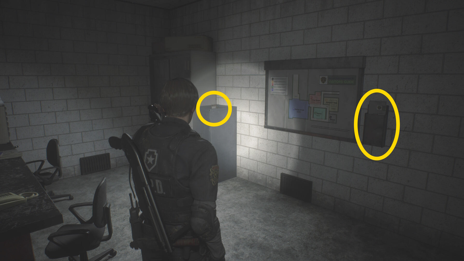 - 資料室のドア(ハートの鍵で解錠:レオンでは開けられない)の右脇にある 木材 を回収