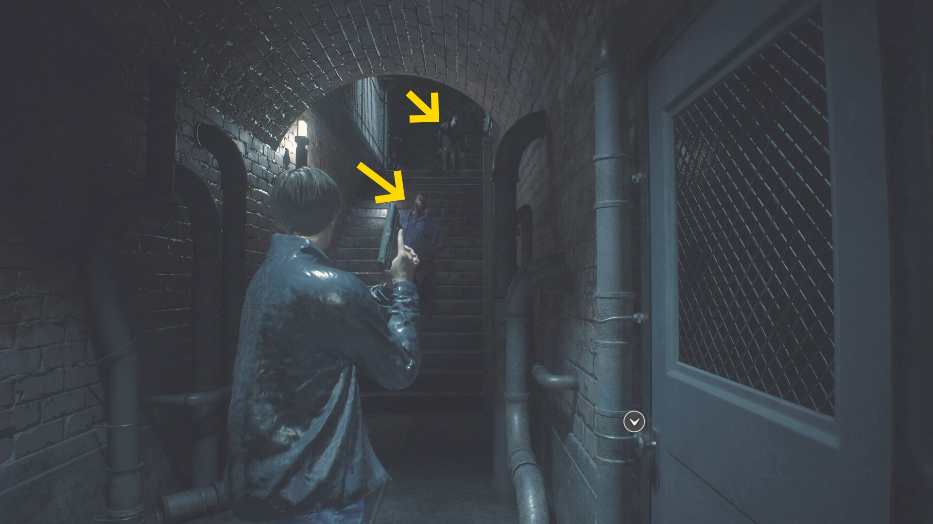 - ここの1階にはゾンビマービンとチェックシャツゾンビがいるが、攻撃していると弾薬が尽きるのでまずは無視