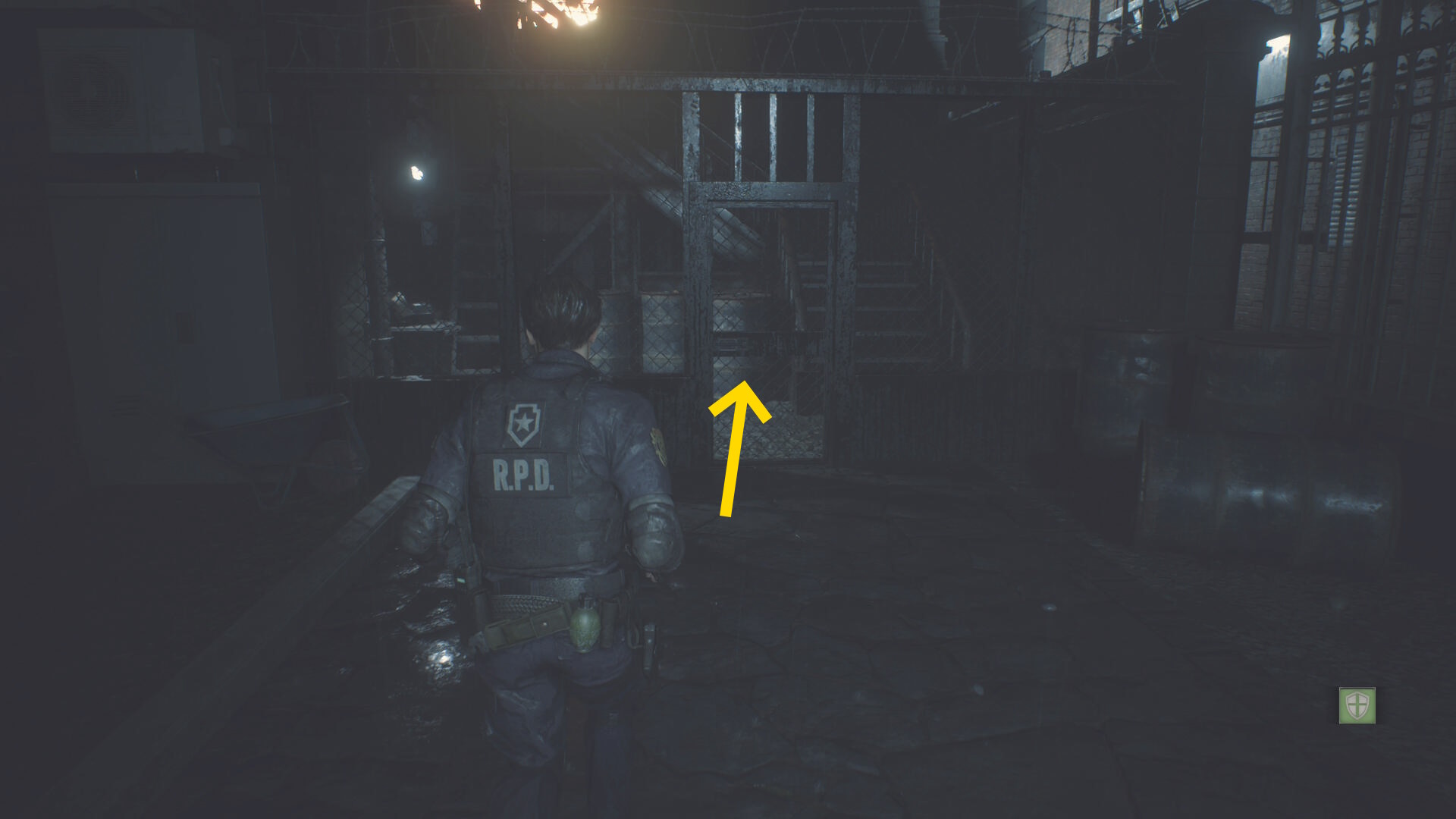 - 無事にゾンビエリアを抜けたら、庭園の鍵でフェンス状ドアを解錠