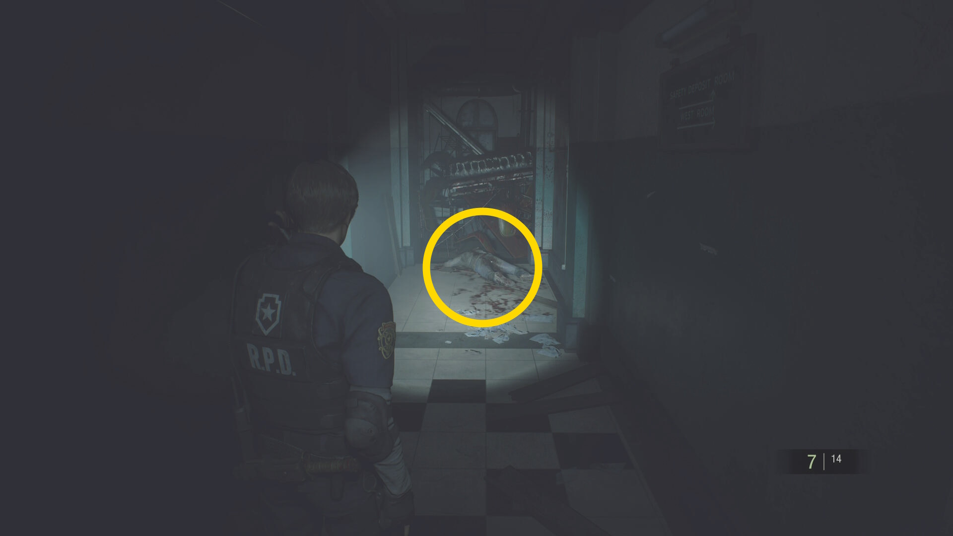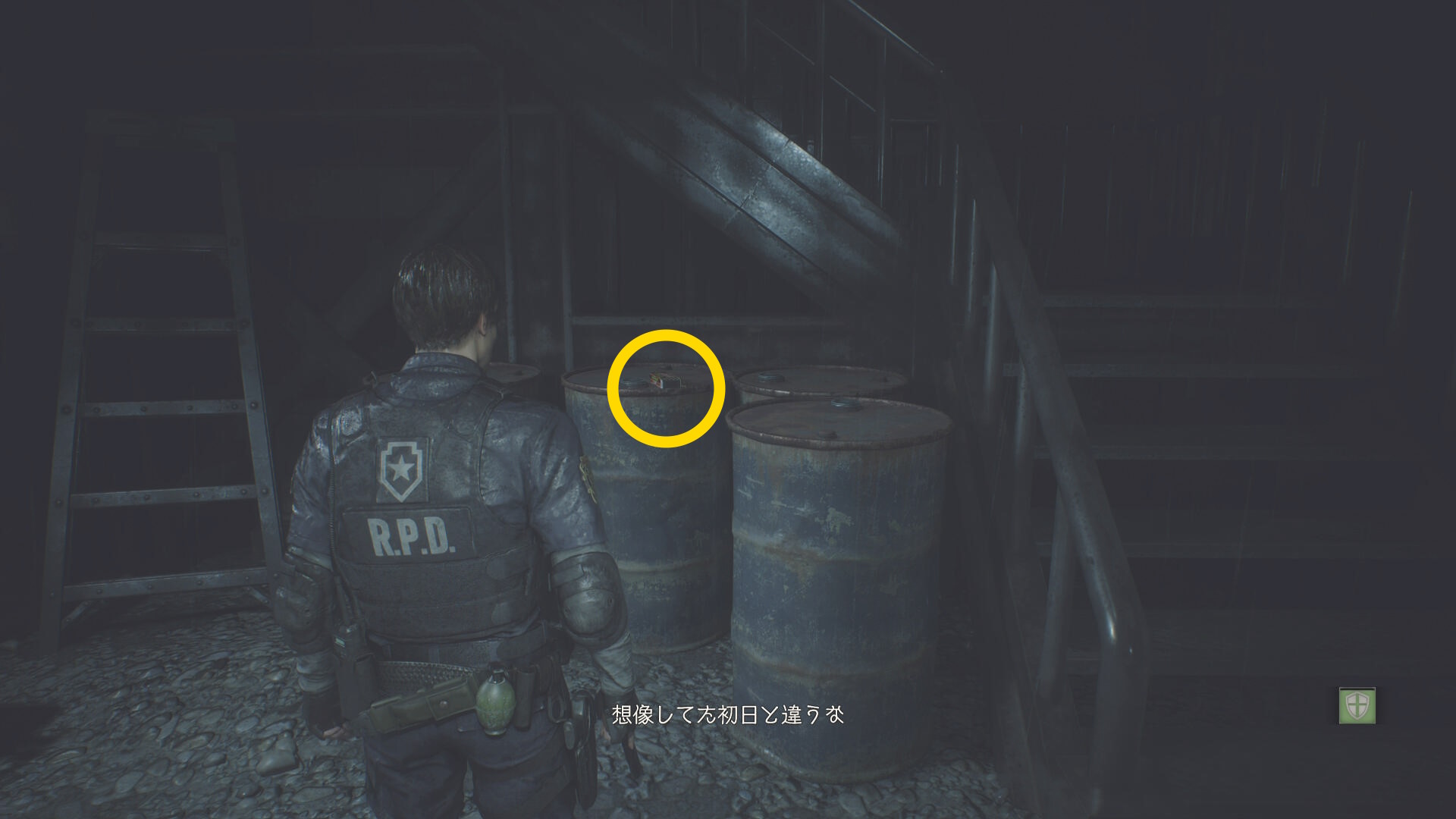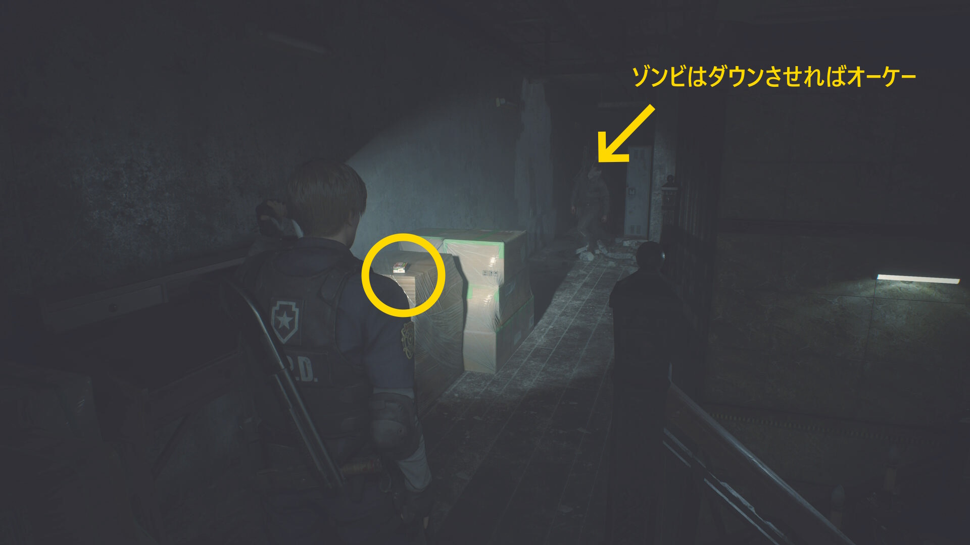 - ショットガンの弾を回収した時点で右前方からゾンビが1体来るため、大きな歯車を回収するのにもたつくと捕まる可能性がある