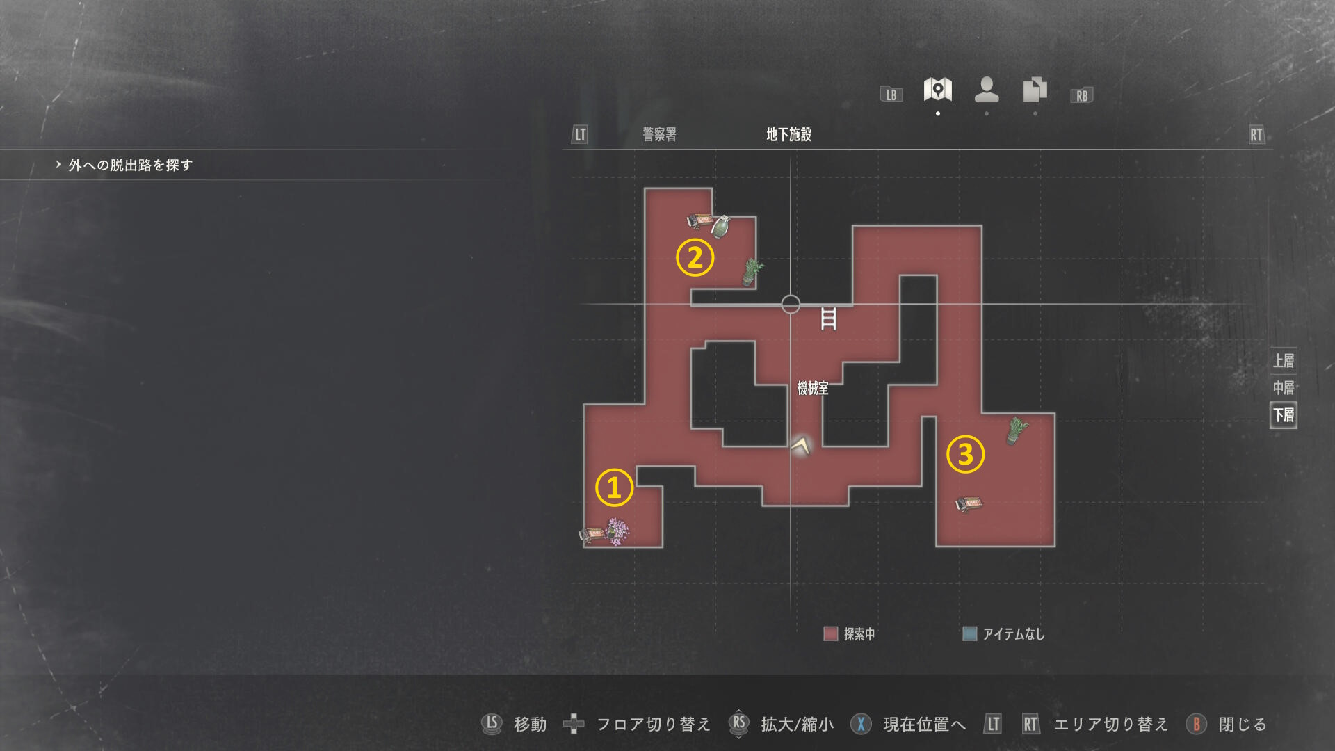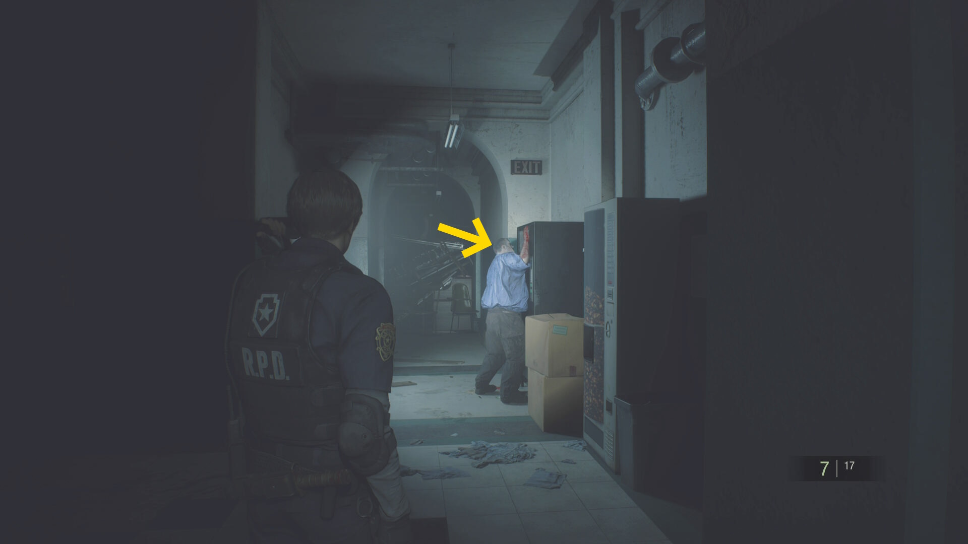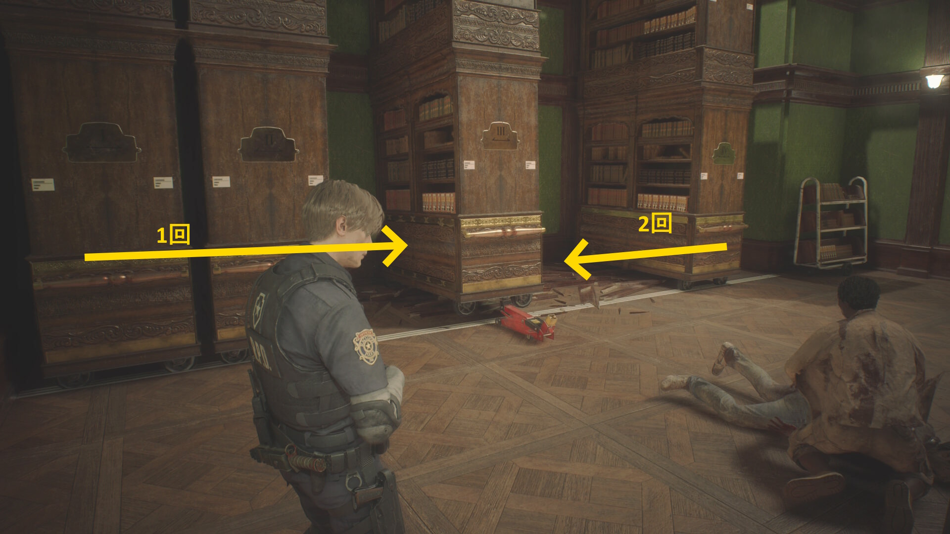 - ショットガンの弾を回収した時点で右前方からゾンビが1体来るため、大きな歯車を回収するのにもたつくと捕まる可能性がある