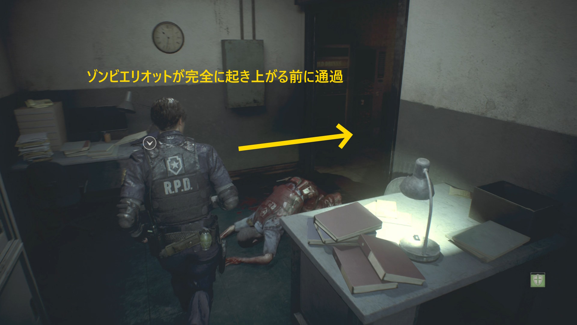 - 中にゾンビエリオットがいて立ち上がるが、完全に立ち上がる前にダッシュで通過する