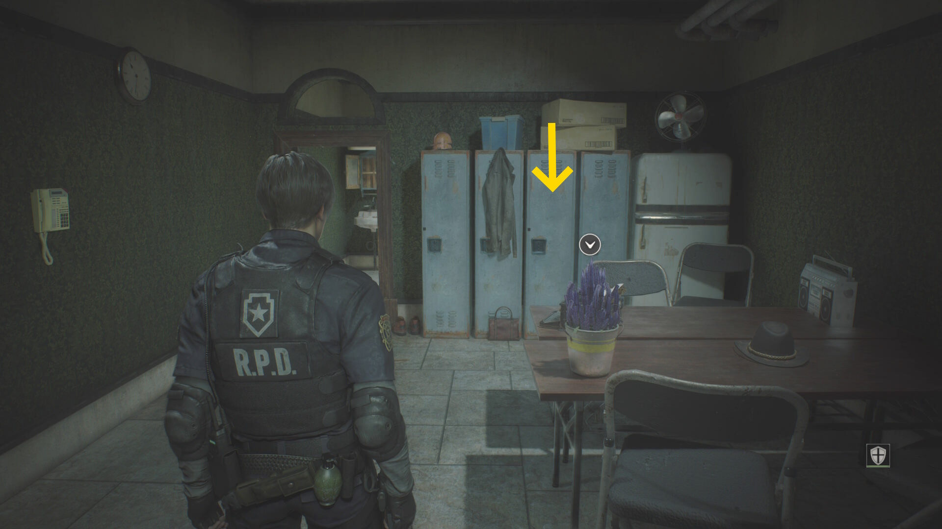 - 正面奥のロッカー、右から2番目を開き 大型拳銃の弾