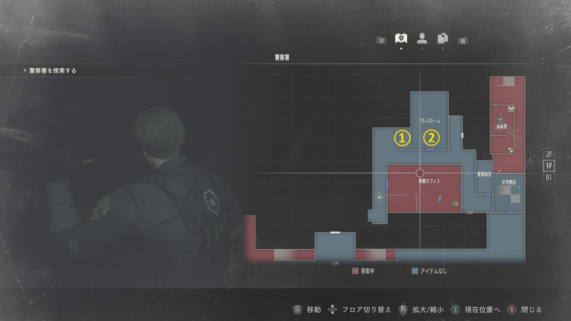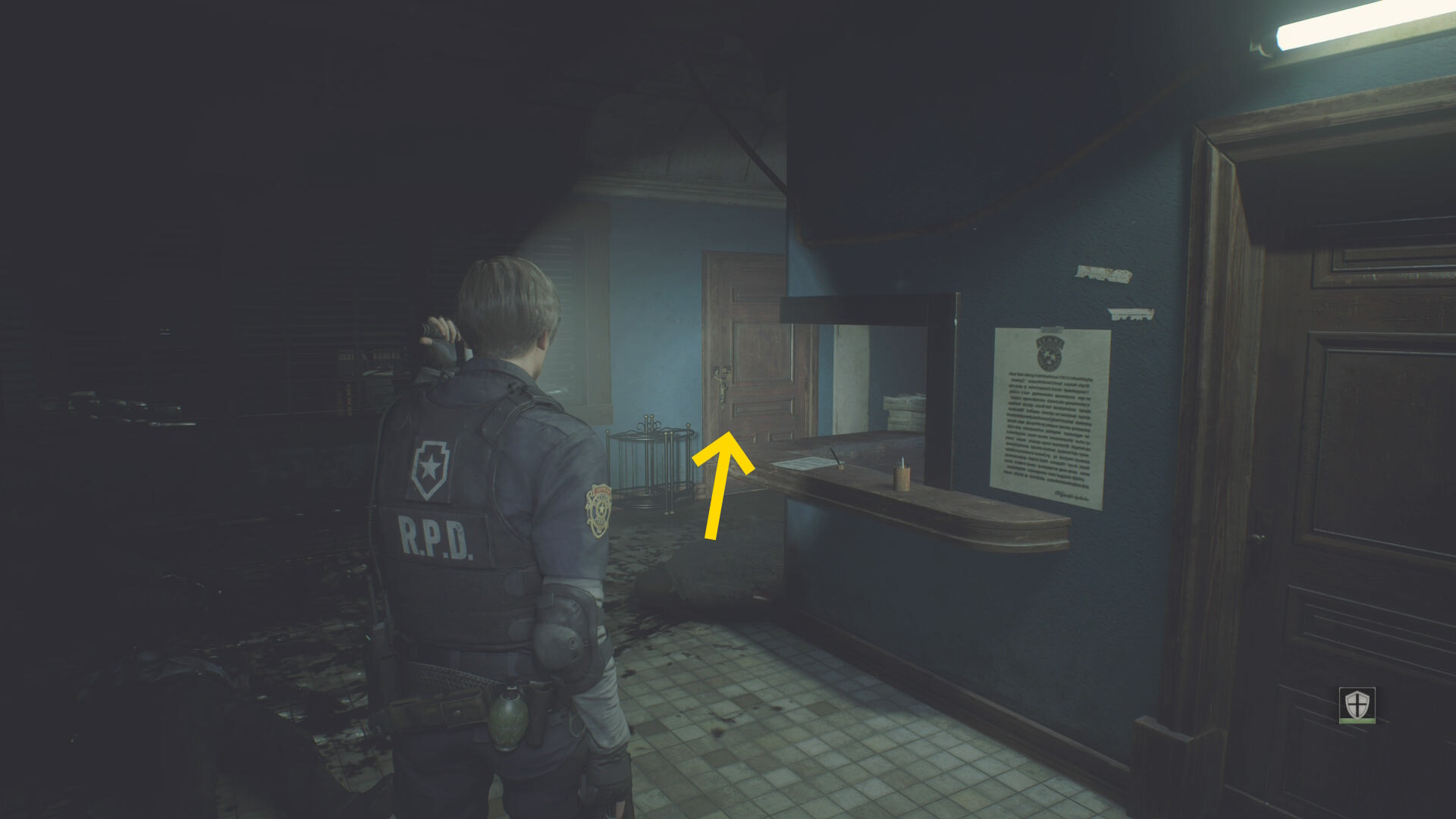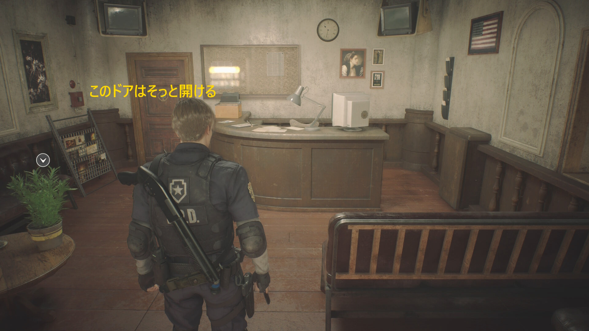 - 左のドアを開けて警察署に入り、すぐ右の「警備員室」のドアを開ける