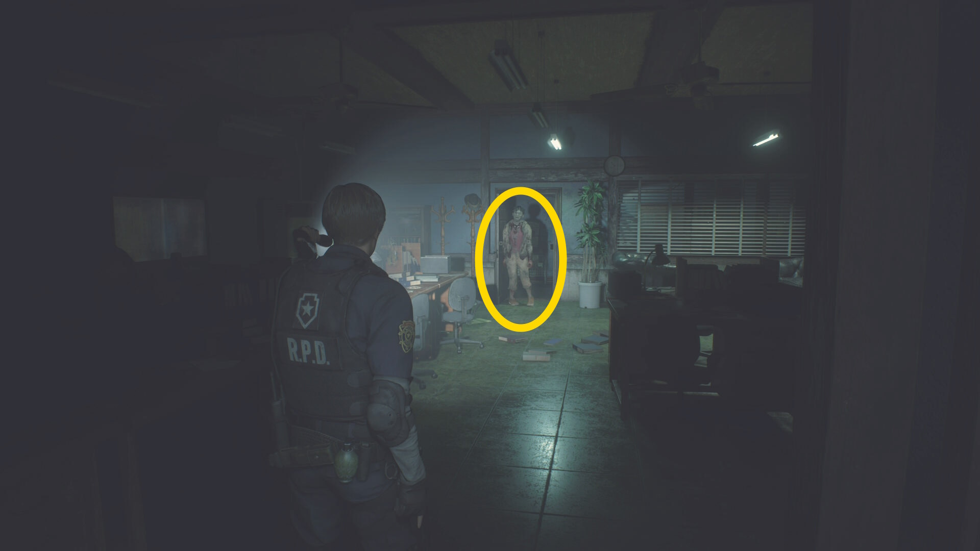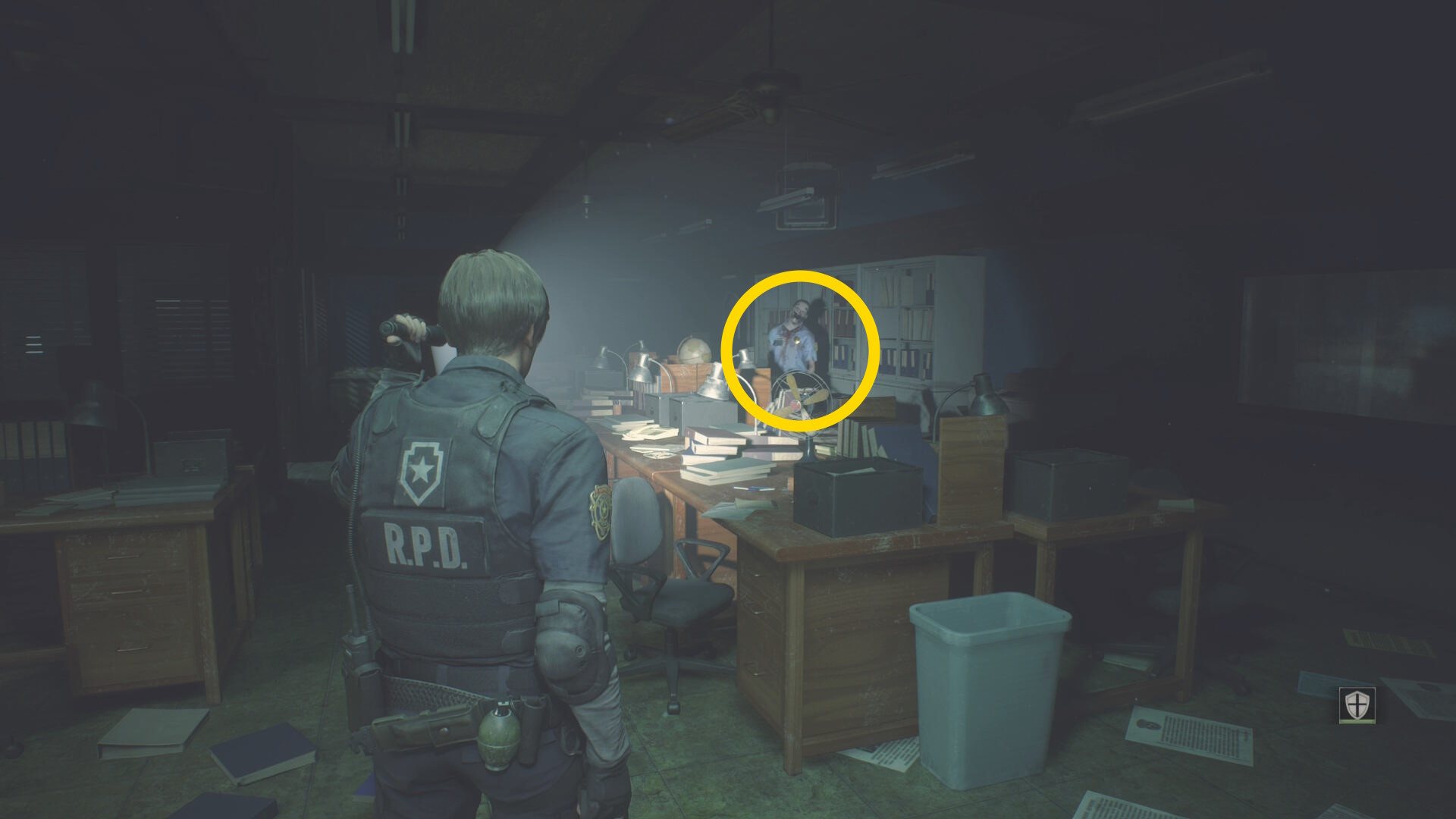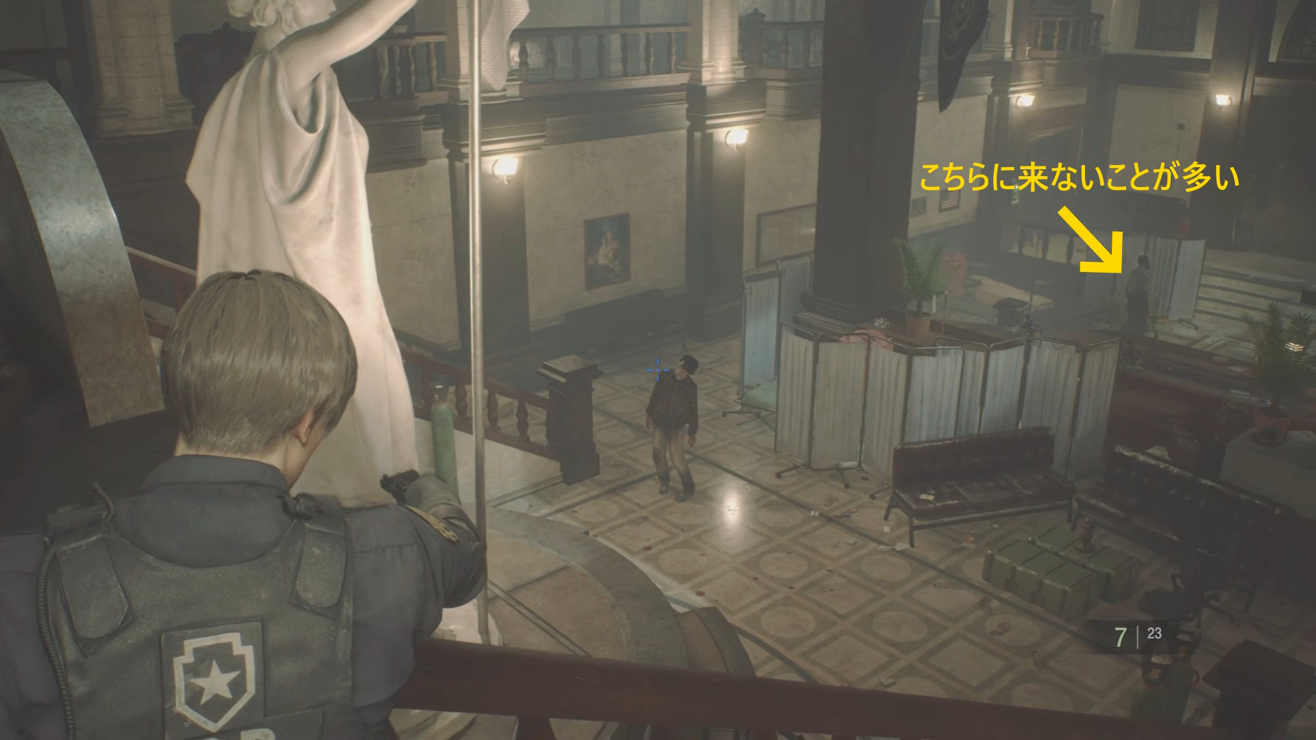 - 中に入り、右前方(にいることが多い)警察官ゾンビを攻撃