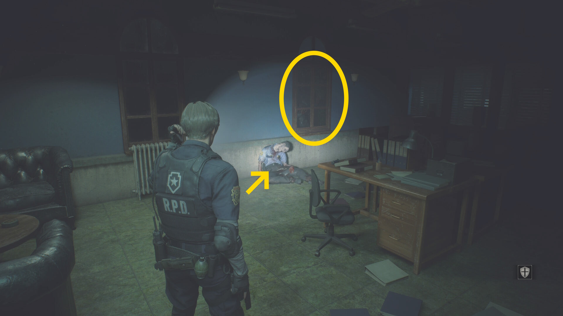- 「警備員室」前の窓から侵入してきたゾンビはできればキルしておきたいが、弾薬の残りが10発程度なら止めておく(あとでキルできる)