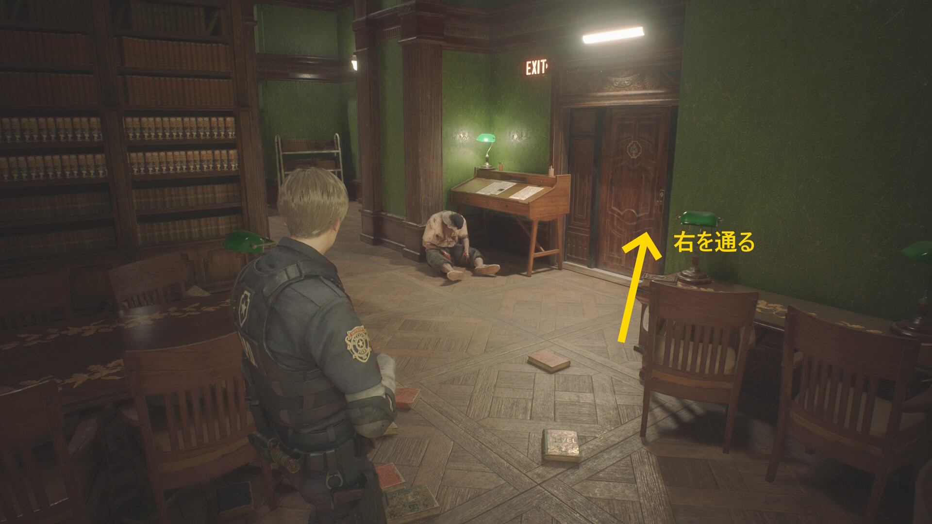- 「図書室」に戻り、入口前の太っちょゾンビと食事中ゾンビをキルしておく