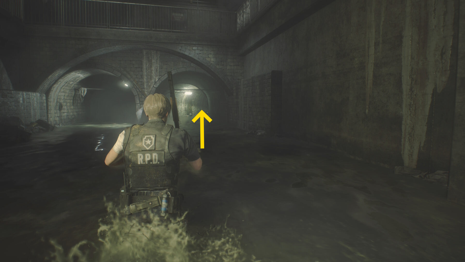 - 水門扉を通過し、左のドラム缶上の ショットガンの弾 を回収
