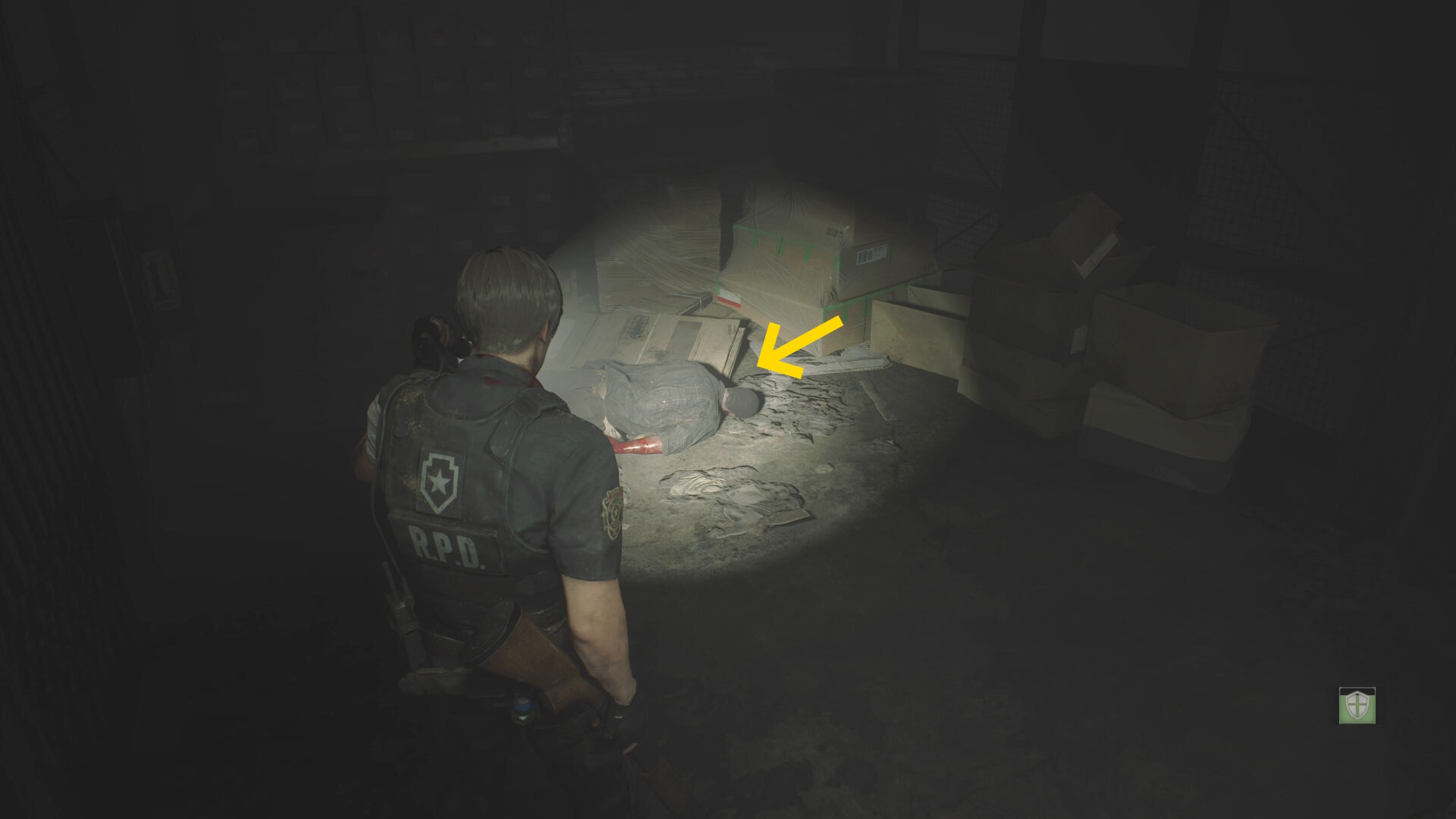 - ハシゴを下りて死体のそばの グリーンハーブ を回収(大型拳銃の弾を捨てる)