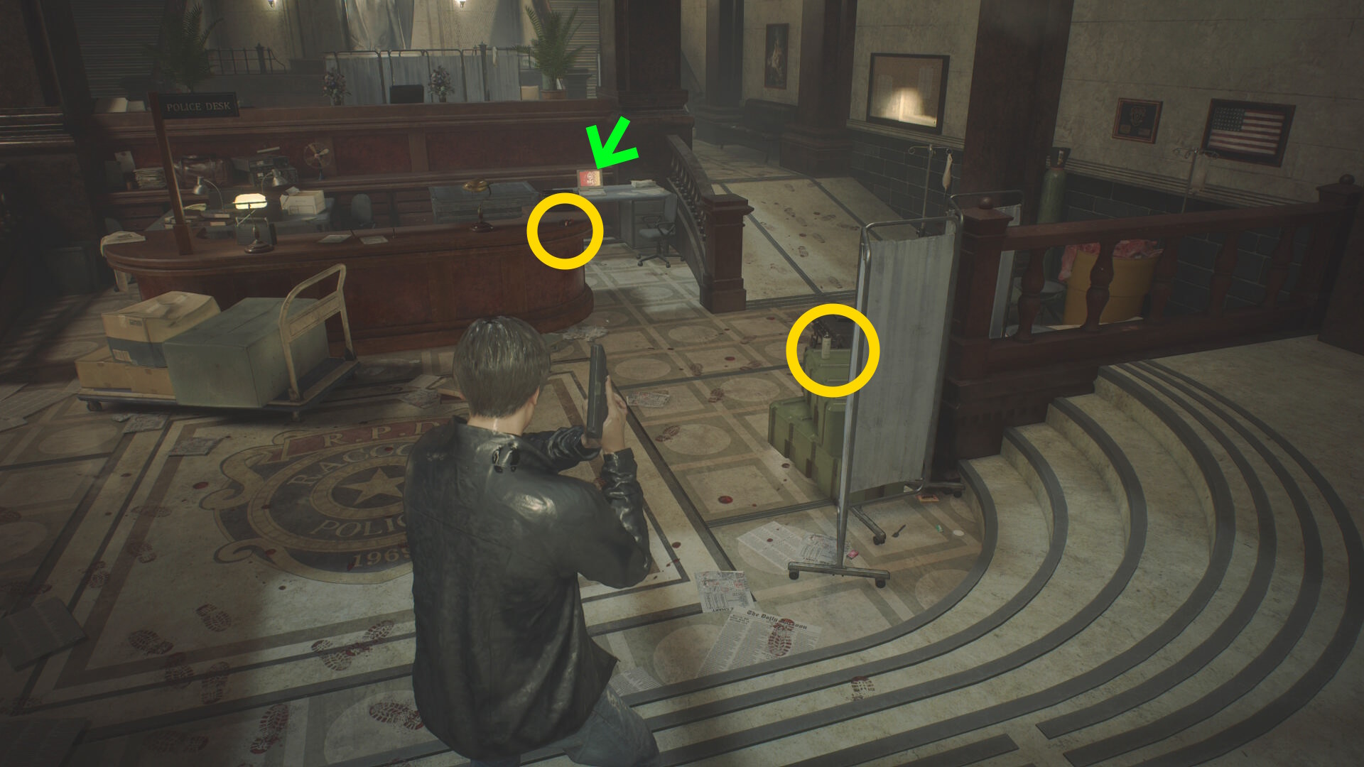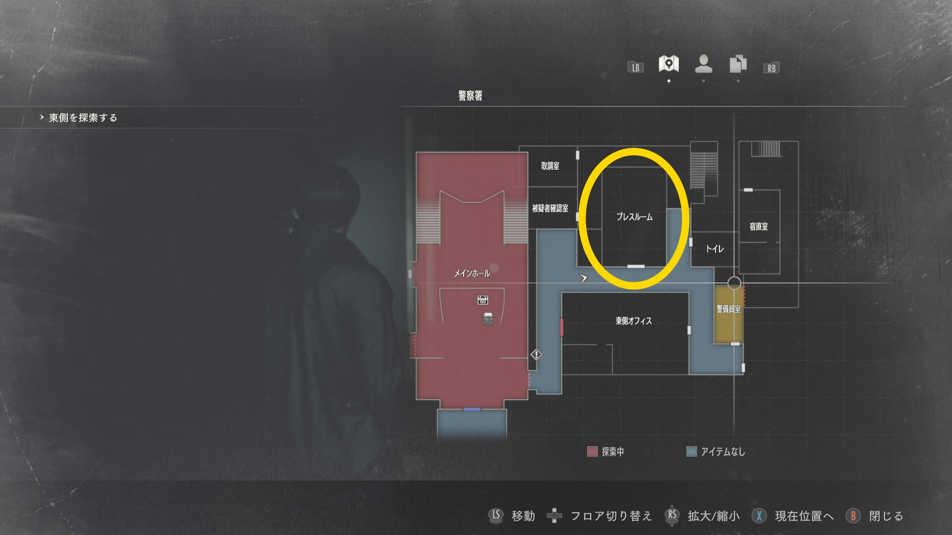 - プレスルームに入ると死体があり、そこから ハンドガンの弾 を回収できる