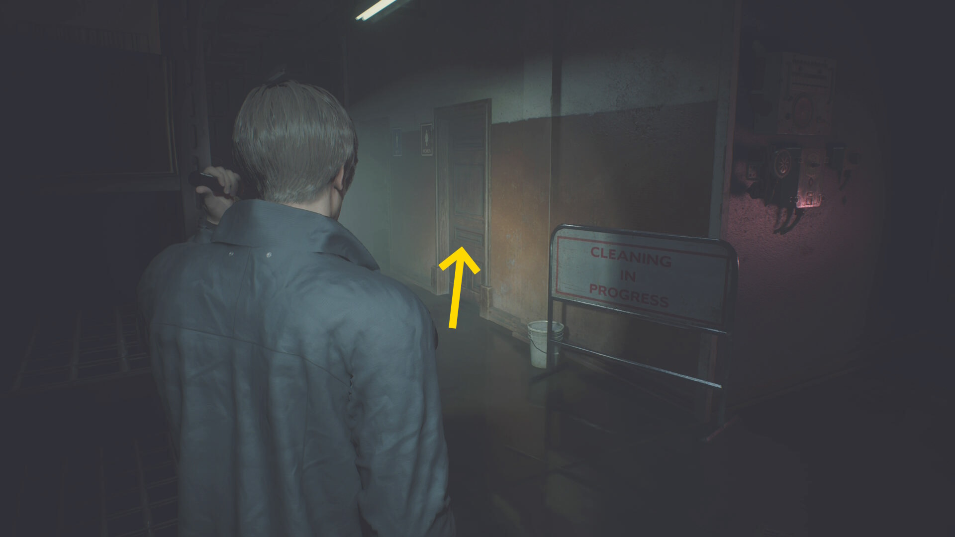 - L 字の角を左折し(右壁に沿った移動はキープ)、リッカーを過ぎたら突き当りのドアのサムターンを回して開ける