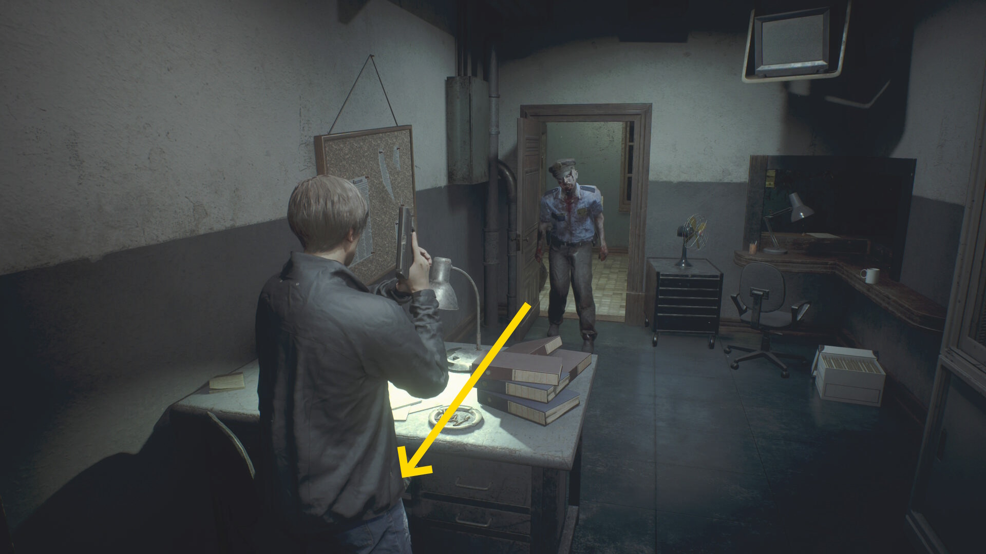 - 少し待っていると警備員室のドアを開けてゾンビが1体入ってくる
