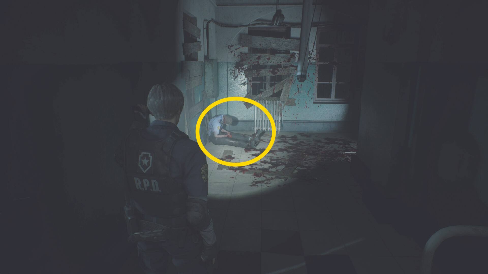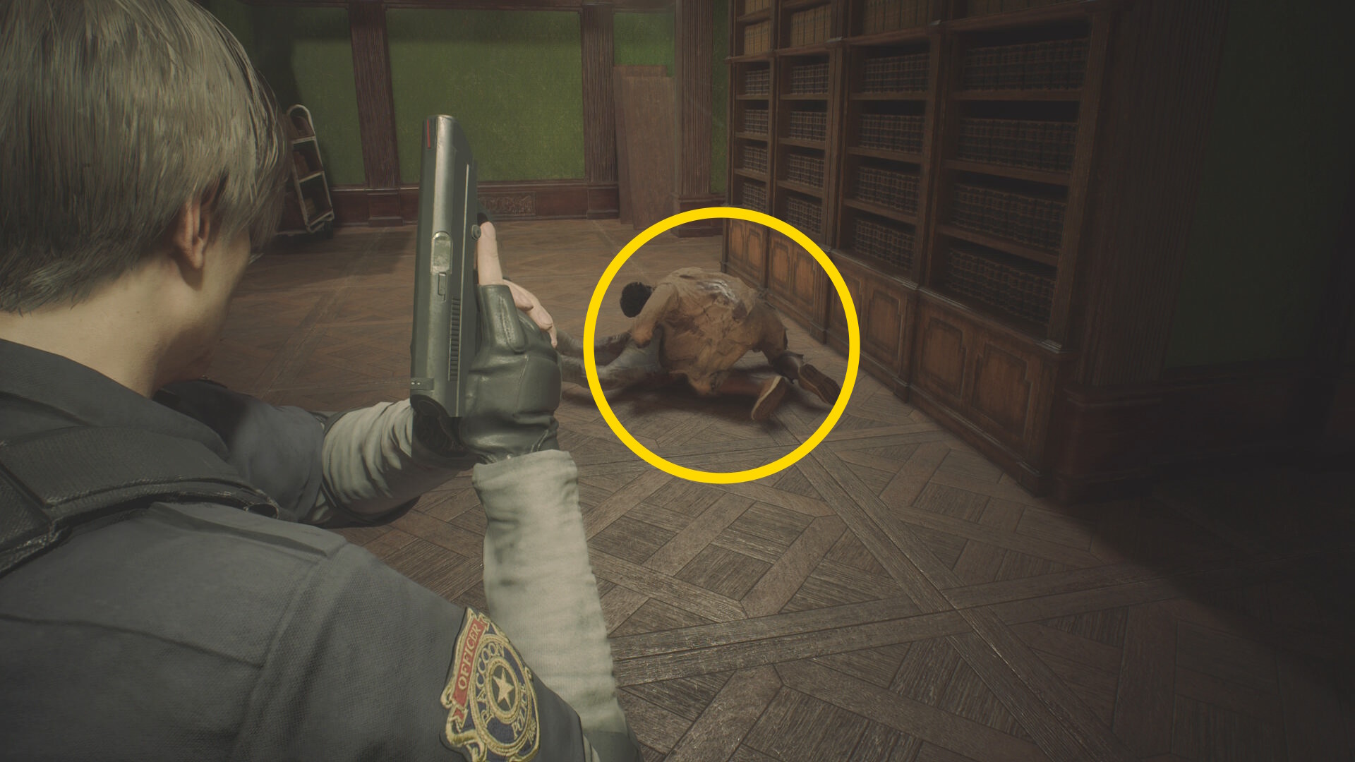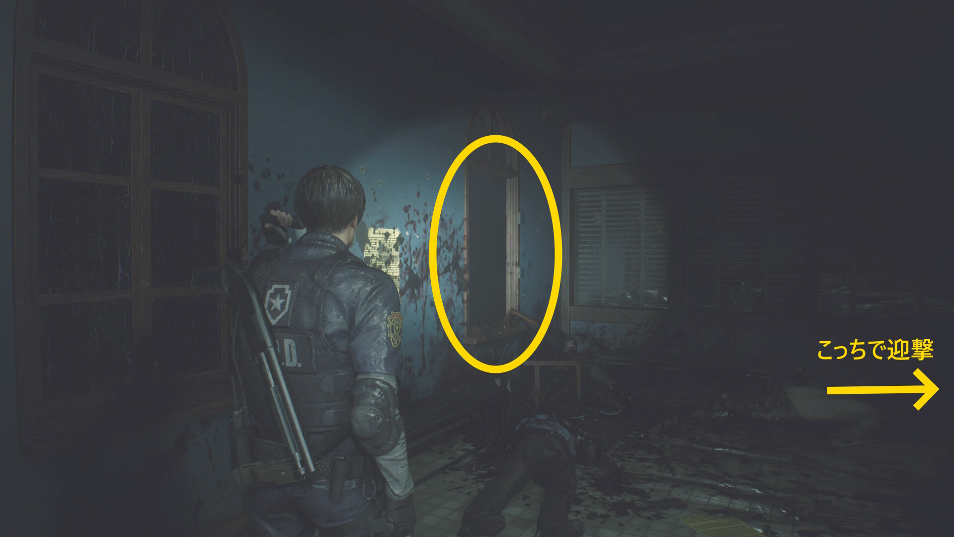- 太っちょ警察官ゾンビをキル後、左に死んだふりゾンビがいる