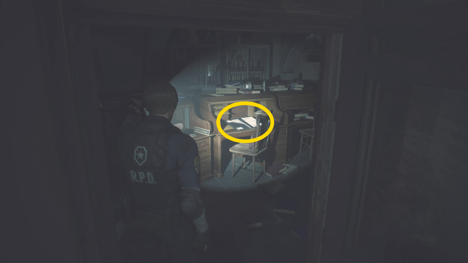 - S.T.A.R.S オフィスに入ったら、すぐ左の隊長室へ