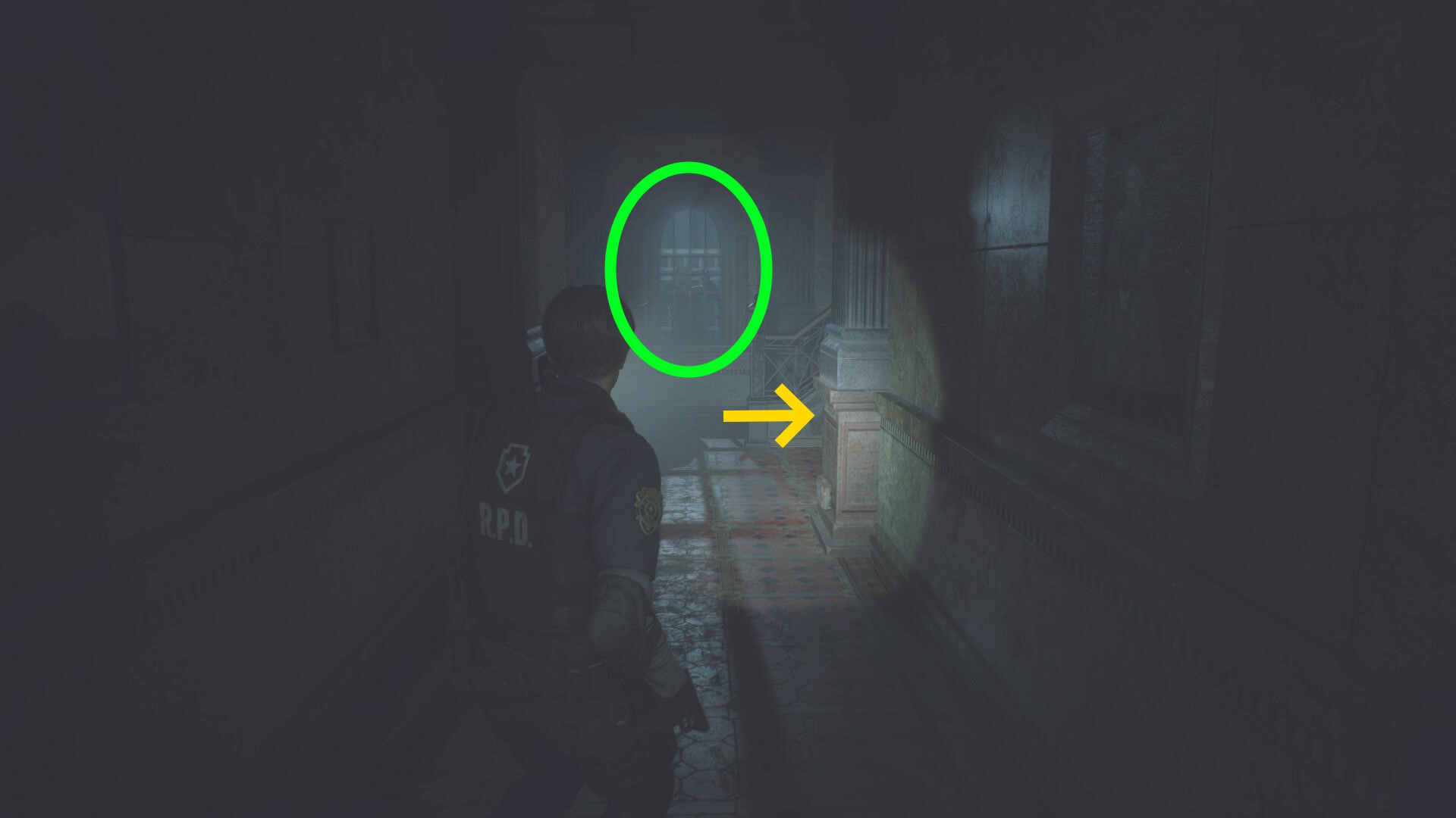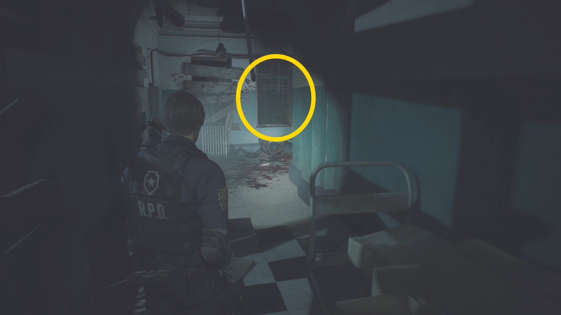 - カットシーン後、廊下をずっと進んでいくと突き当りに窓ガラスが見えてくる