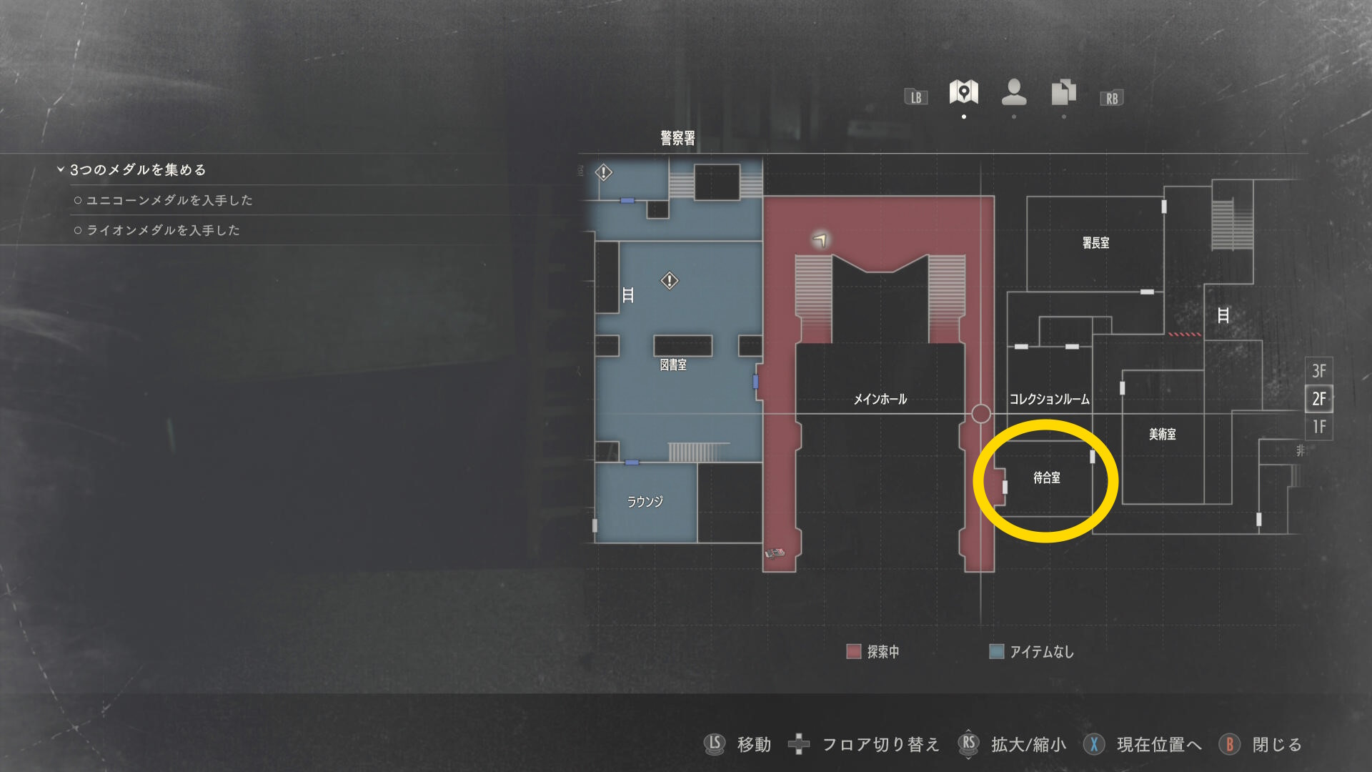 - 今いる場所は「メインホール」