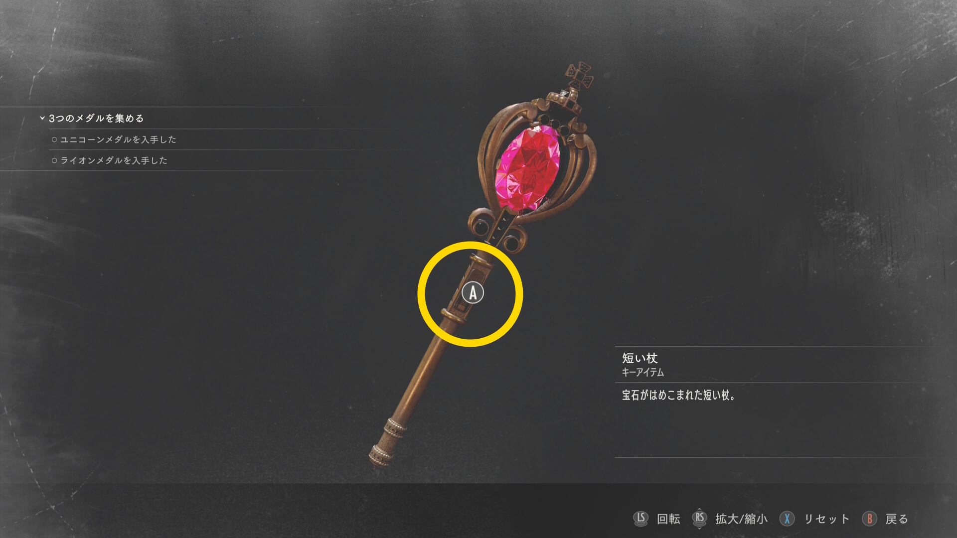 - カットシーン後、Y を押してインベントリを開く