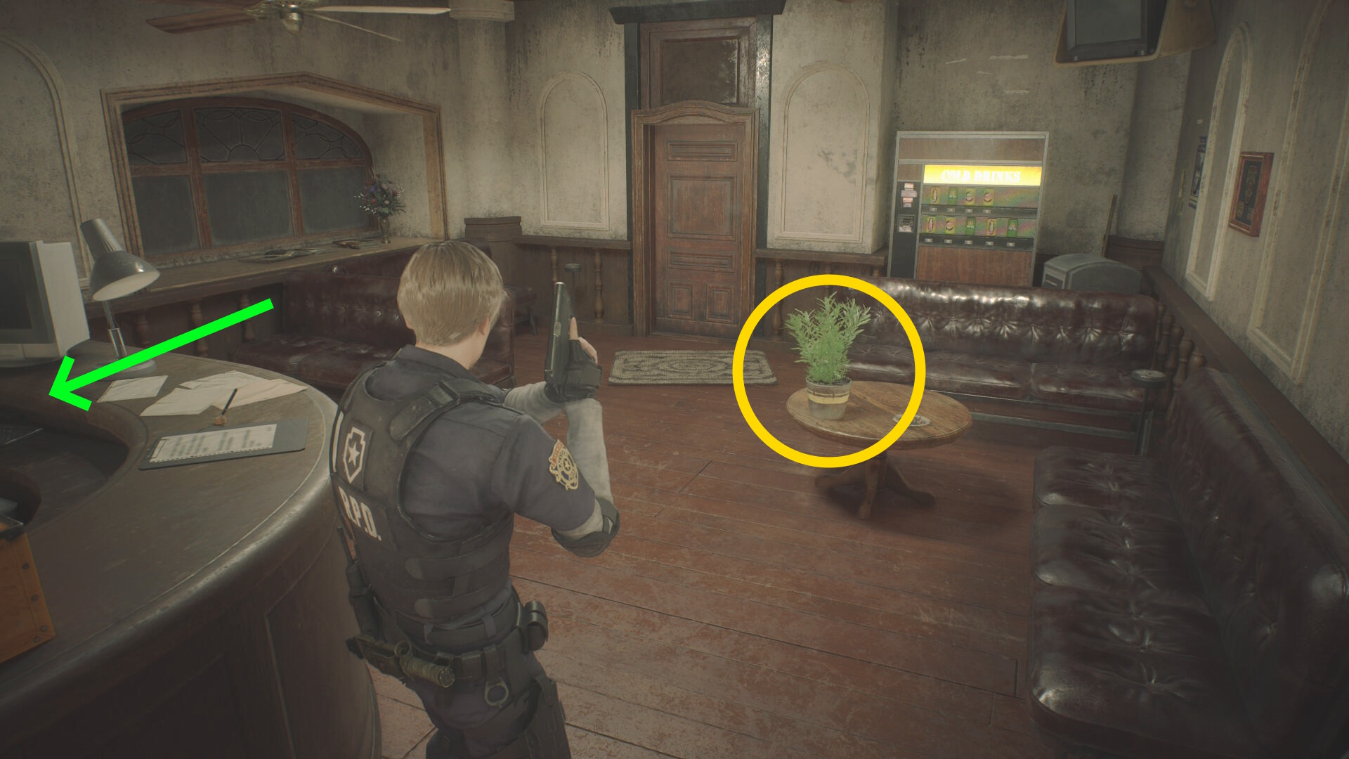 - 右に グリーンハーブ、左の長椅子に ハンドガンの弾