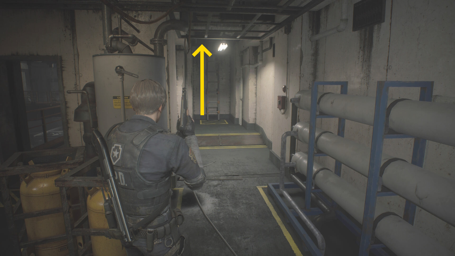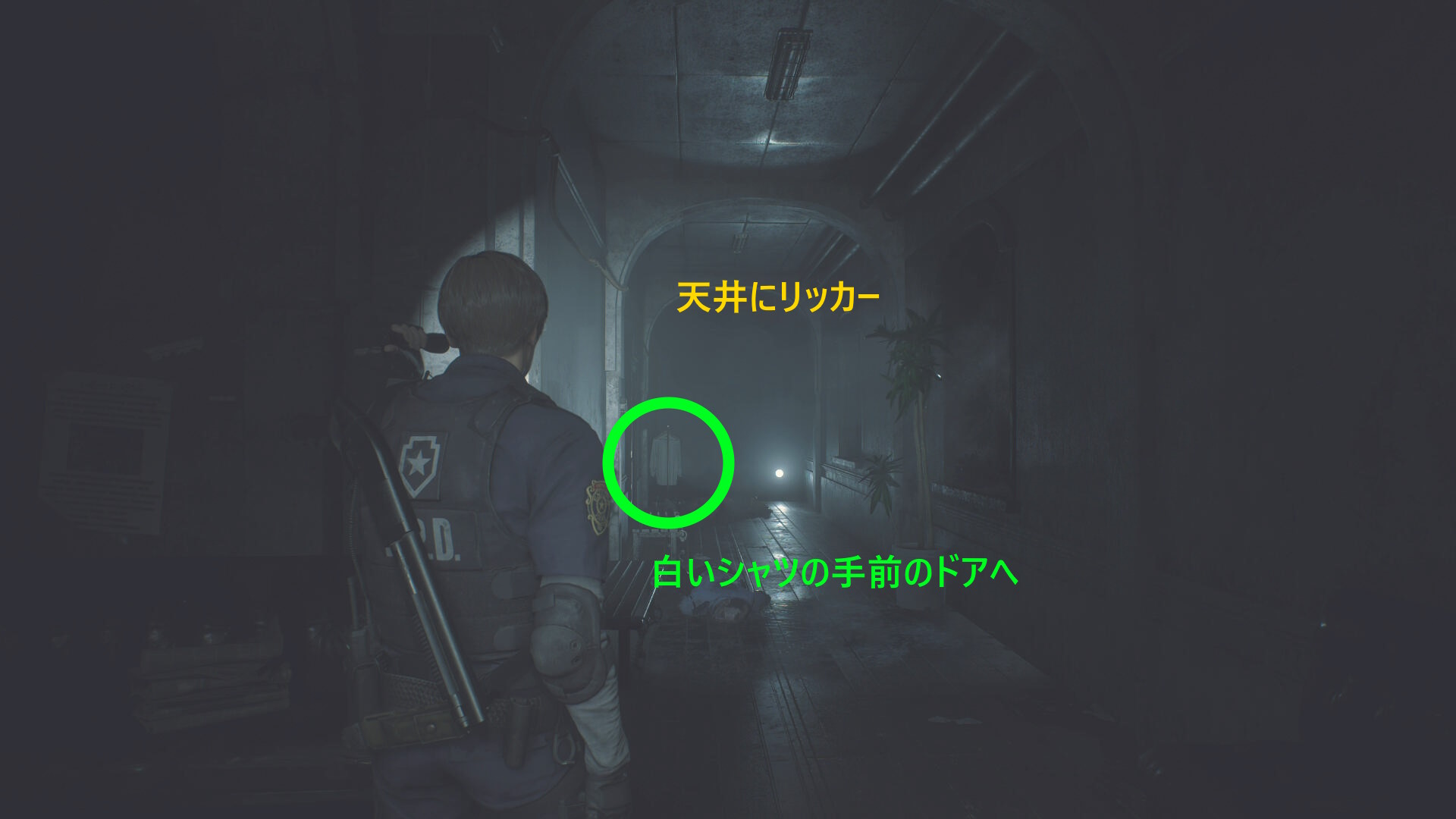 - これから奥(右前方)に伸びる廊下を進むが、実は奥の天井にリッカーがいる