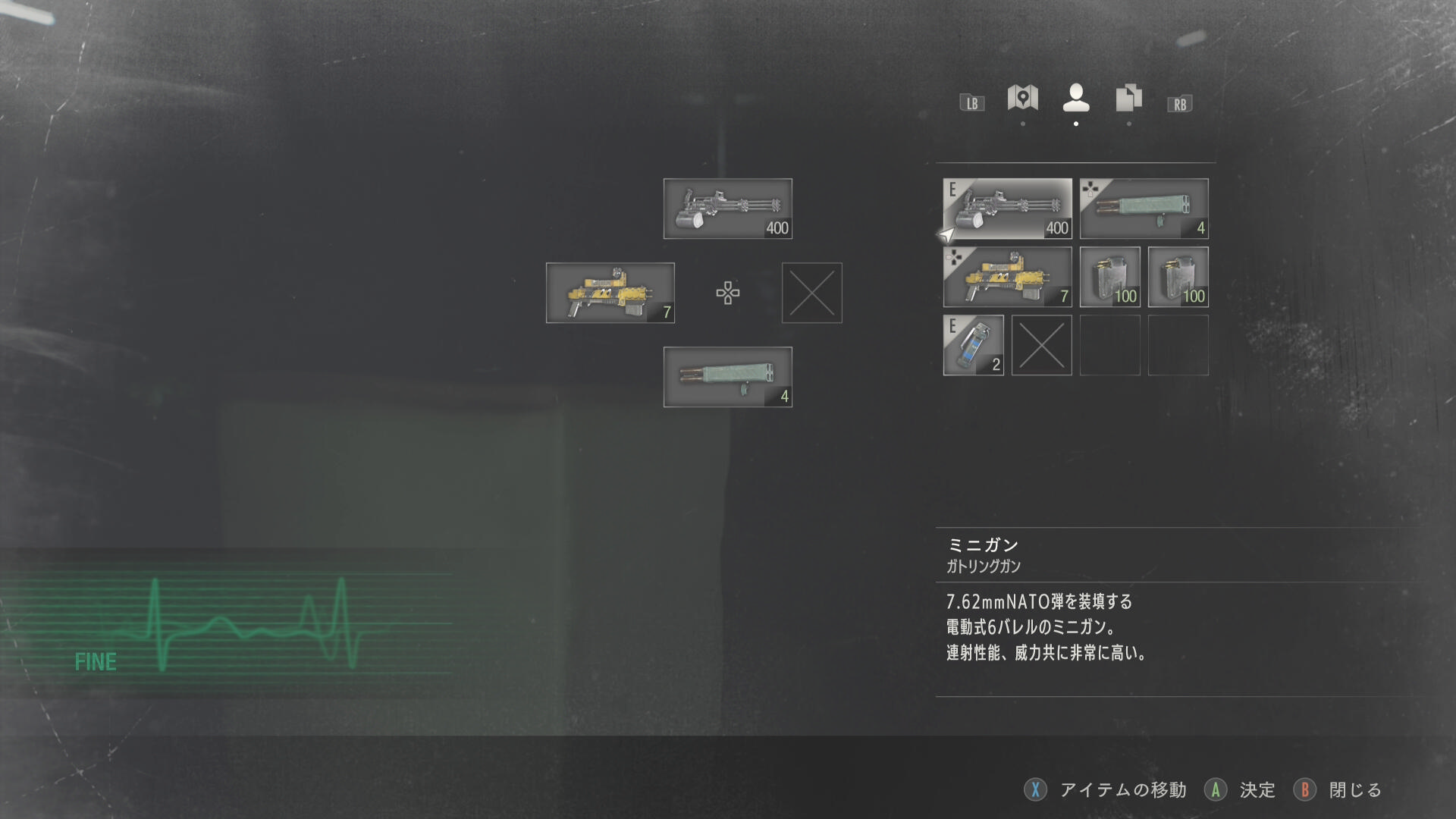 - これまでと同様に道中でアイテムを回収する形式ではないため、開始時に所持している武器・アイテムのみを駆使してクリアを狙う(所持武器、アイテムは下画像のとおり)