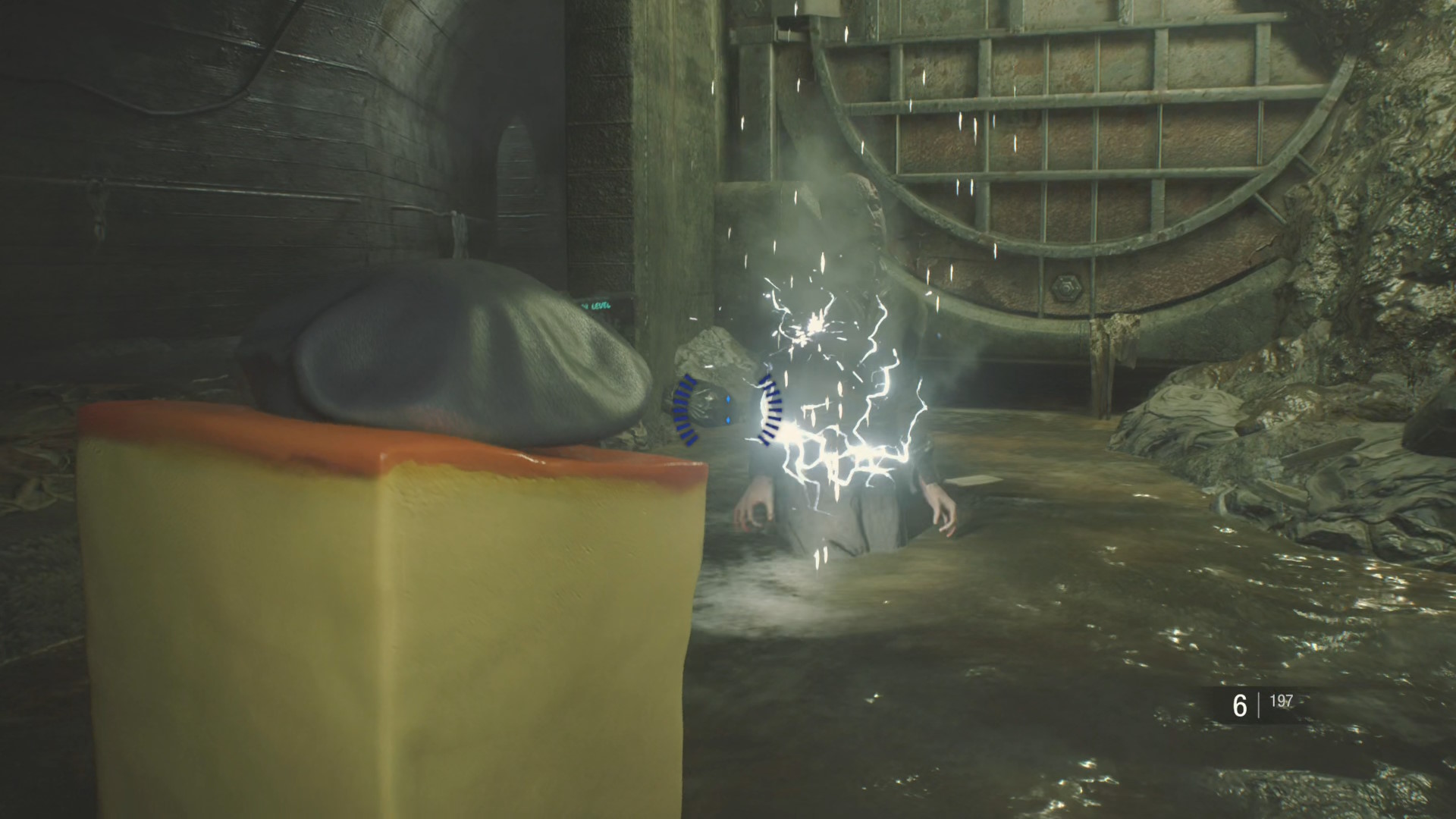 - 階段前の起き上がるゾンビにスパークショットの極大放電を当てる