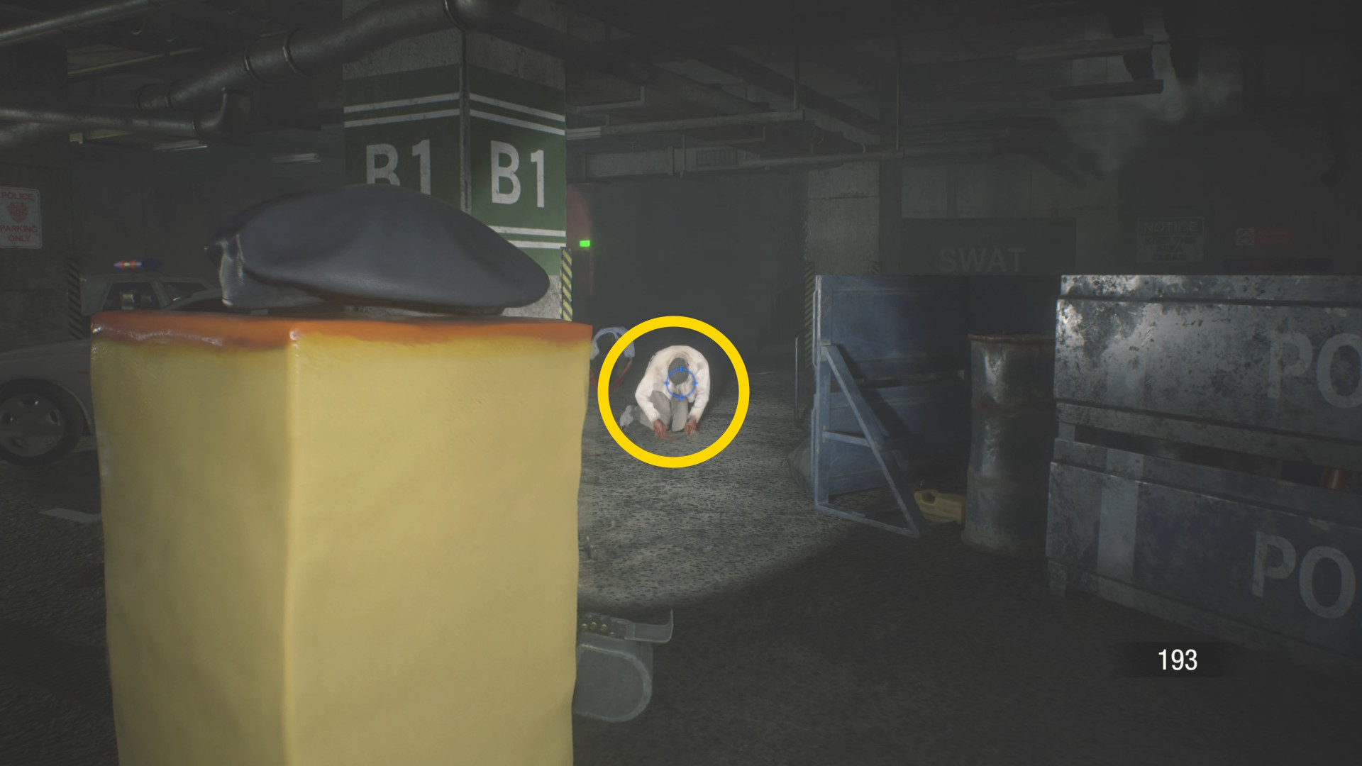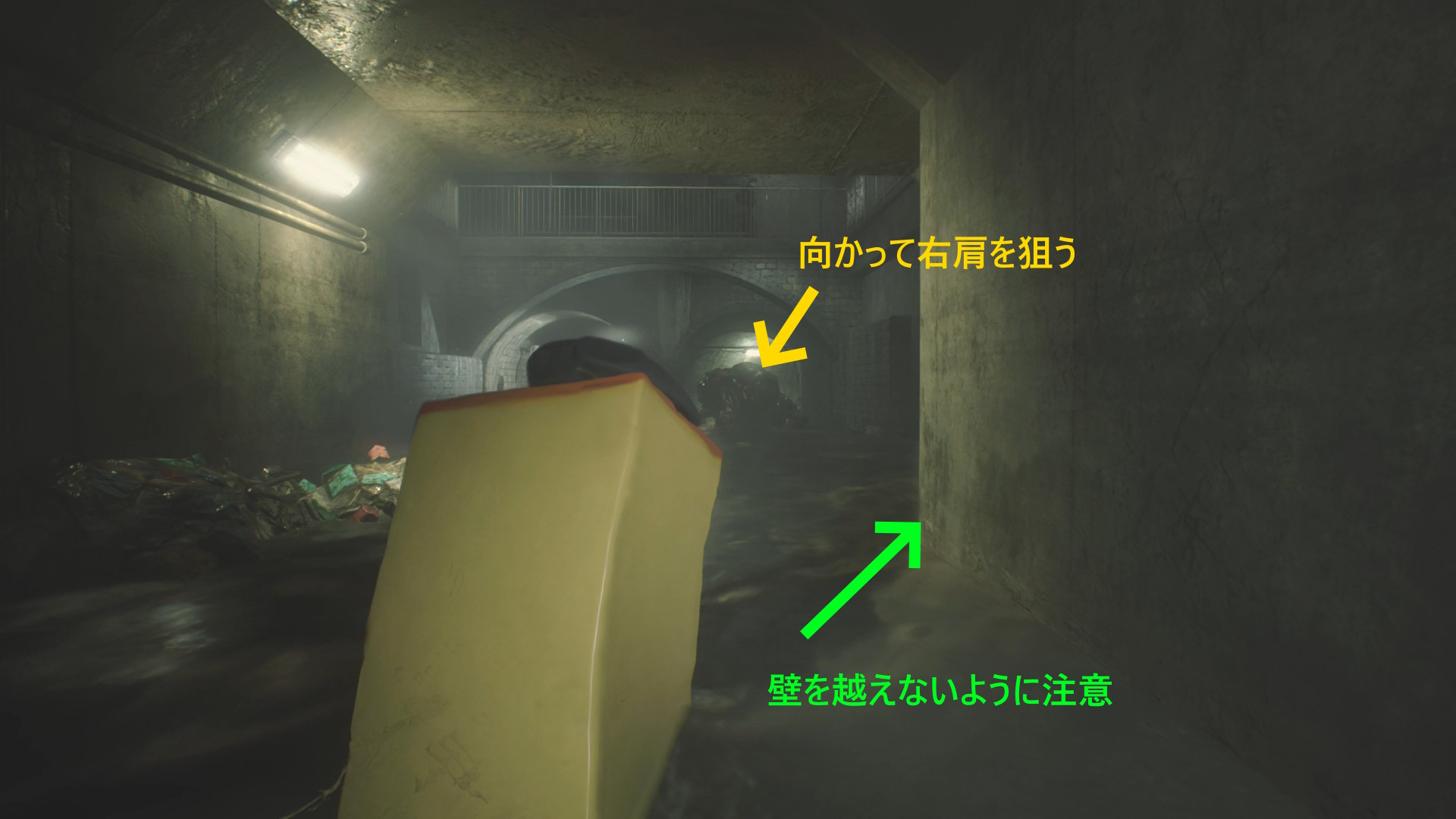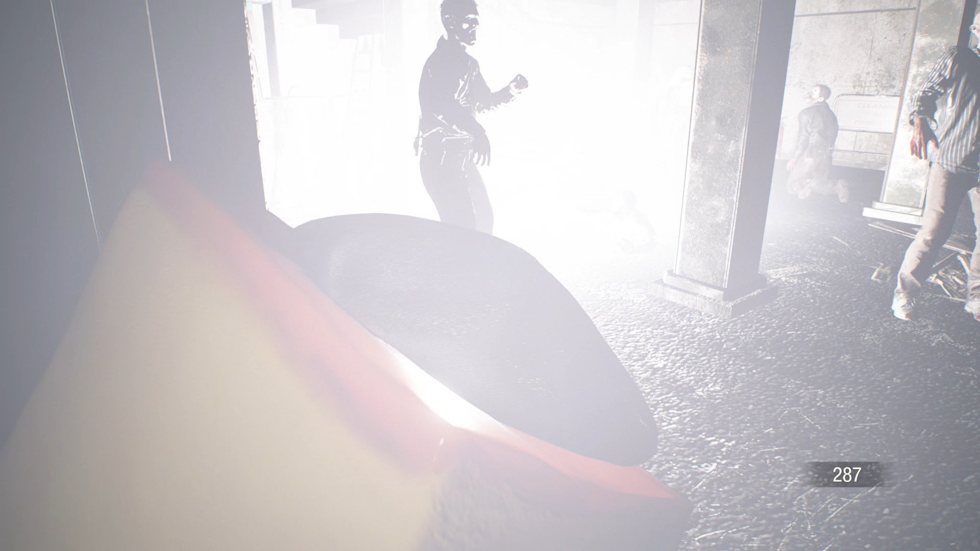 - 右の白ジャケットゾンビをミニガンでキル or 怯ませ、すぐに前方奥に閃光手榴弾を投げれば安全に通過できる
