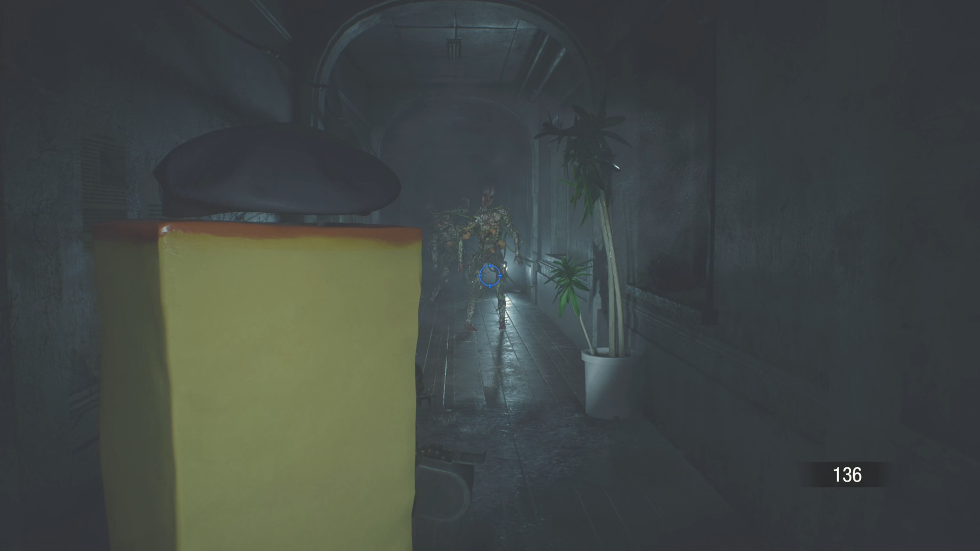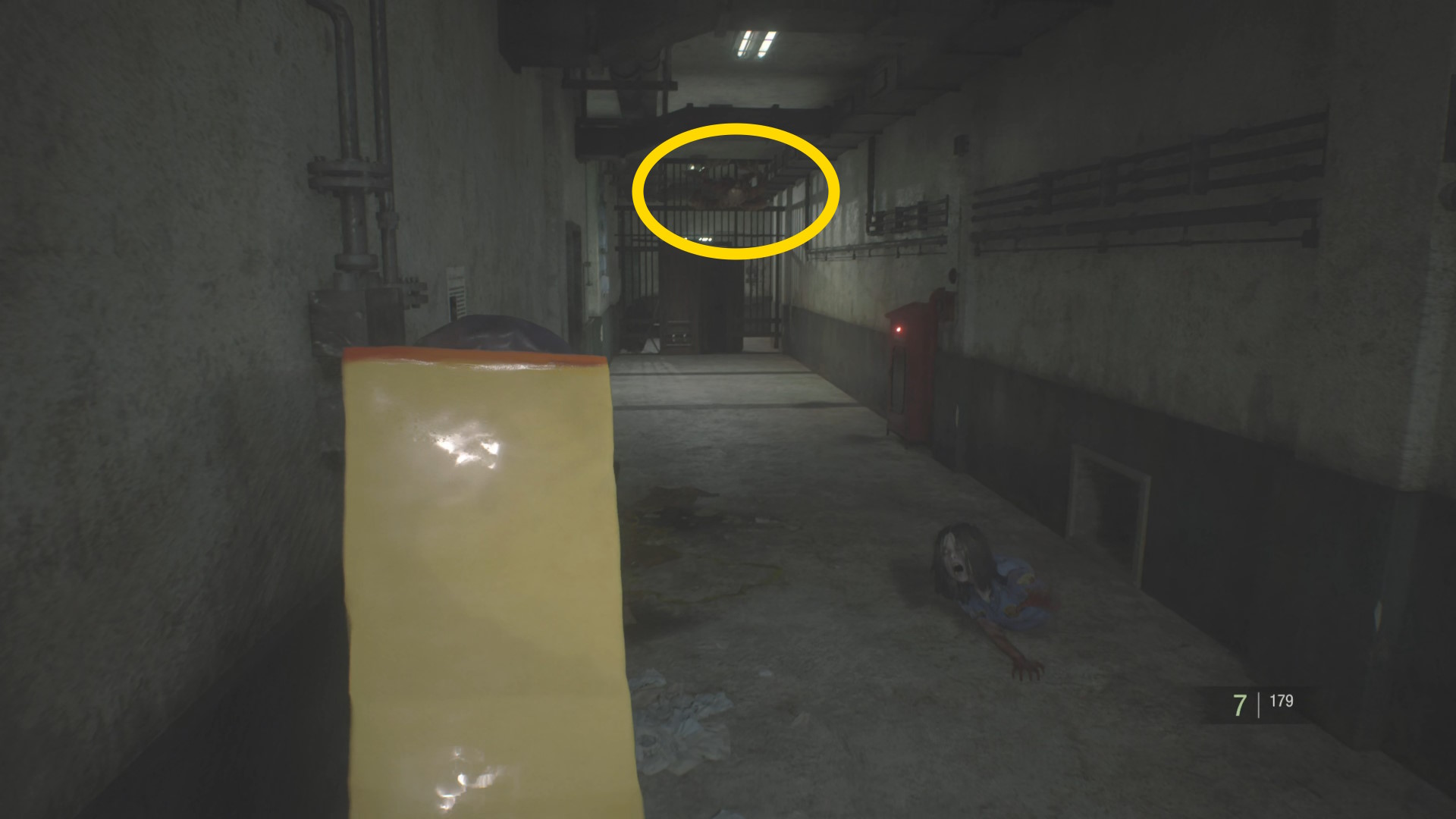 - 「宿直室」の前廊下にいるタイラントにもスパークショットの単発撃ちで怯ませて通過しよう