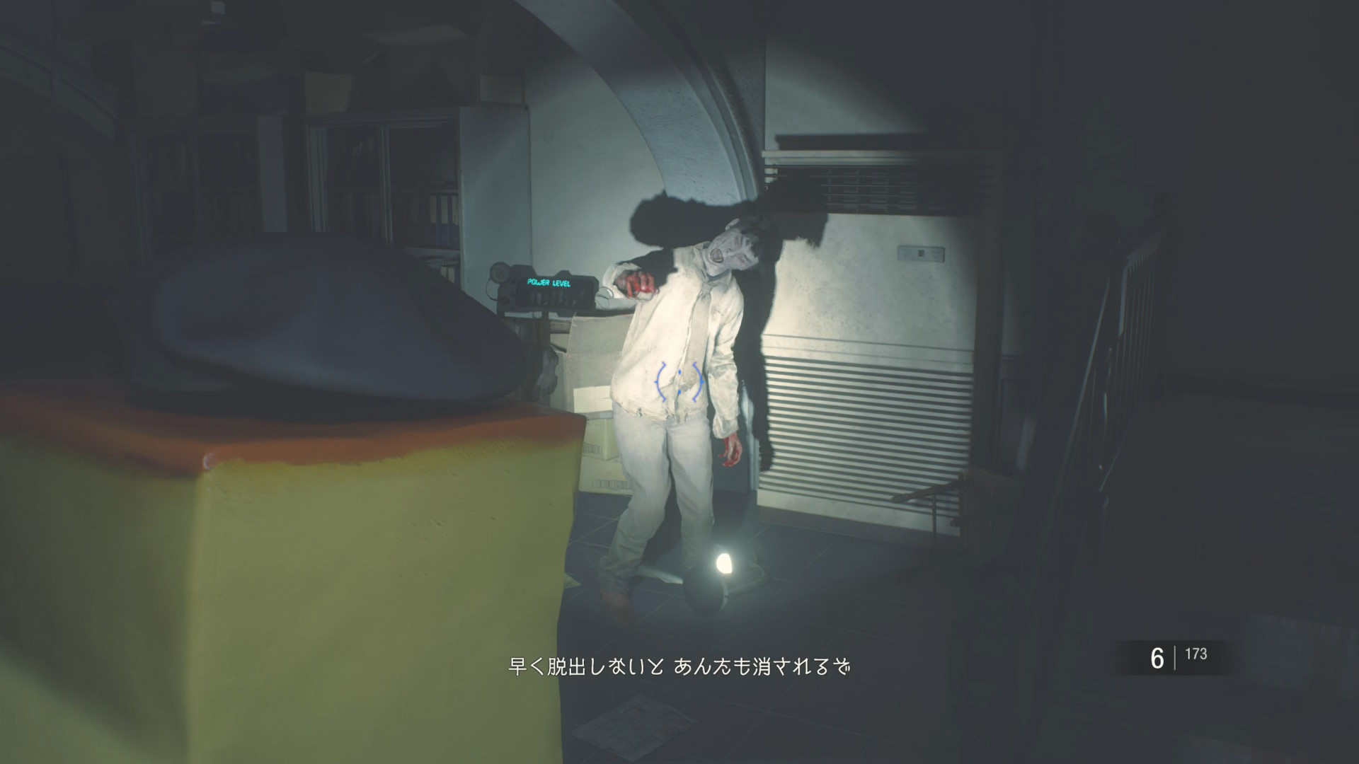 - 3階のゾンビをスパークショットの単発撃ちで怯ませて進む