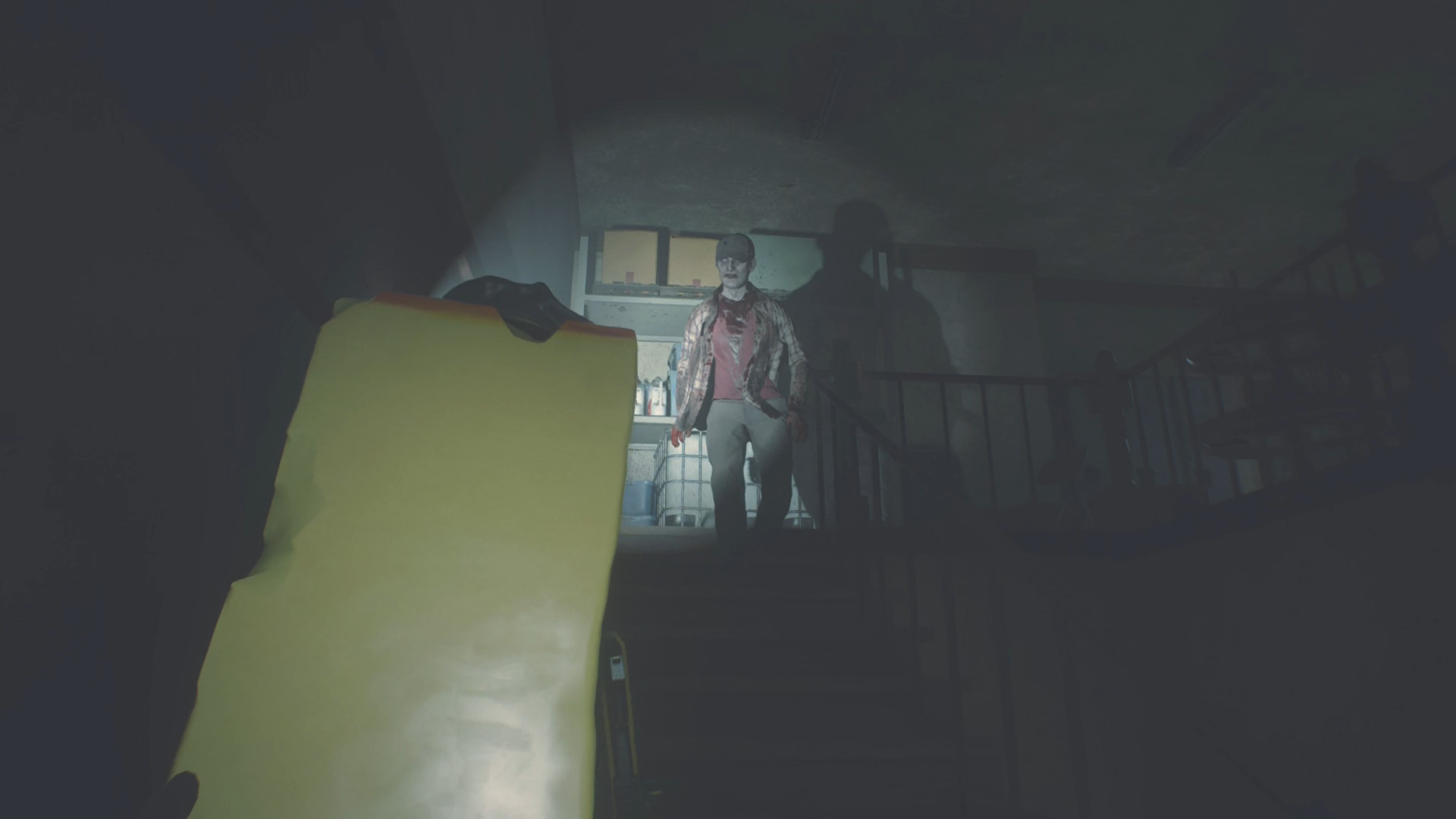 - ハシゴを下りて、歩きで半身ゾンビのほうに進んでドアを開ける