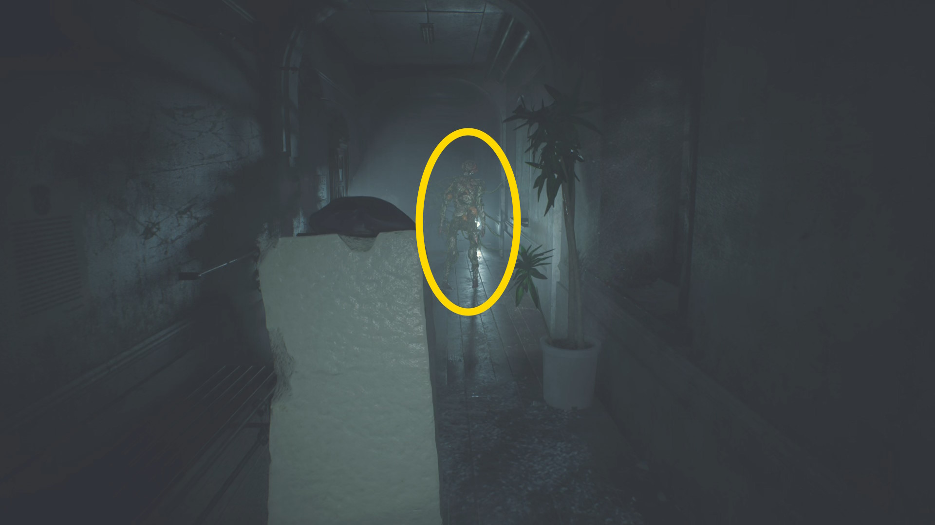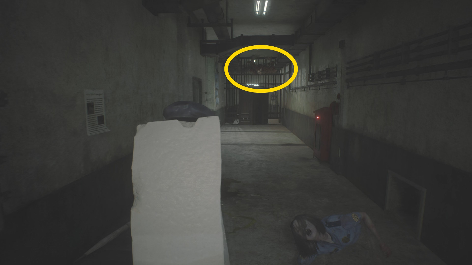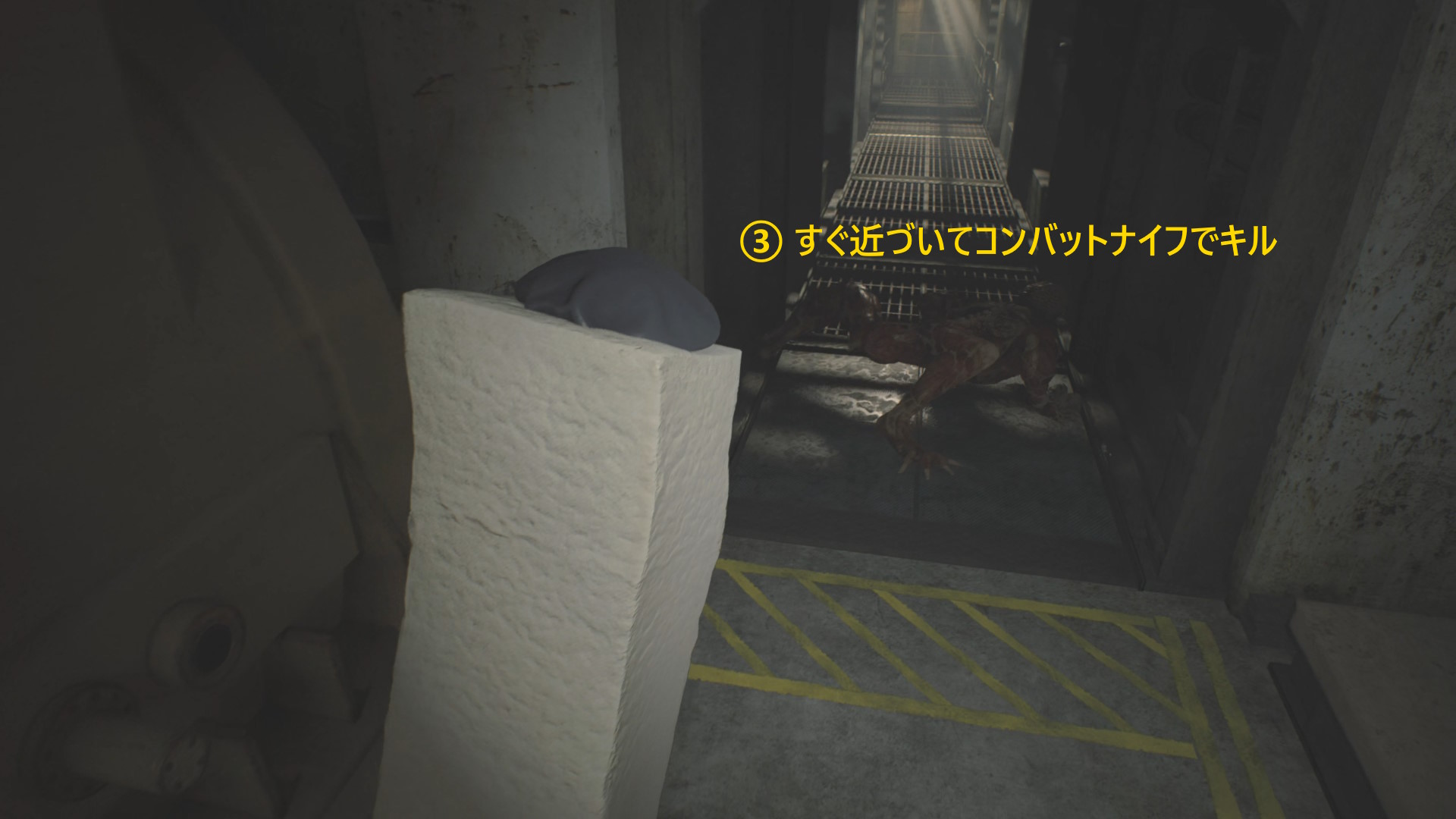 - 通路の左に沿って進めば、匍匐してきたリッカーが立ち上がって攻撃するが多くは空振りに終わる(もしくは舌攻撃)