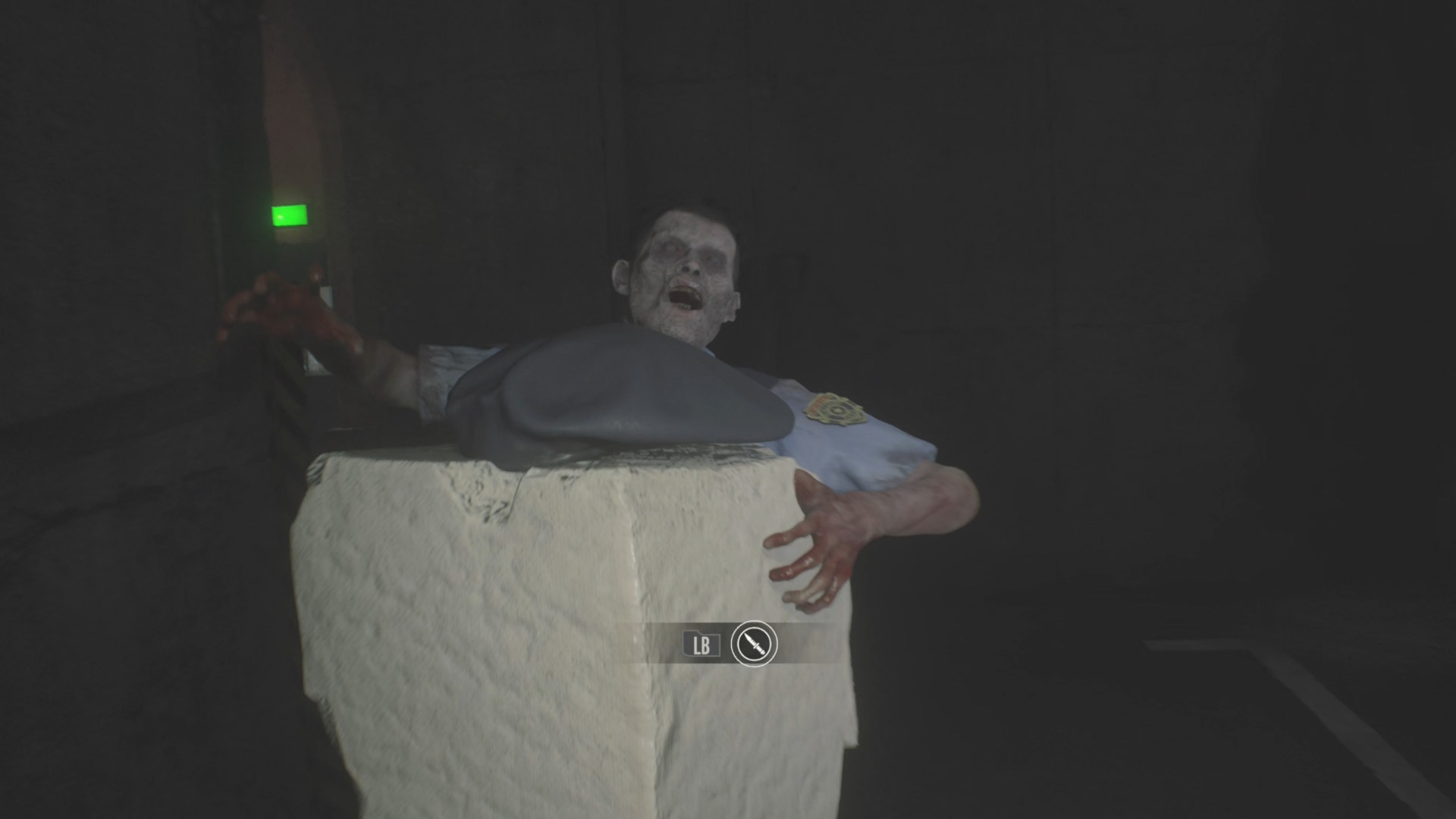 - 柱の脇に警察官ゾンビがいるので、突っ込んでいってコンバットナイフでカウンター