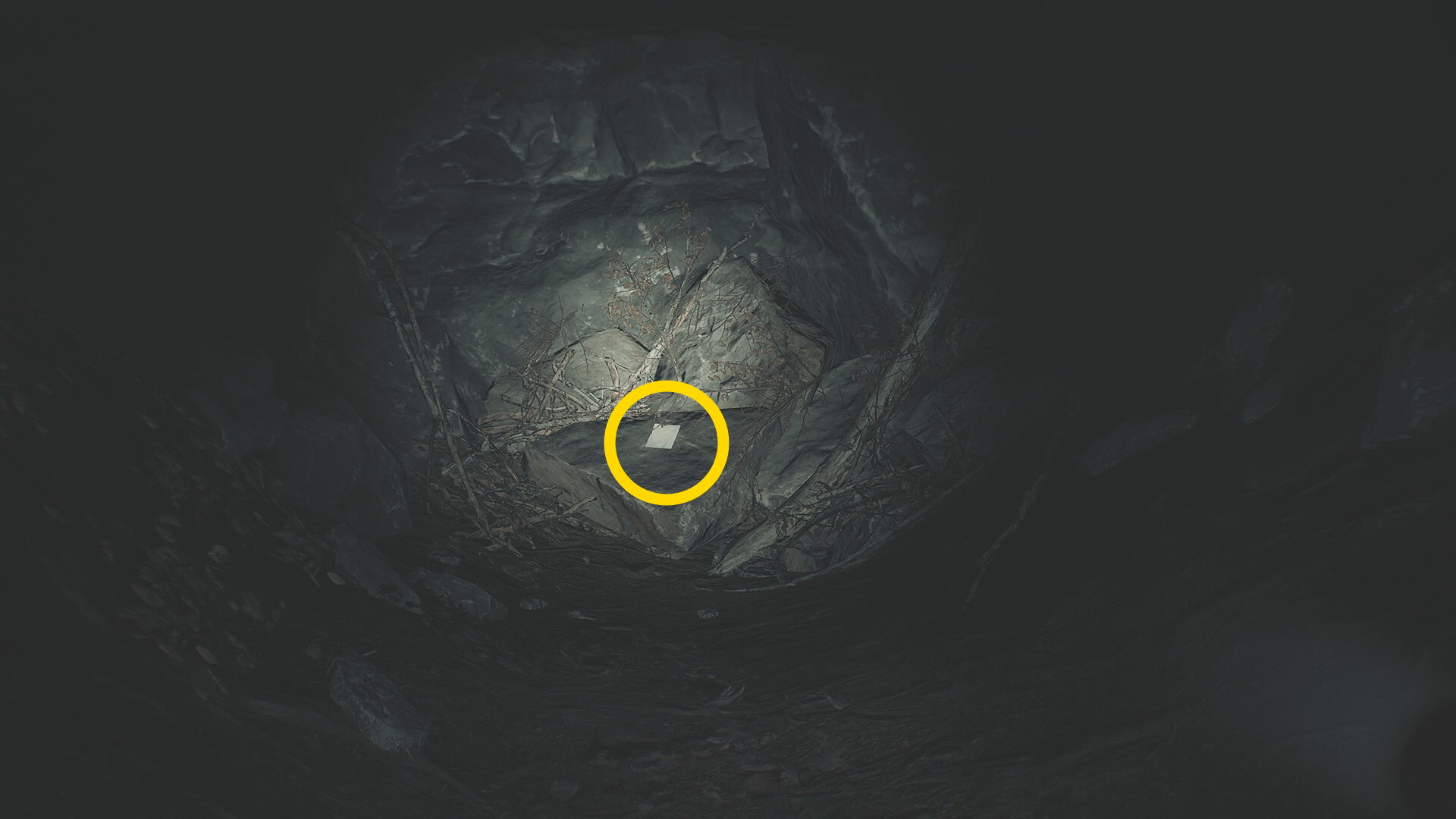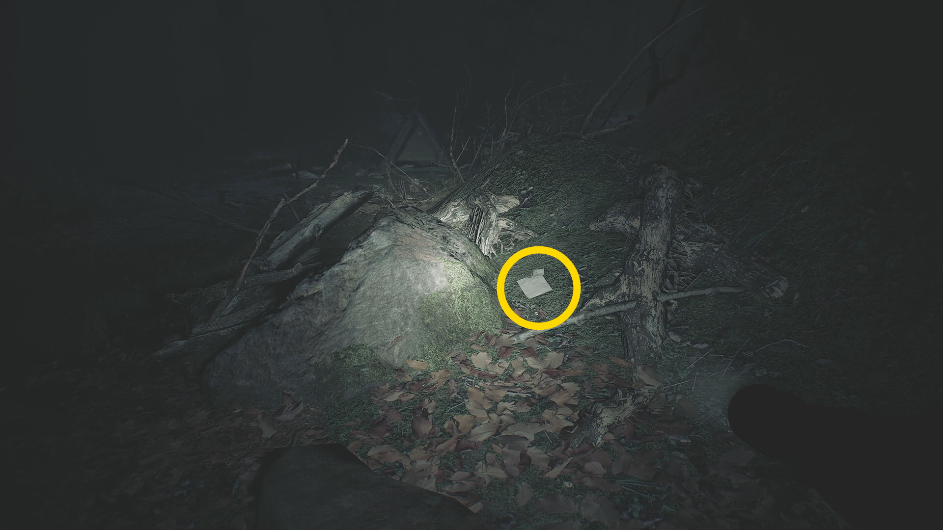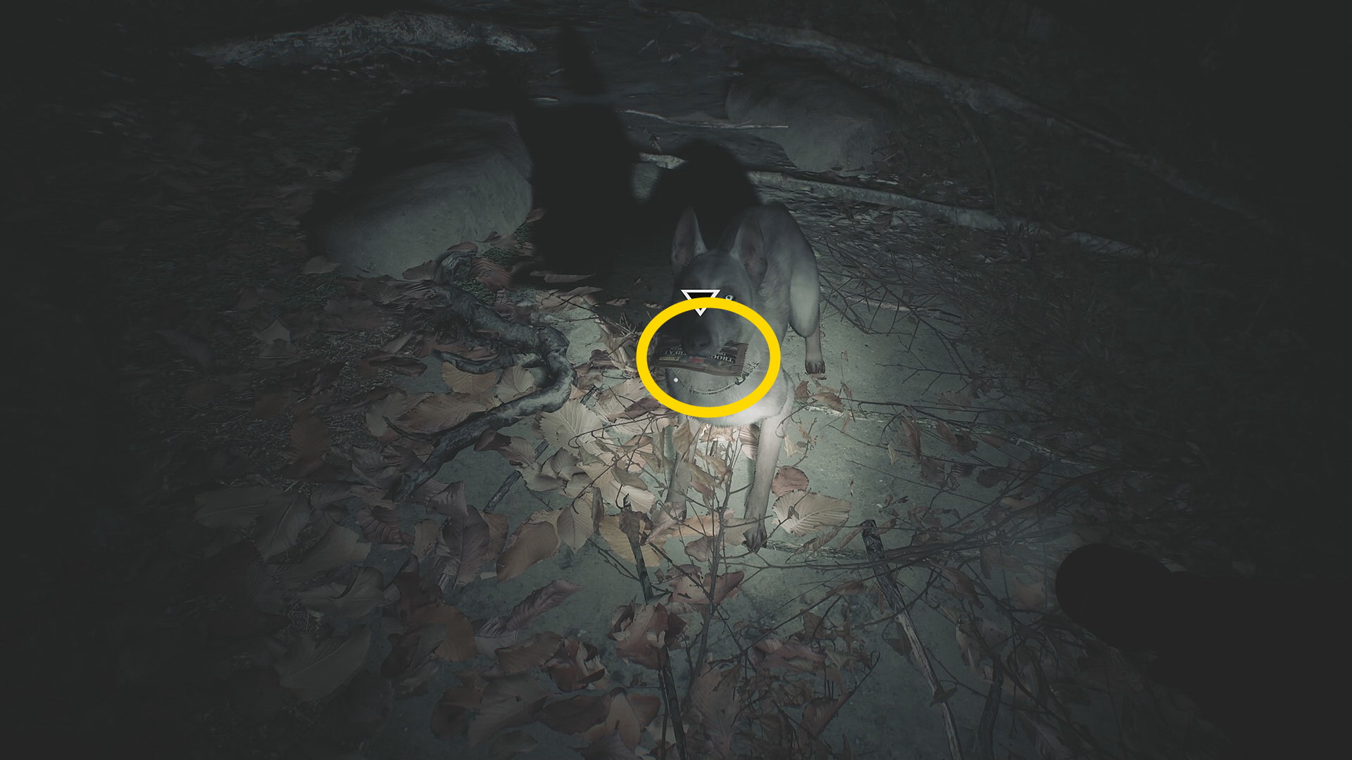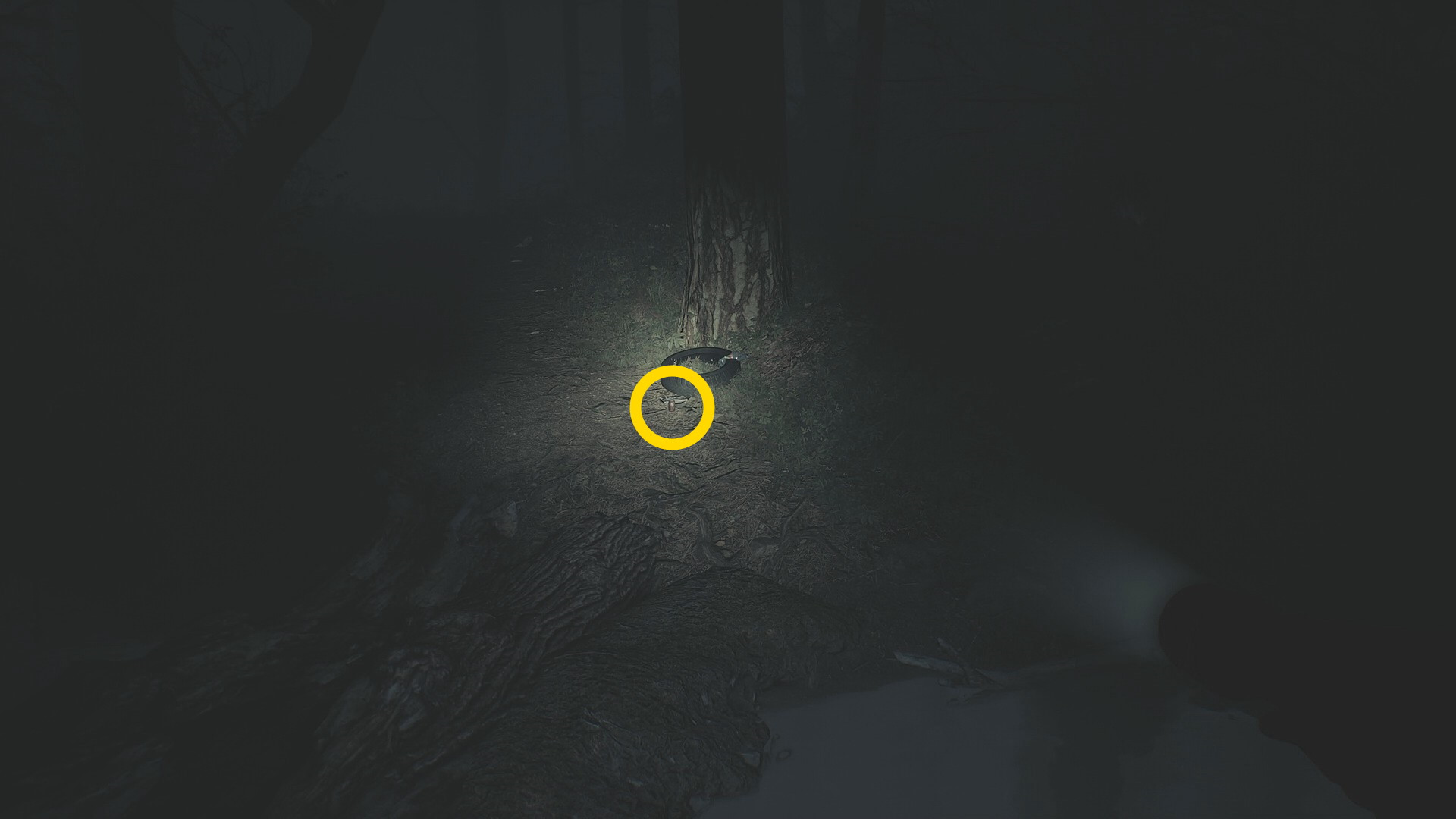 - カットシーン後、RB 長押しでホイールを開き、懐中電灯を装備する