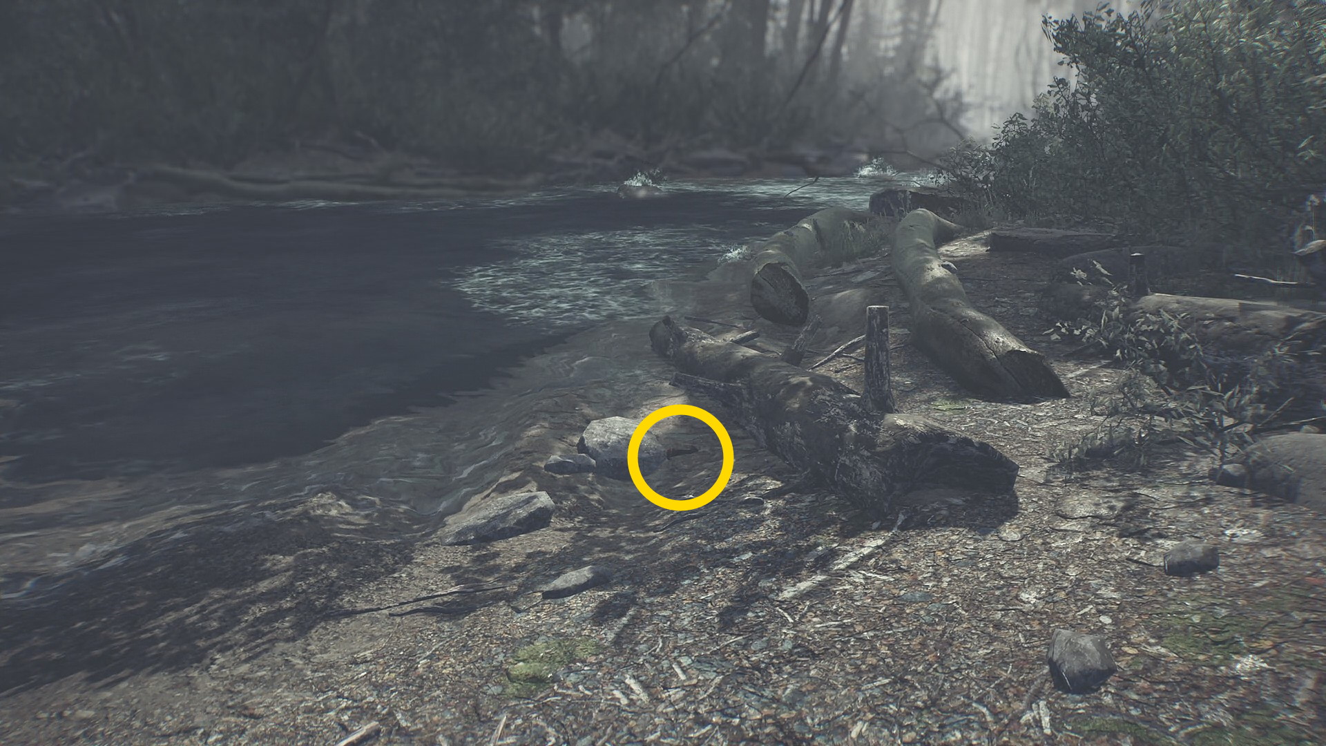 - 川に飛び込むバレットを横目に右側の倒木を見ると ゴミ (8/15)