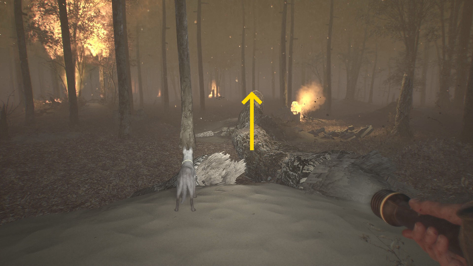 - 陸地を移動しながら『車の残骸が燃えている陸地』を目指す