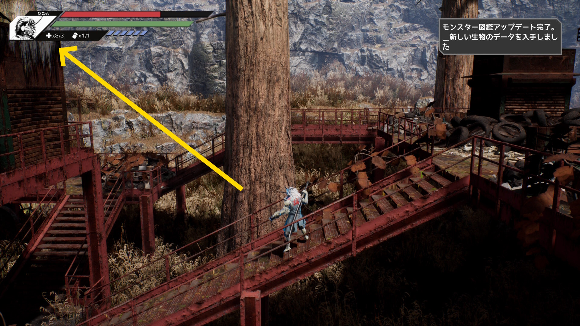 - 右端のフェンスを空中ダッシュで破壊でき、隠しエリアを発見できる ⇒ 実績「けもの道」解除